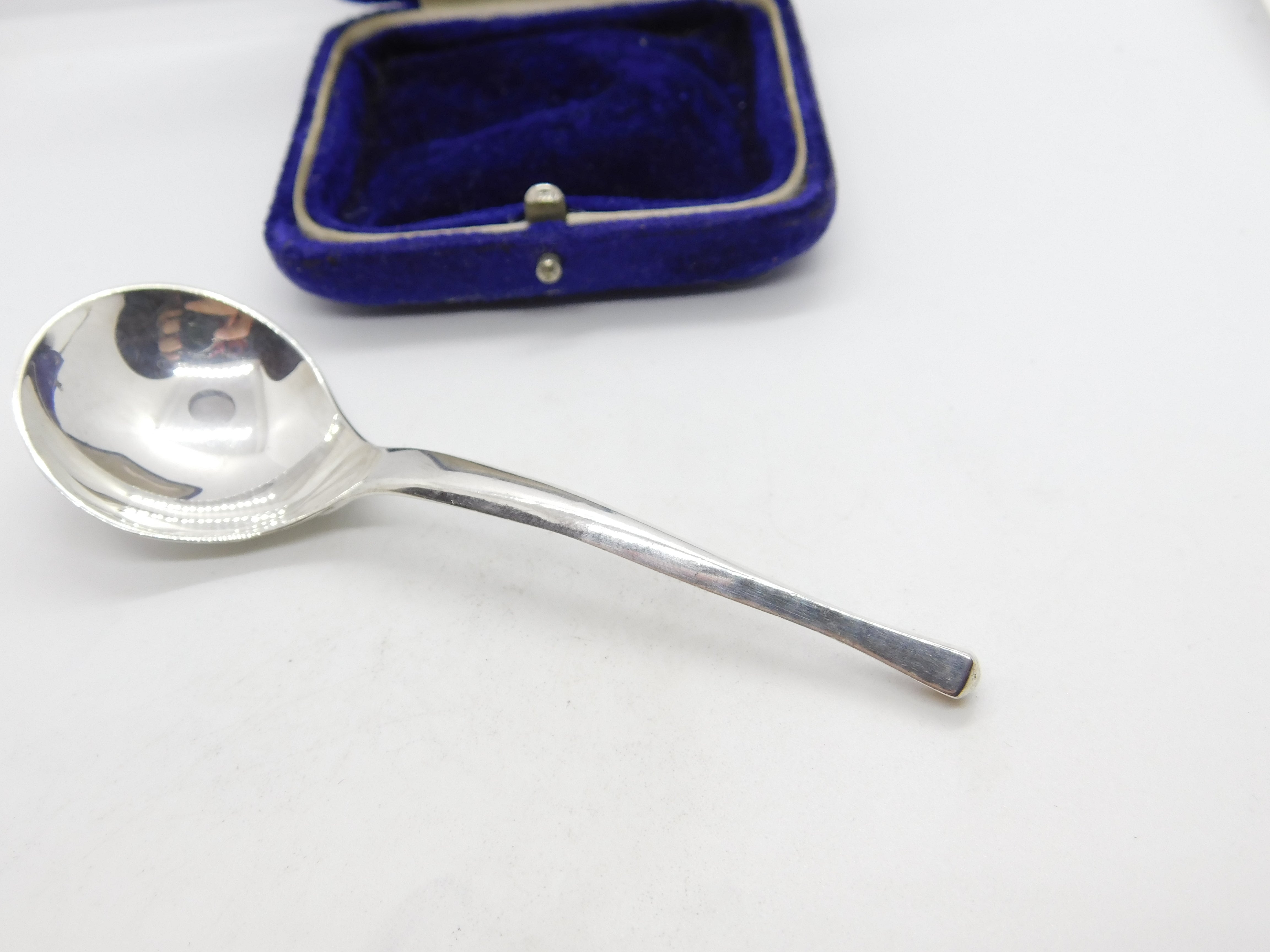 Details: A fantastic and wonderfully designed vintage sterling silver Scottish modernist tea caddy spoon with lovely detailing hallmarked Edinburgh, 1978 by Cecil Frederick Colyer. This is a wonderful item that would make a perfect gift or addition to any collection. The BOX pictured is for PRESENTATION ONLY and is NOT included in the listings but used to frame the pictures unless specifically stated otherwise.