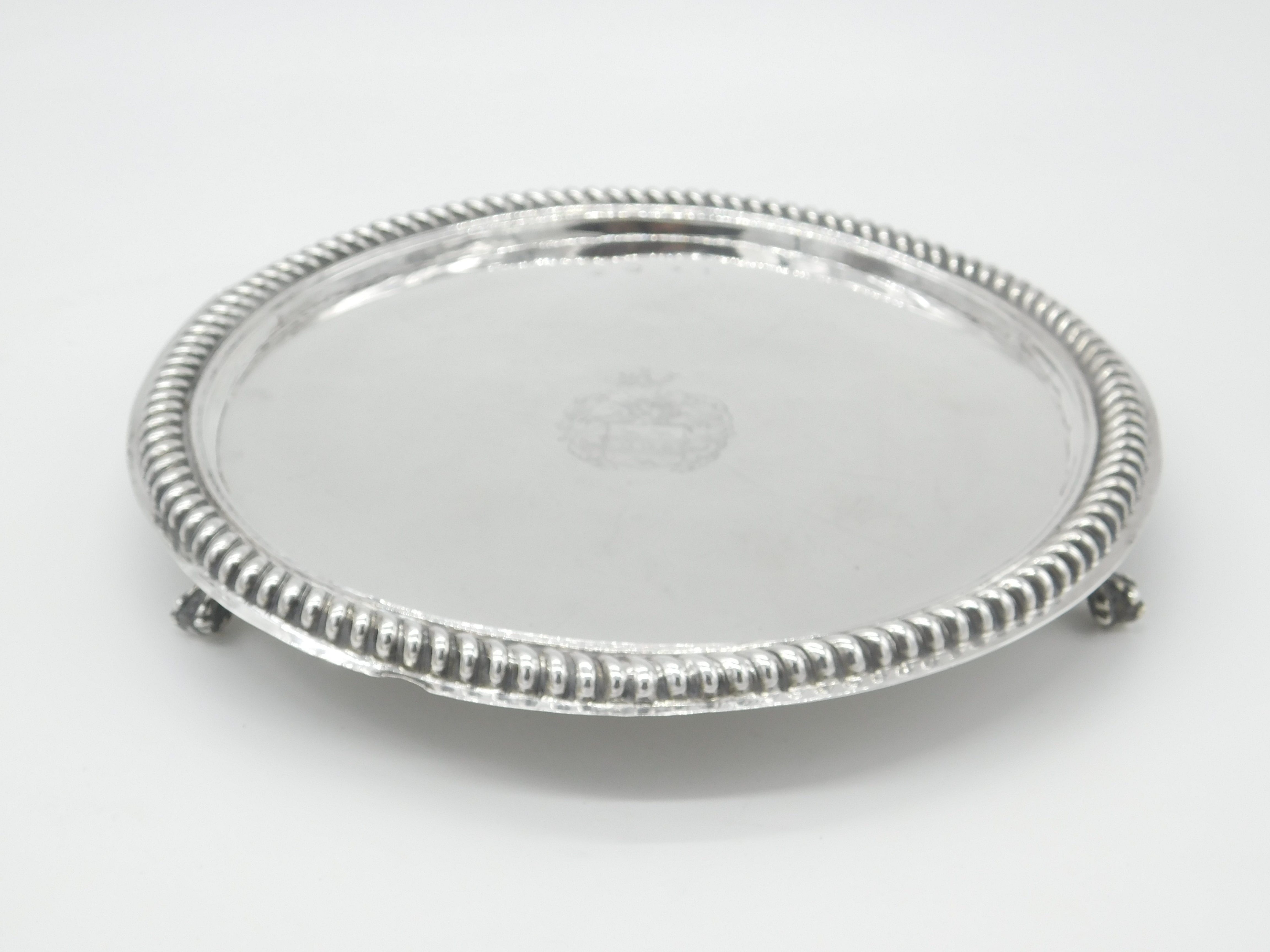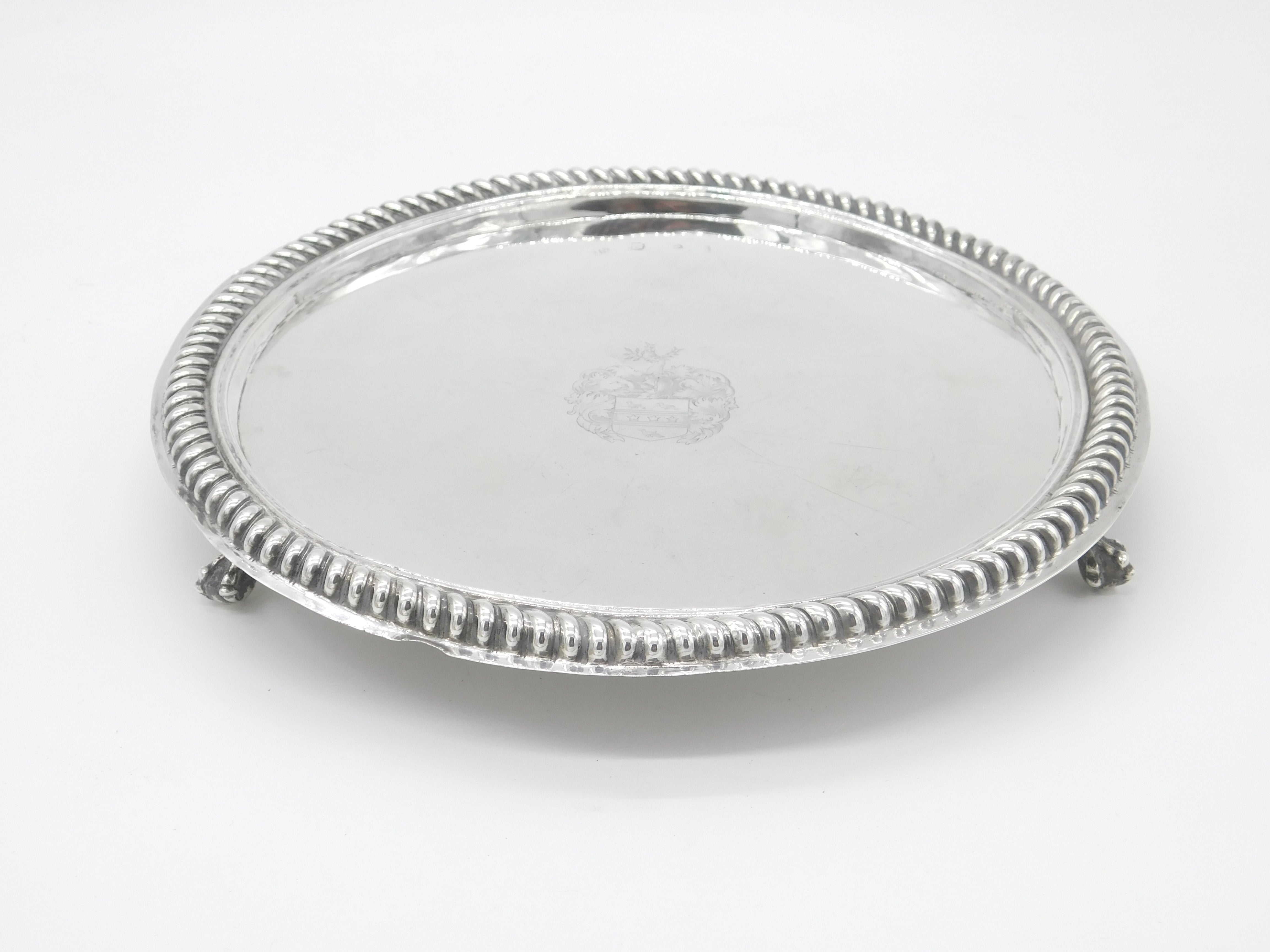 Charles II Sterling Silver Crested Paw Foot Salver Dish 1680 London Antique Maker NL