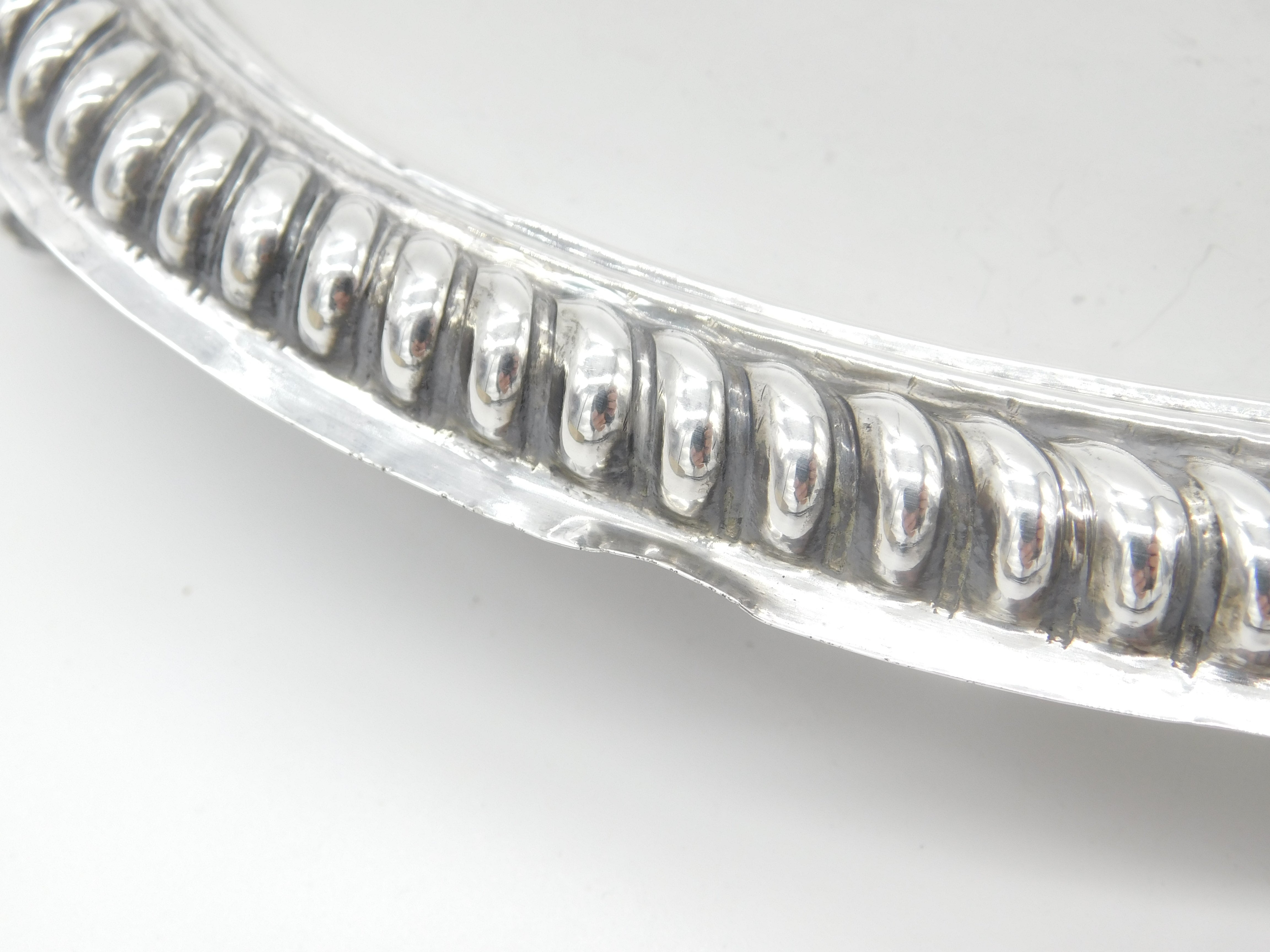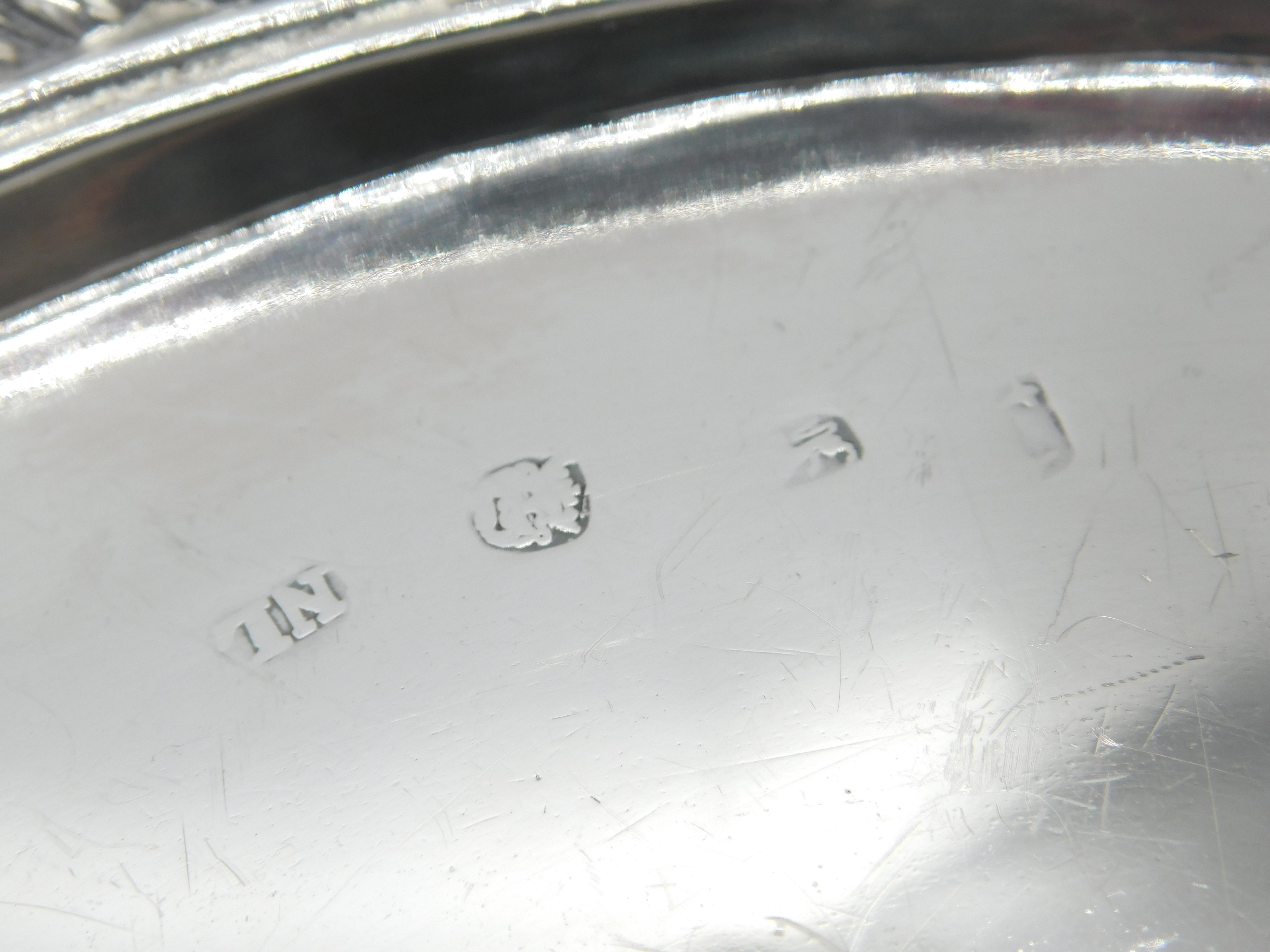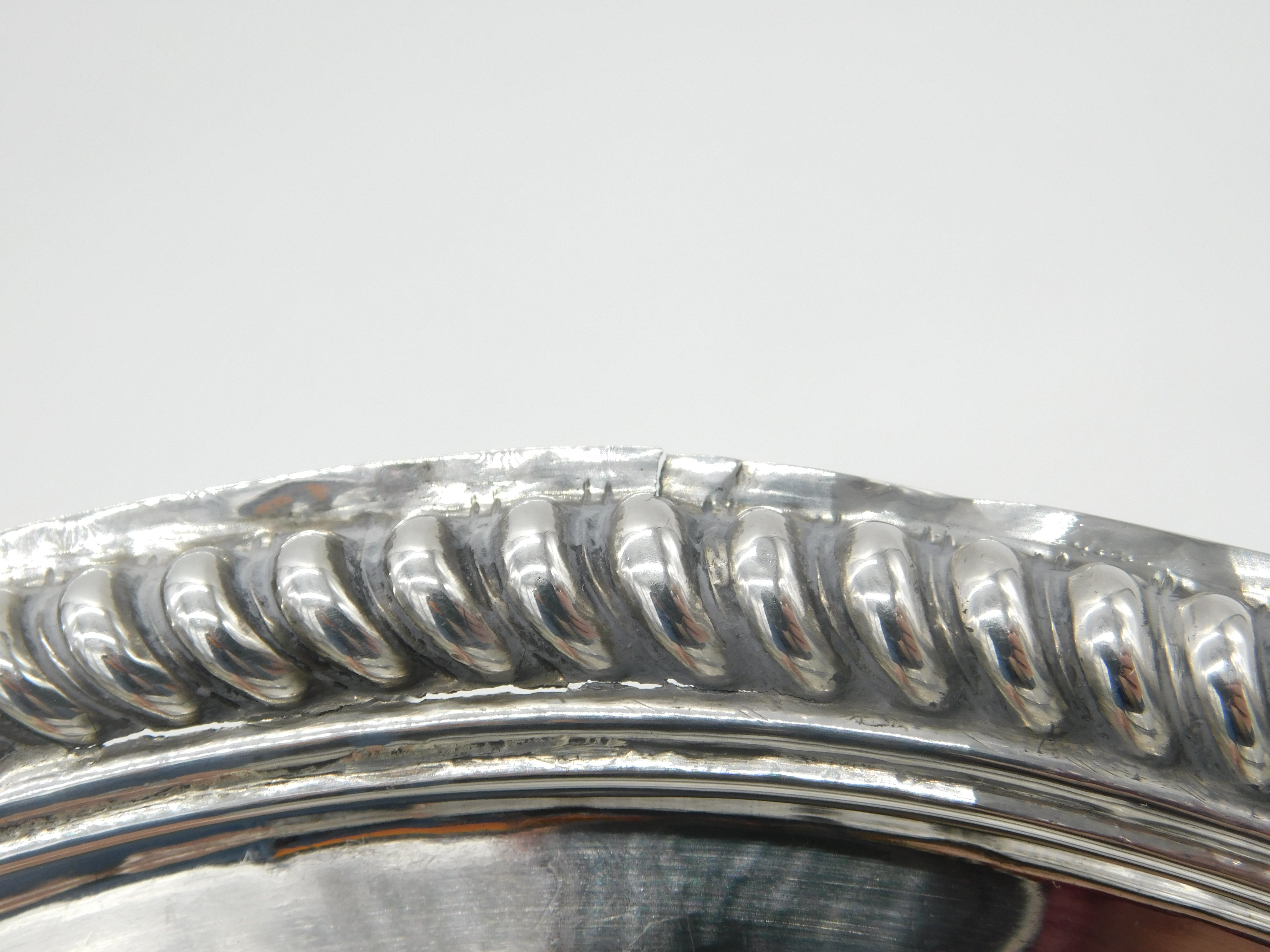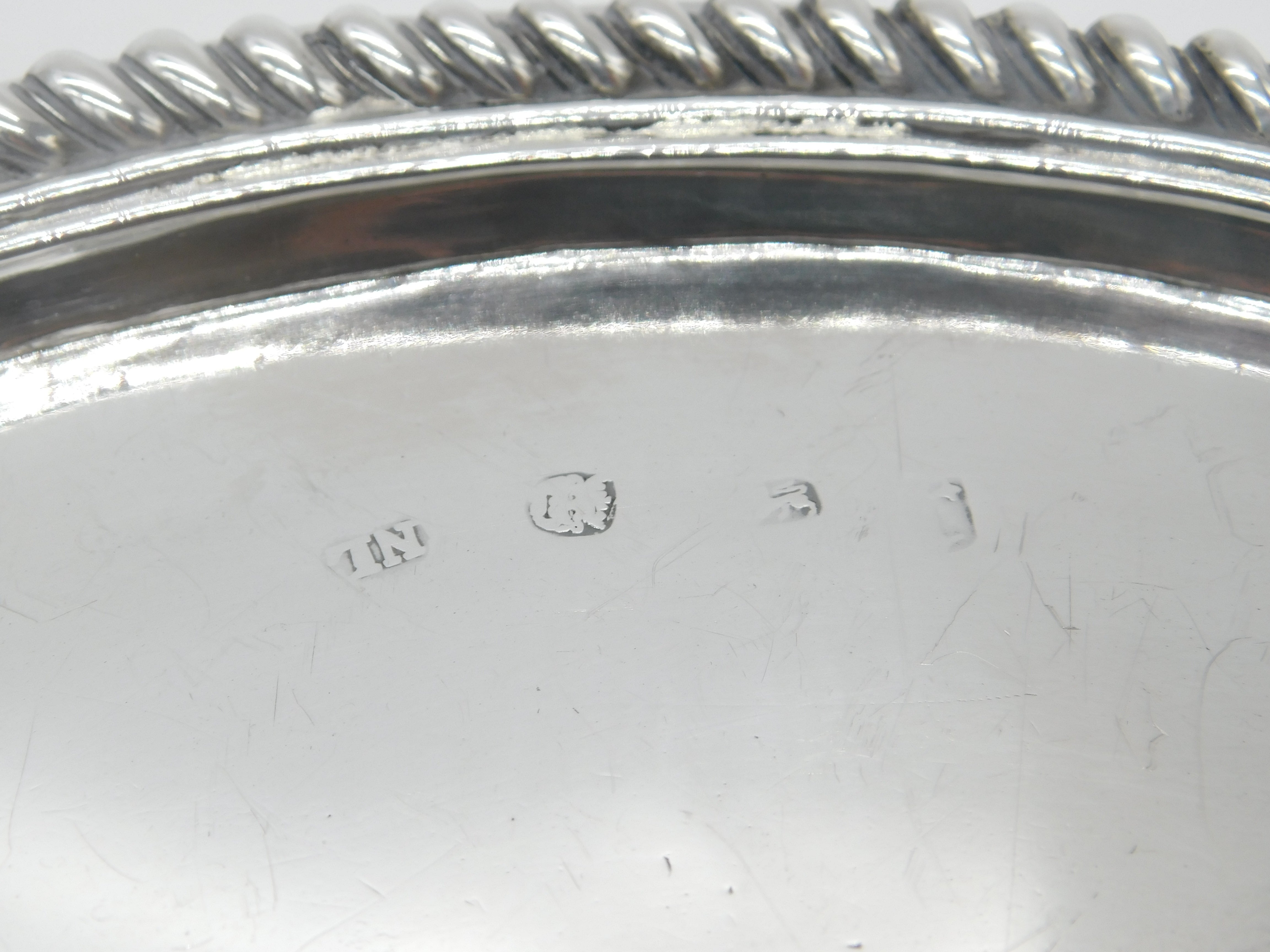 Details: A fantastic and wonderfully designed antique Charles II sterling silver large salver or serving dish with heraldic crest to the centre, ropework borders and paw feet clearly hallmarked to the top London 1680 by maker NL. A very fine and wonderfully crafted piece believed to have once been a presentation tazza as one can see the circular marks where that would have been attatched. The ropework border has a few minor dents and one very small split but generally the item is in excellent condition given its age. We cannot unfortunately identify who the makers mark NL refers to - please see Jackson's for reference citing the Edkins Collection. This is a wonderful item that would make a perfect gift or addition to any collection. The BOX pictured is for PRESENTATION ONLY and is NOT included in the listings but used to frame the pictures unless specifically stated otherwise.