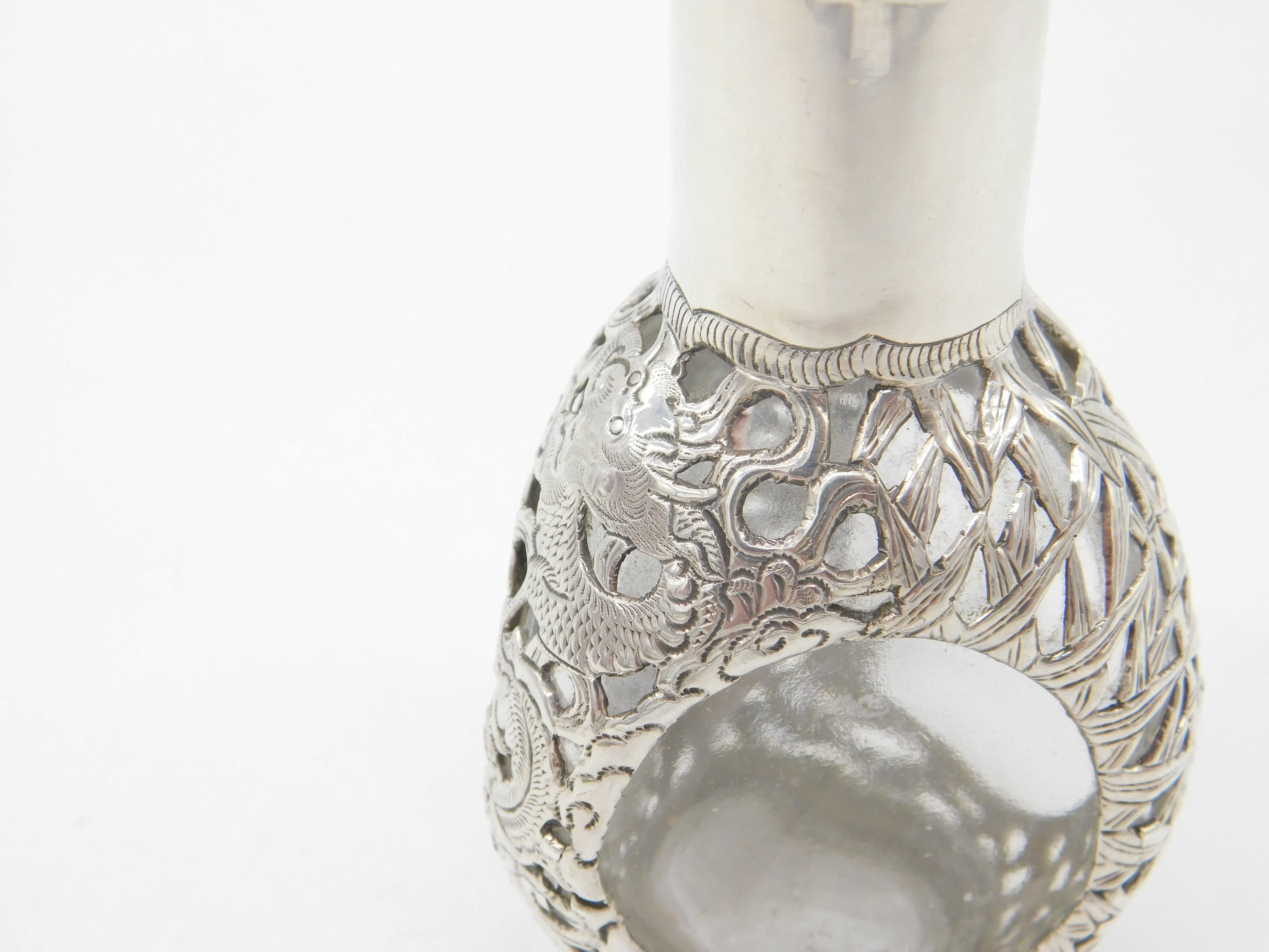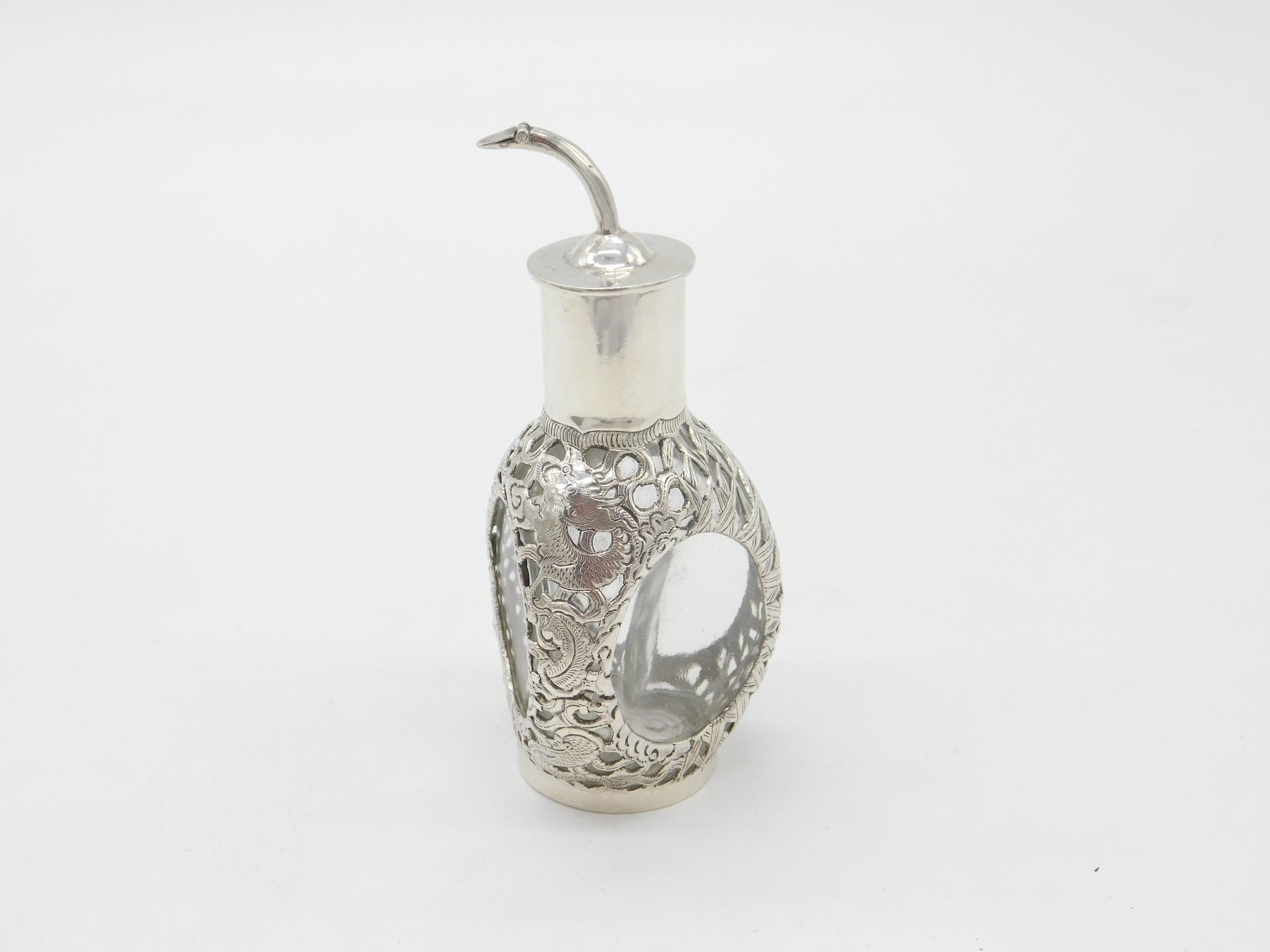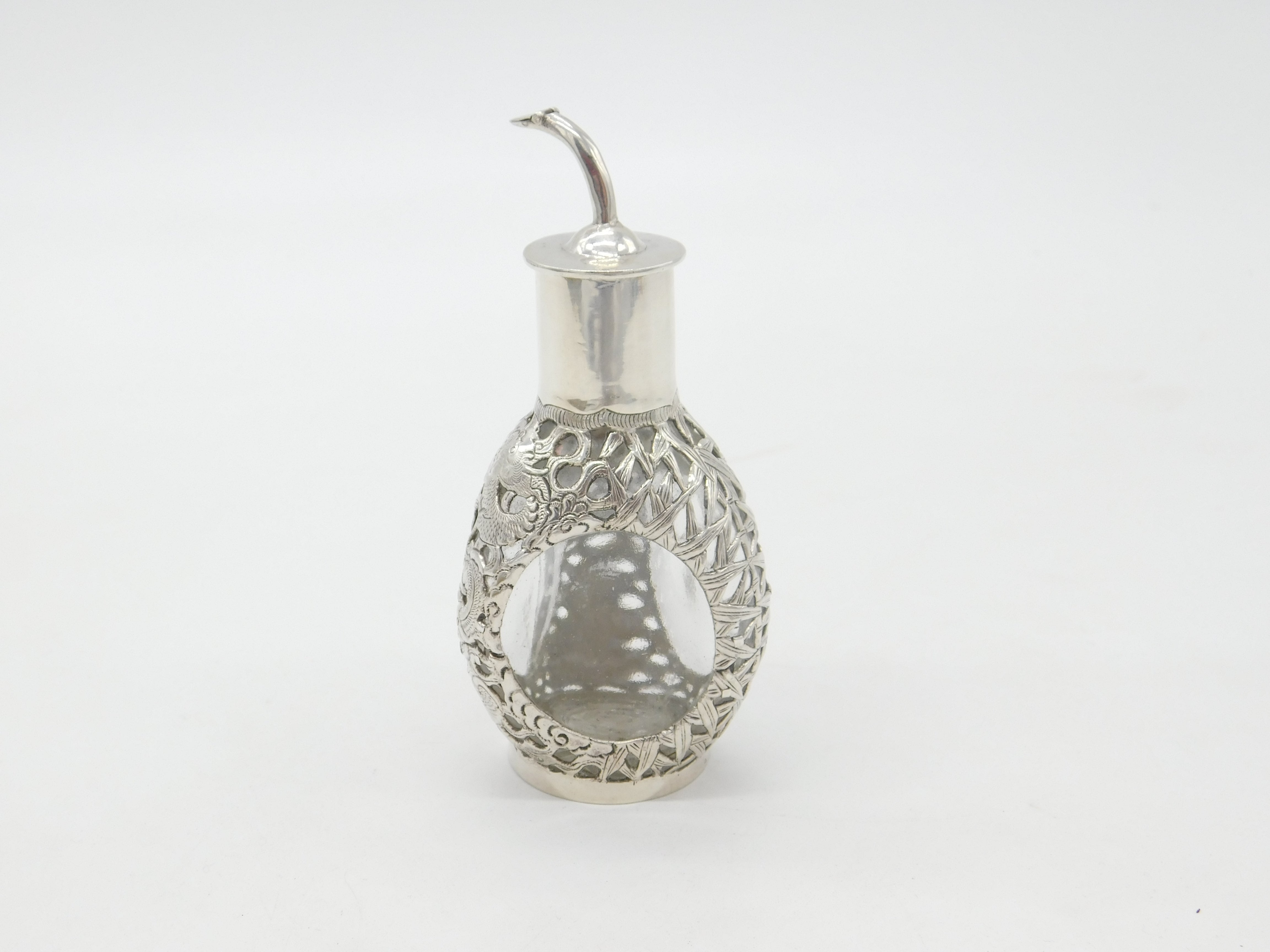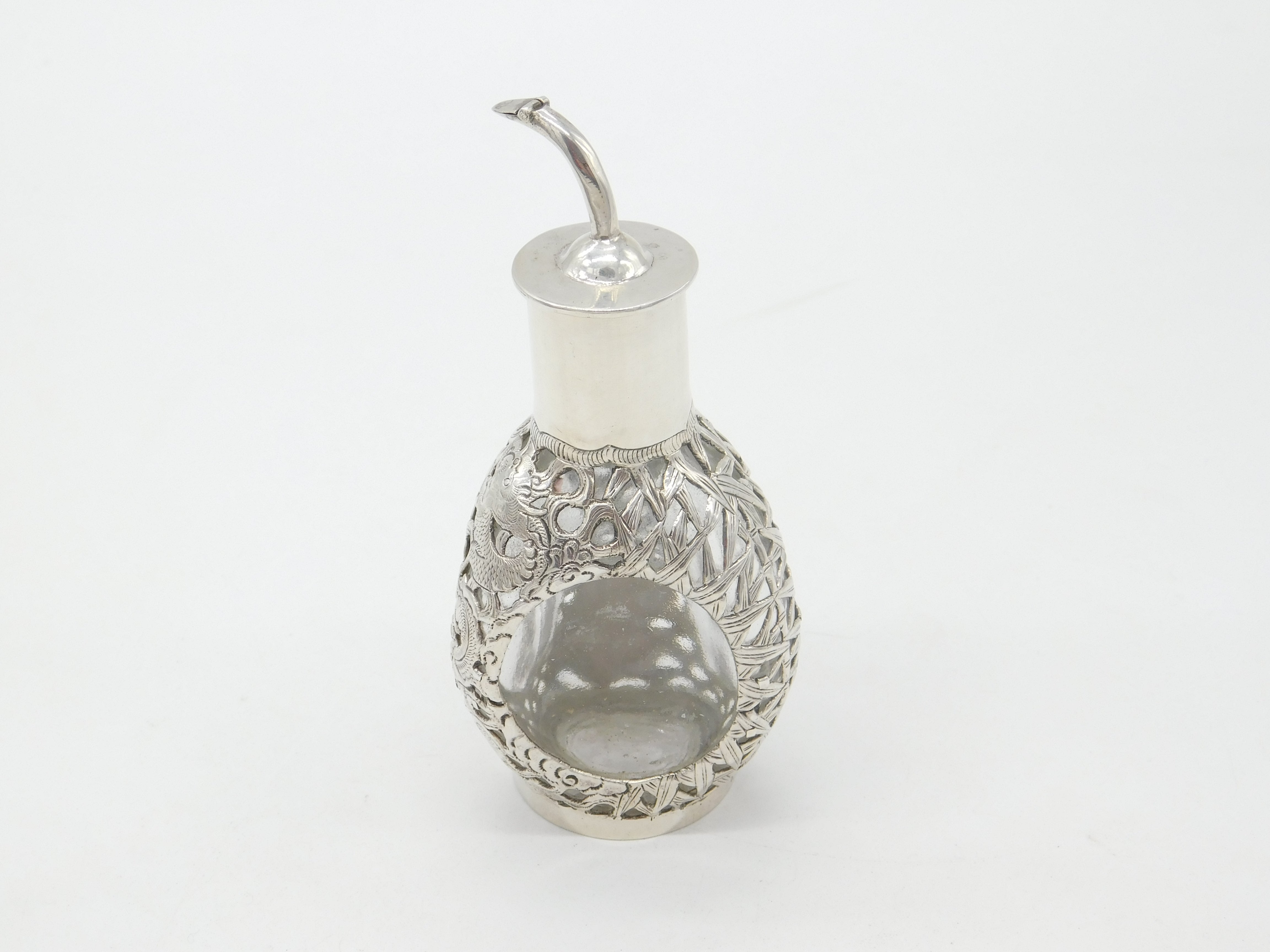 Details: A fantastic and wonderfully designed antique art deco sterling silver and dimpled glass Chinese Export soy pourer or oil pourer with gorgeous dragon form detail hallmarked to the base c1940. This is a wonderful item that would make a perfect gift or addition to any collection. The BOX pictured is for PRESENTATION ONLY and is NOT included in the listings but used to frame the pictures unless specifically stated otherwise.