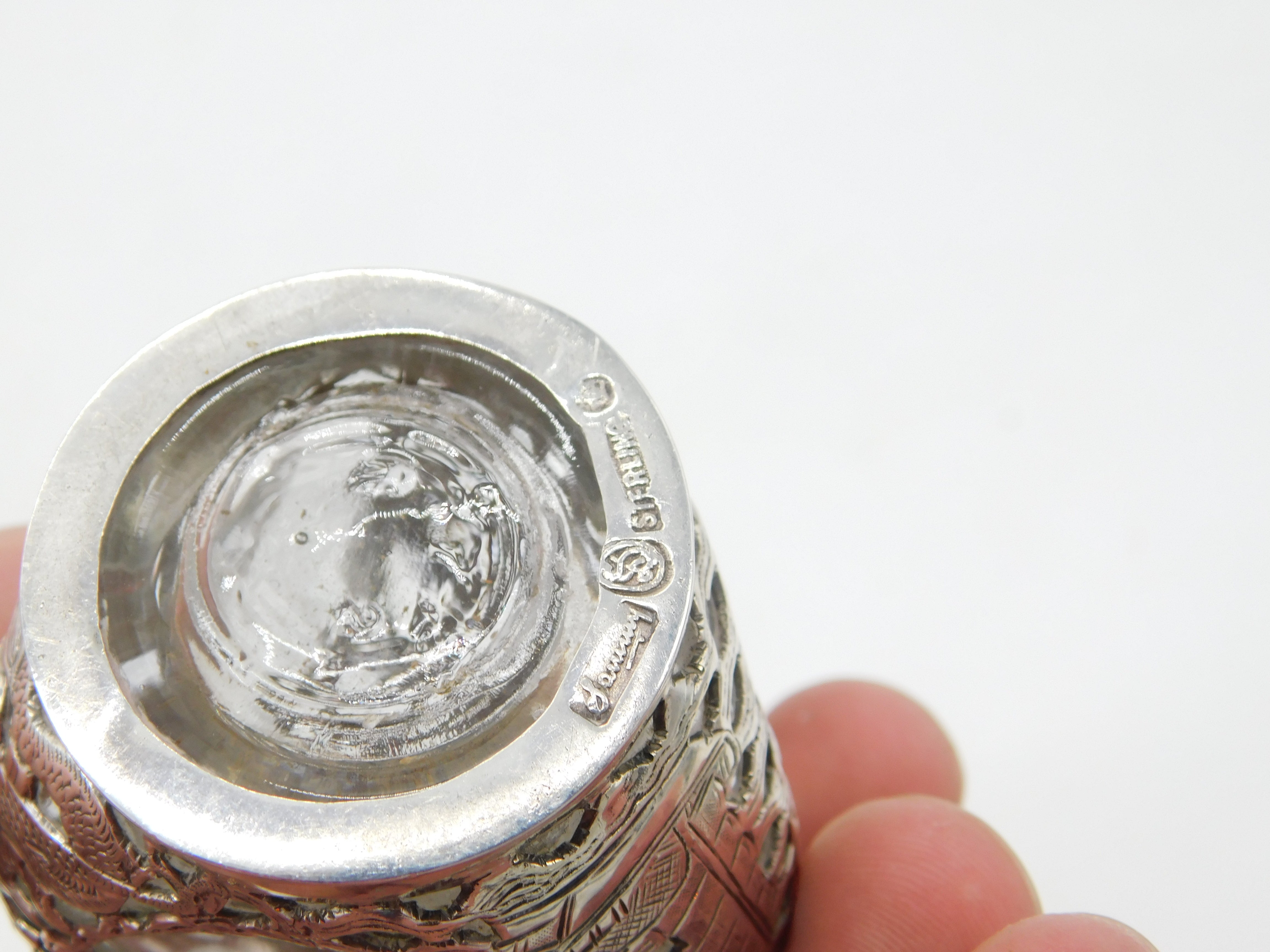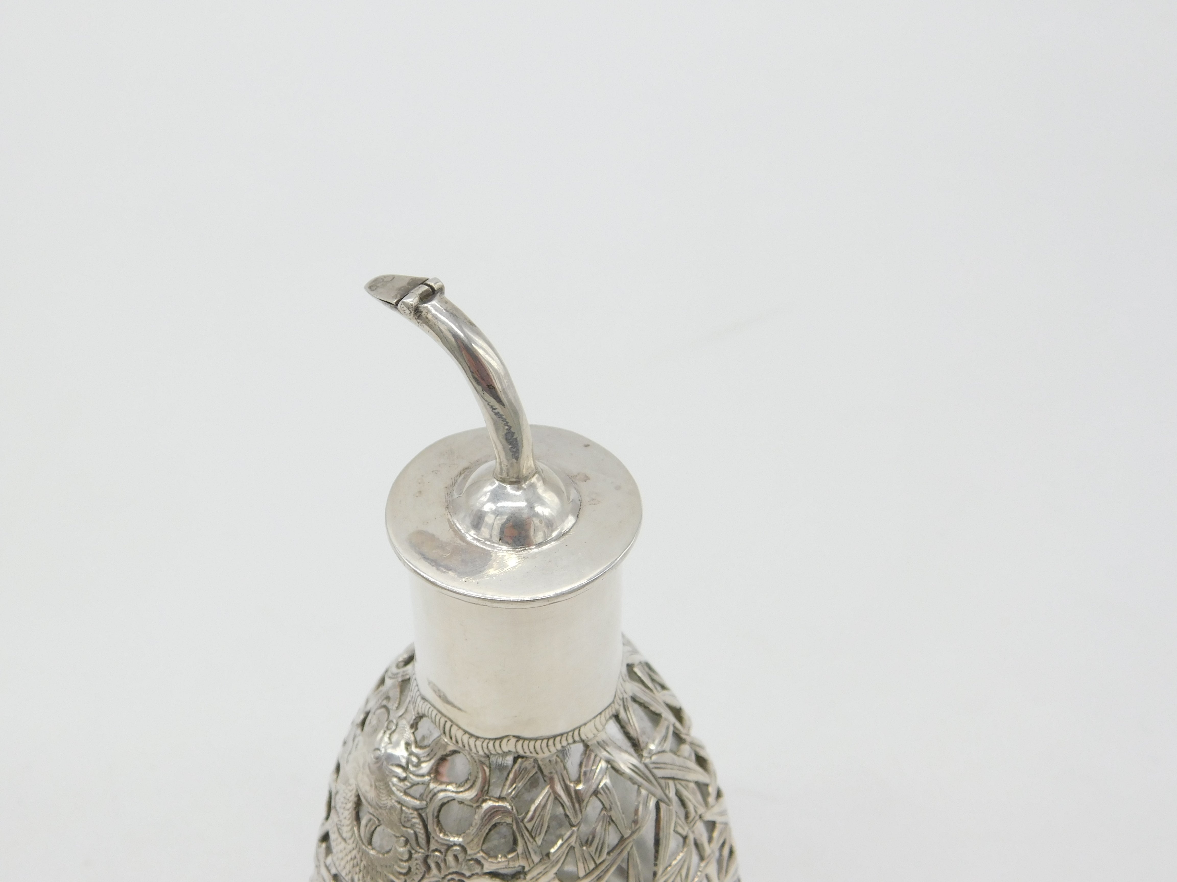 Chinese Export Sterling Silver & Dimpled Glass Soy Pourer Antique c1940 Deco