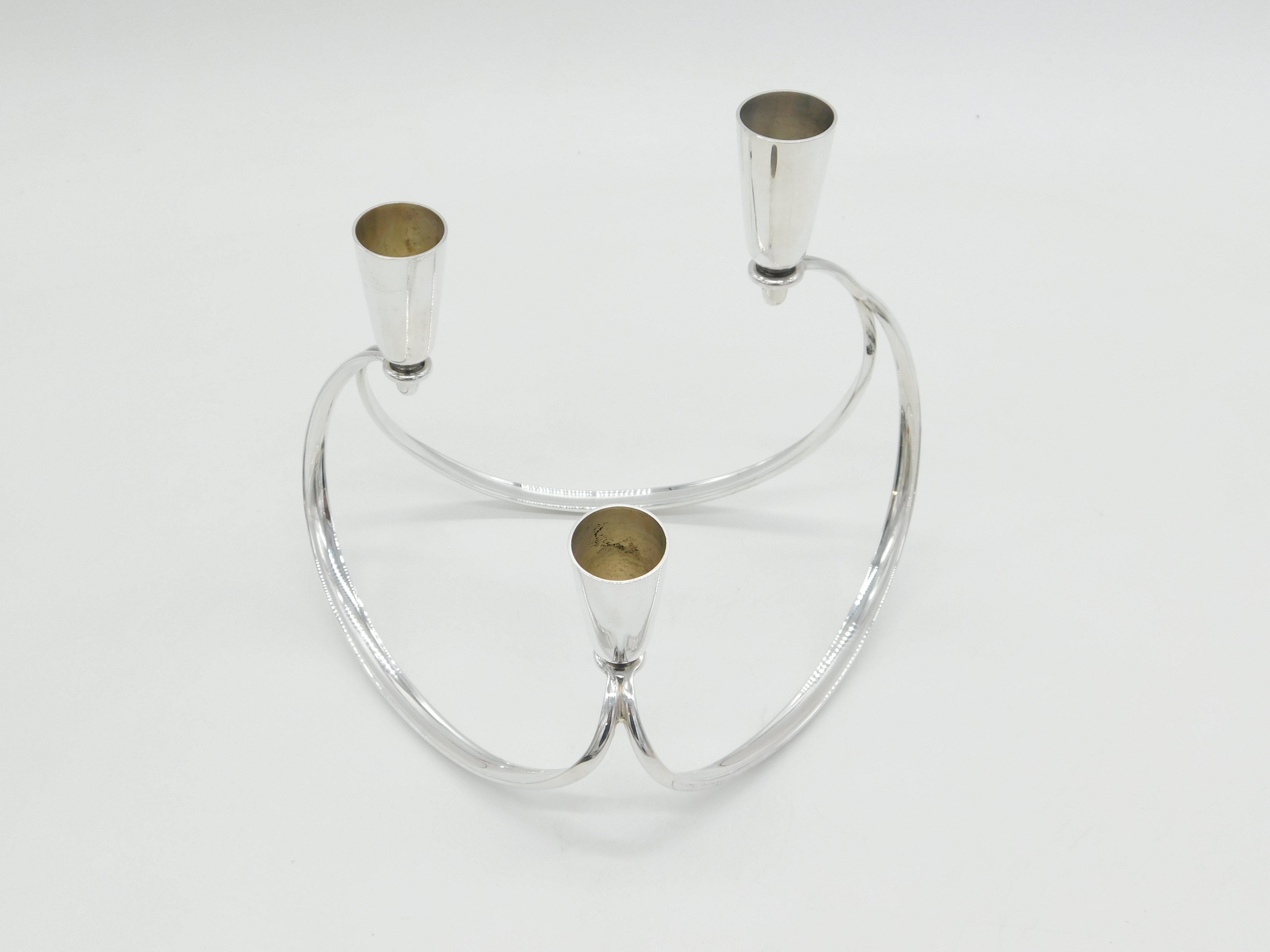 Danish Sterling Silver Modernist Three-Branch Candelabra Vintage c1970 by Cohr