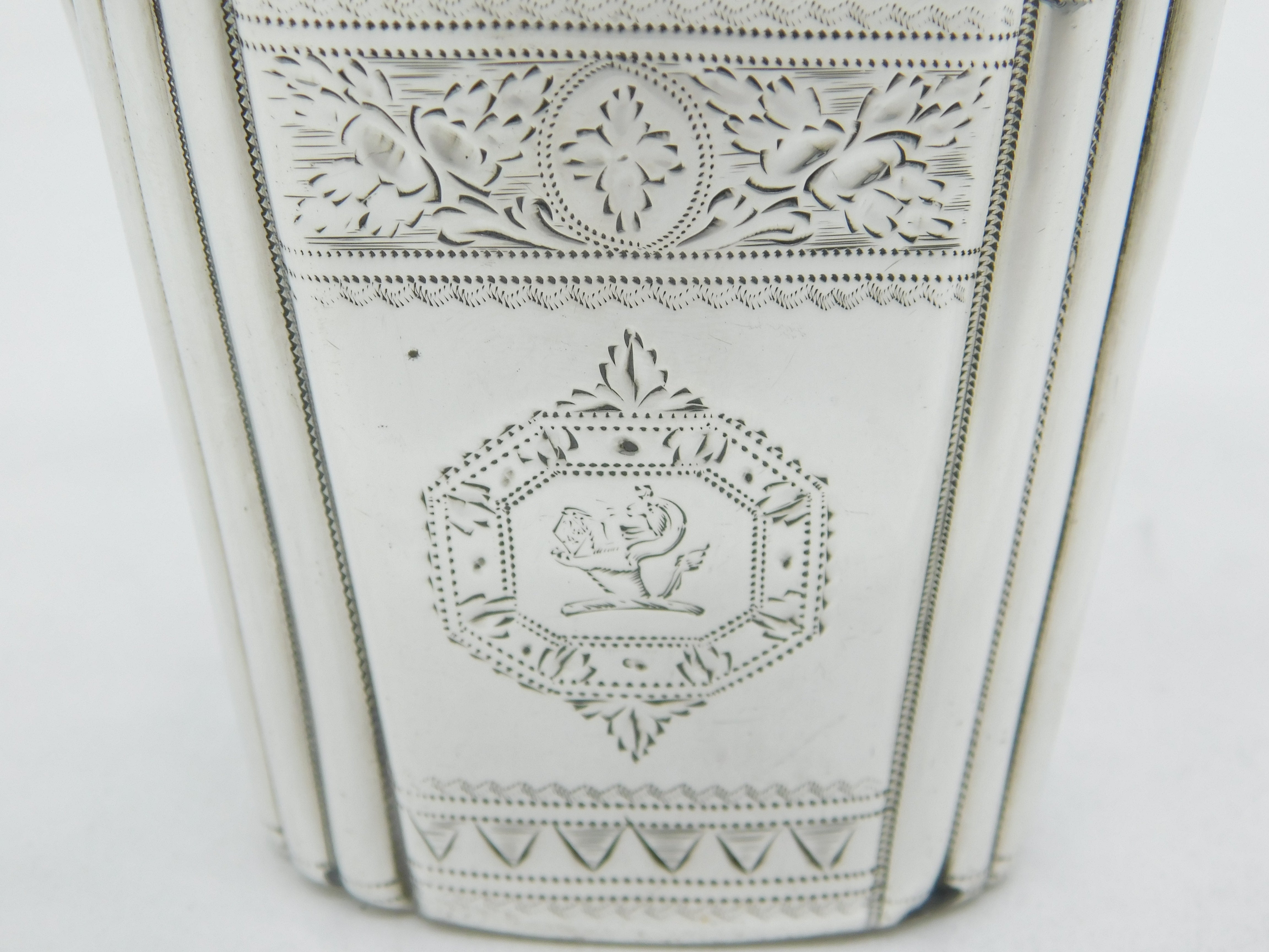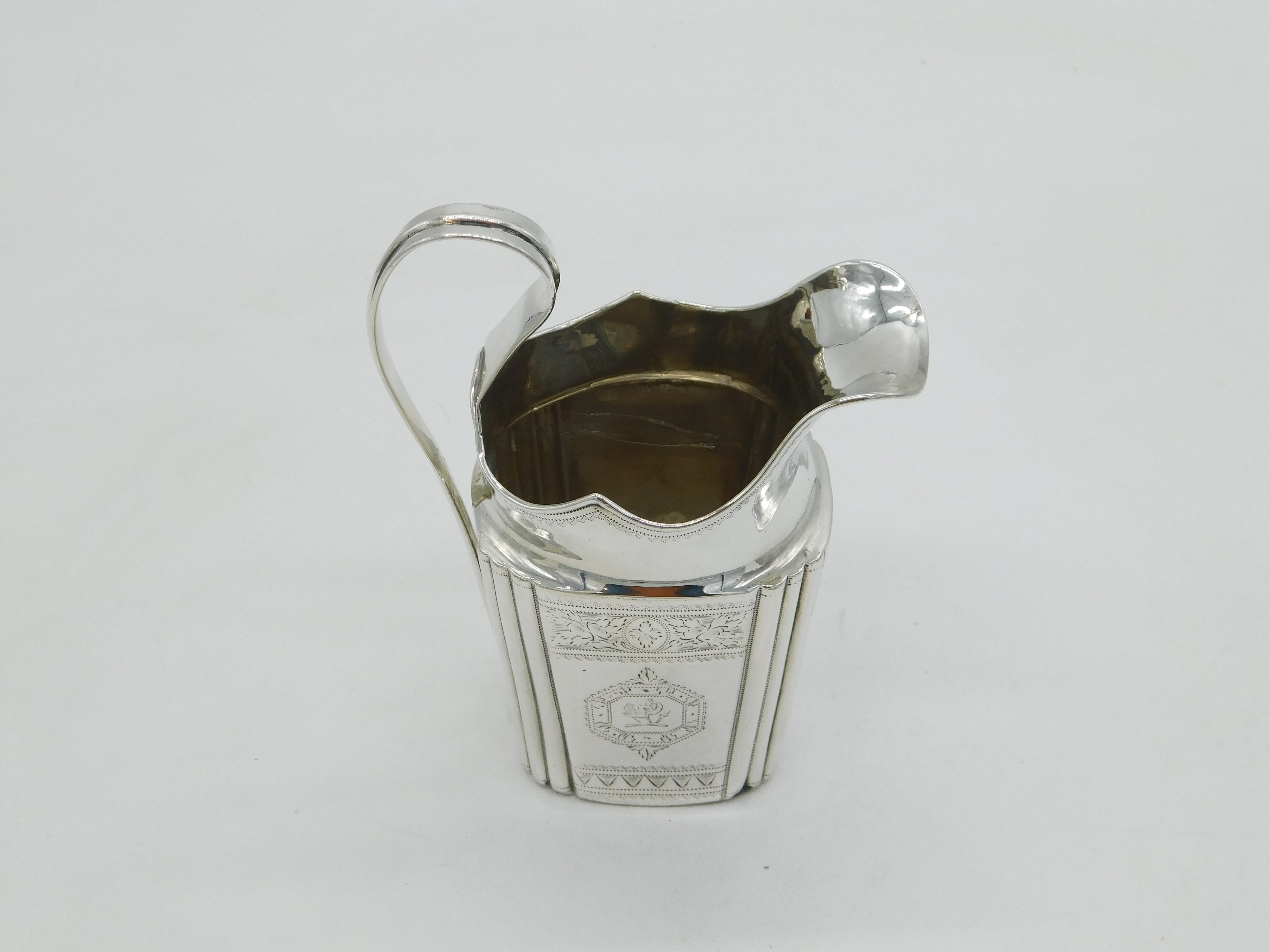 Details: A fantastic and wonderfully designed antique early-Irish georgian sterling silver cream jug with floral engraving and charming heraldic crests to the front hallmarked to the base Dublin c1736 with rubbed makers marks. Solder repair to the bottom edge please note and minor dings. This is a wonderful item that would make a perfect gift or addition to any collection. We are more than happy to provide XRF reports for items upon request.