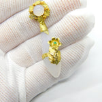 Early Victorian 18ct Gold, Carved Chalcedony & Emerald Floral Pendant c1840