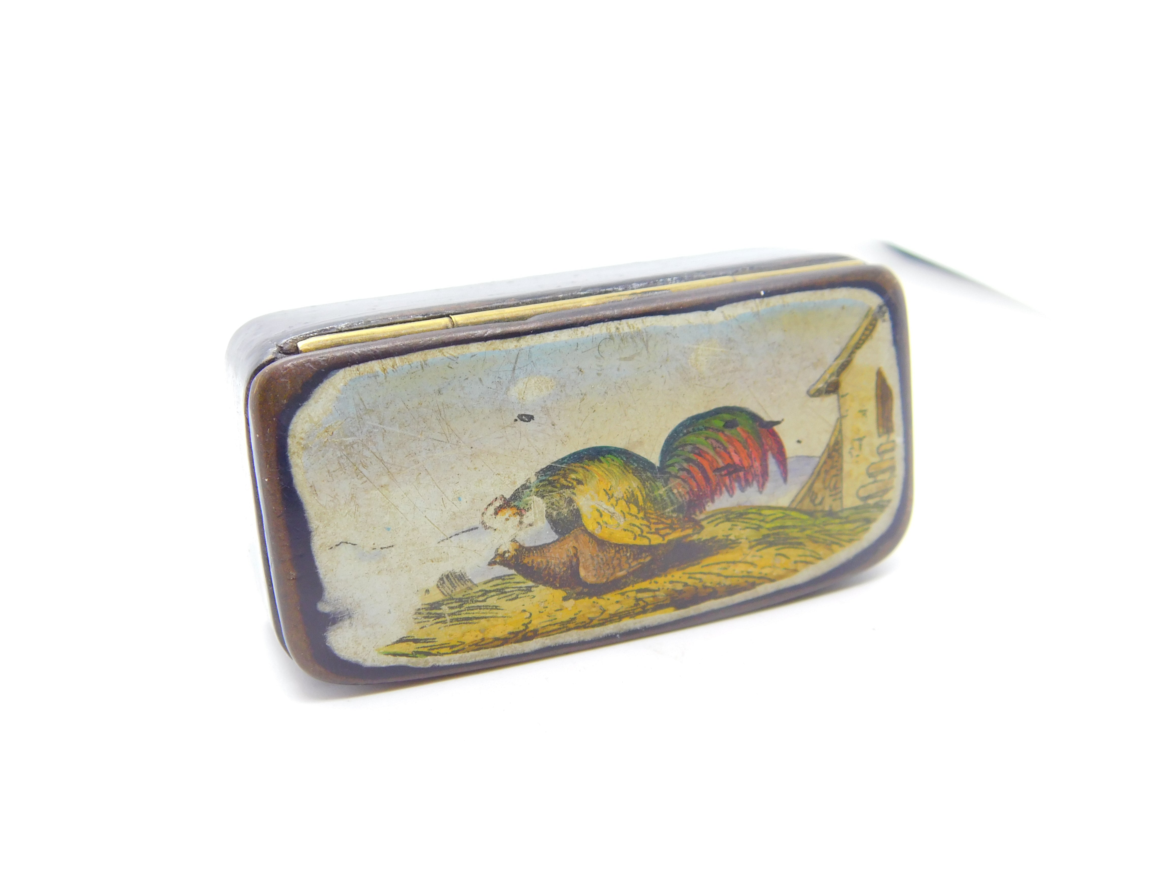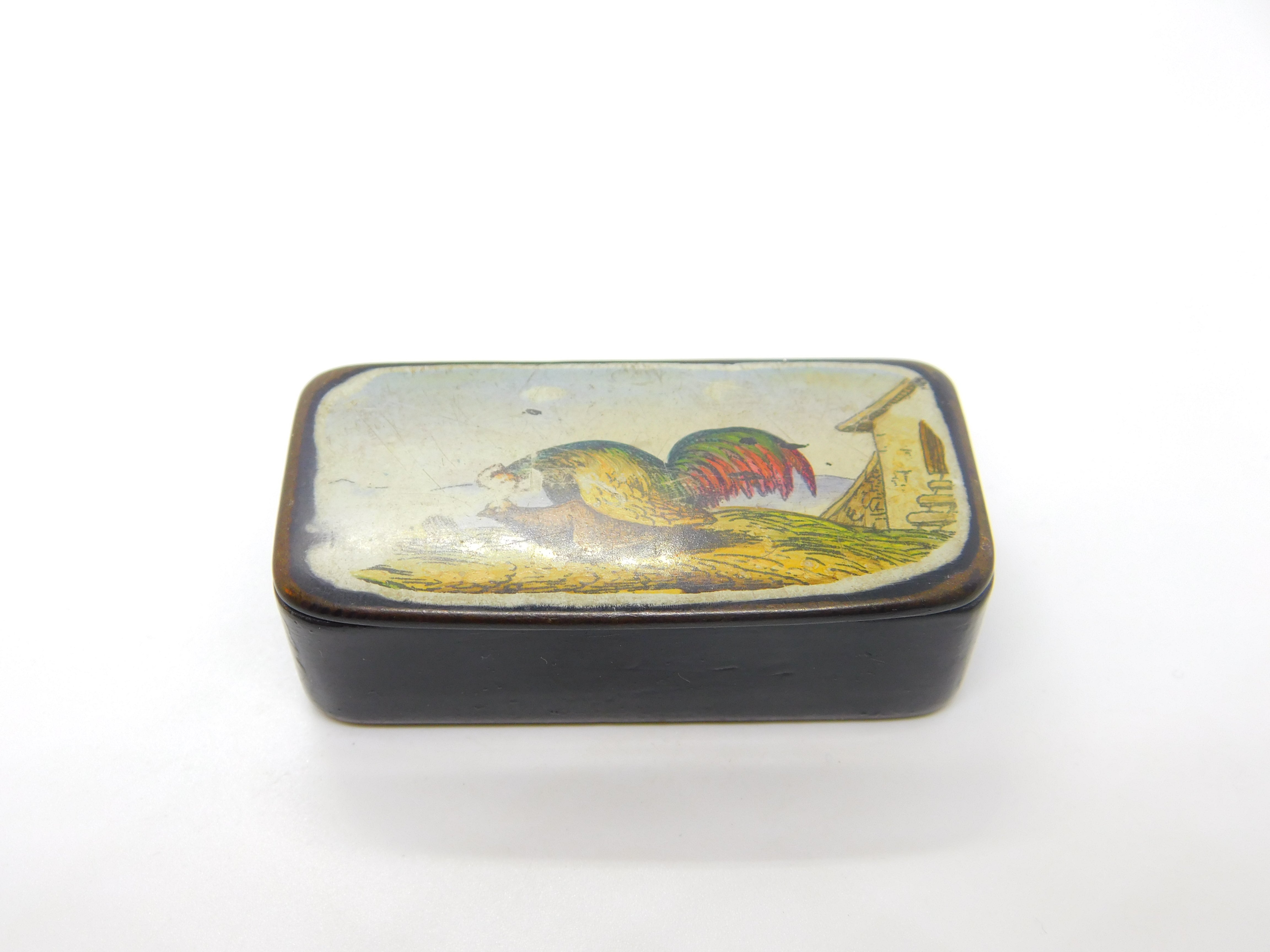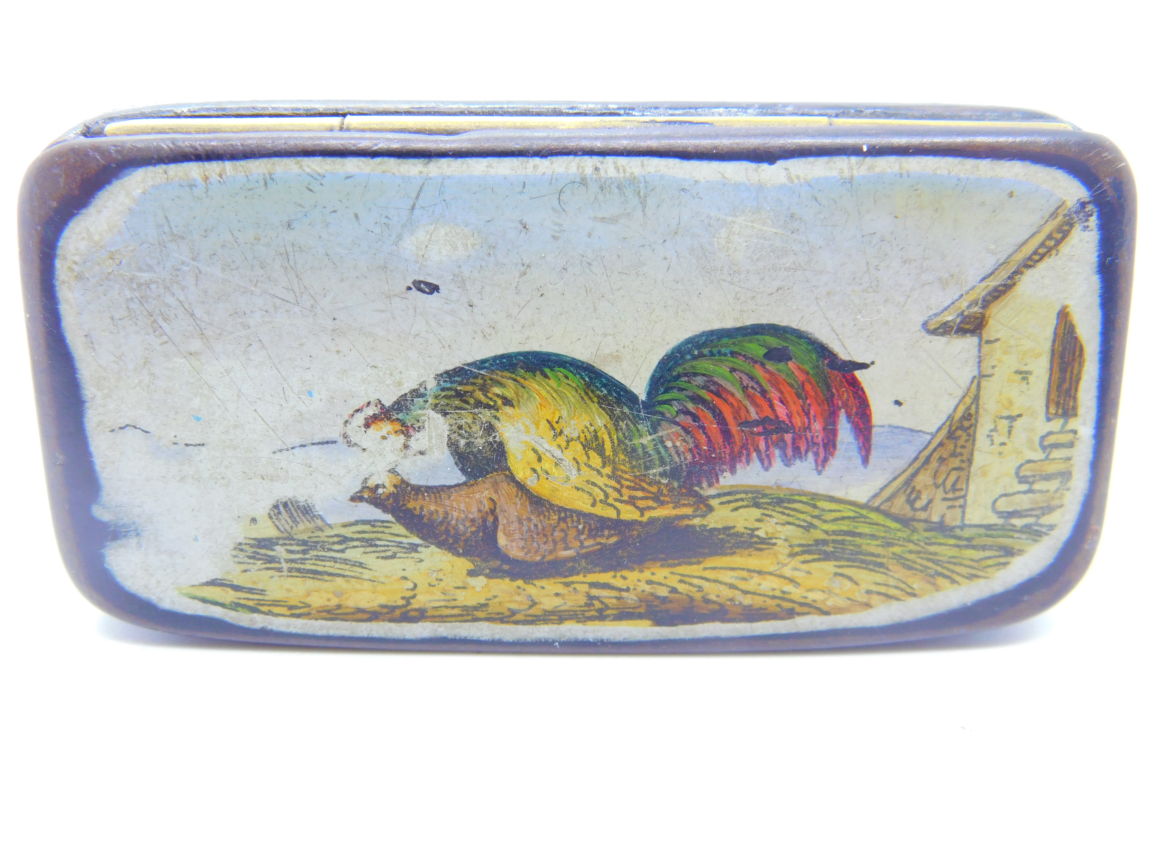 Early Victorian Papier Mache Raunchy Chicken Scene Snuff Box Antique c1840
