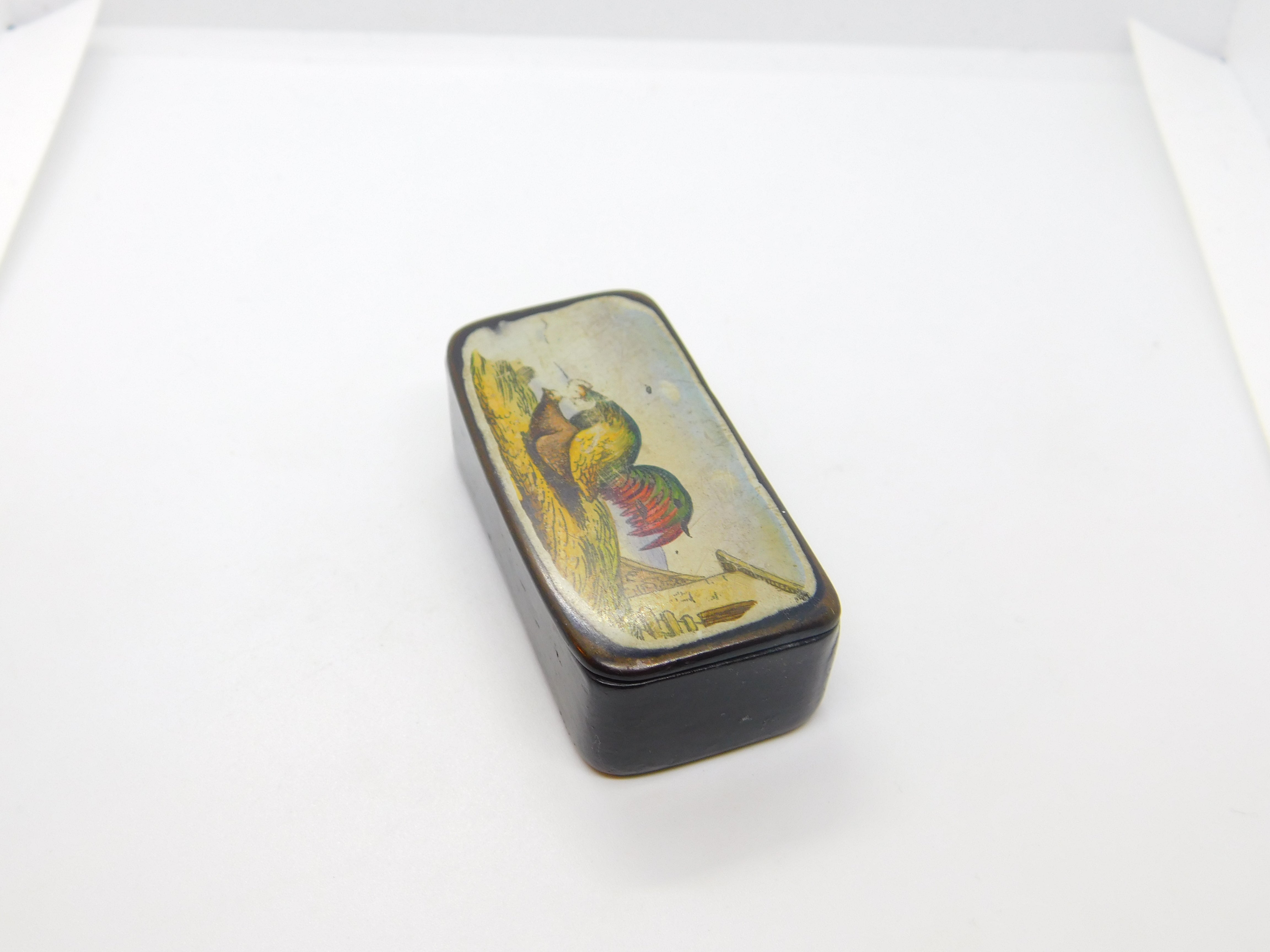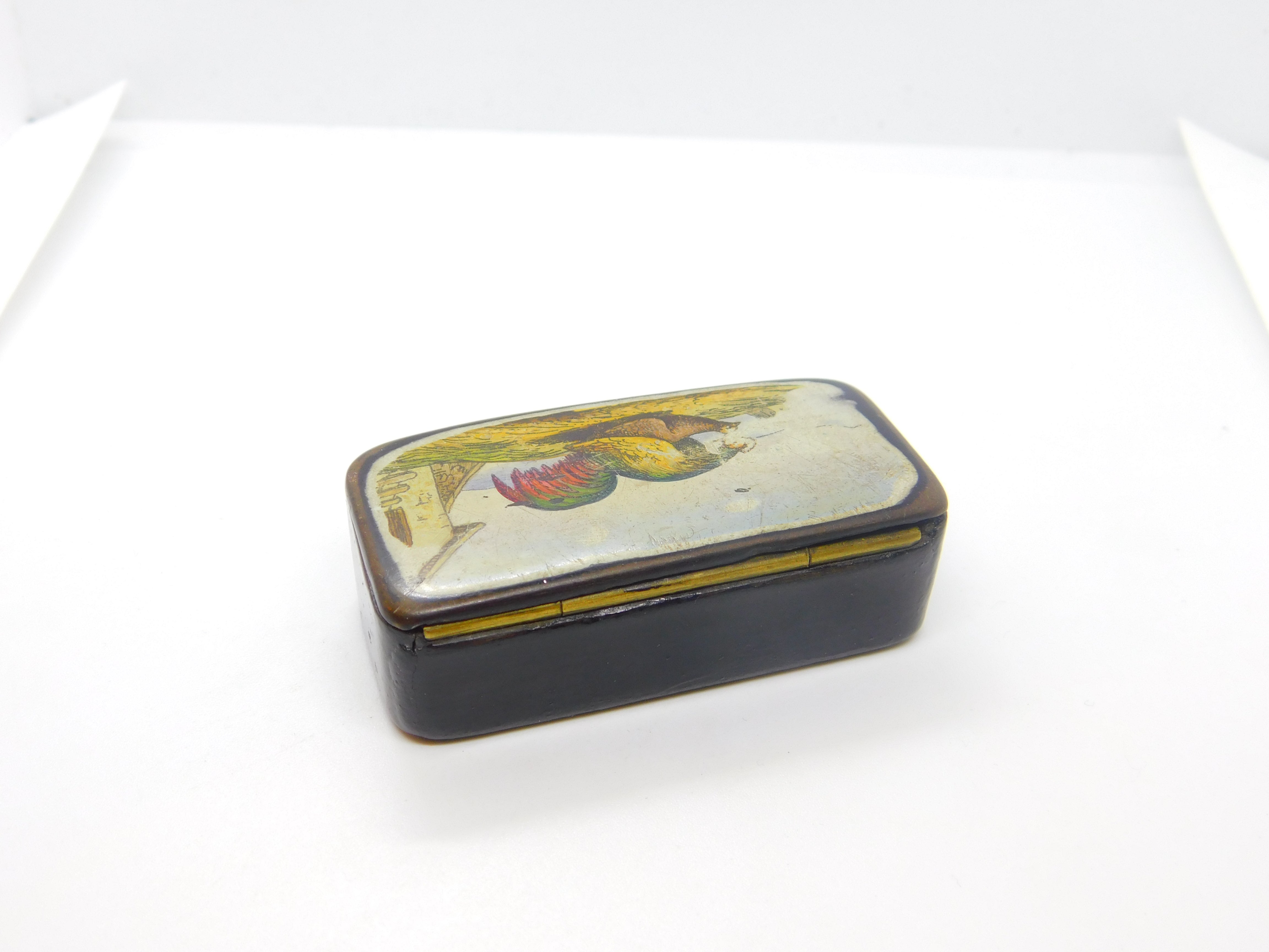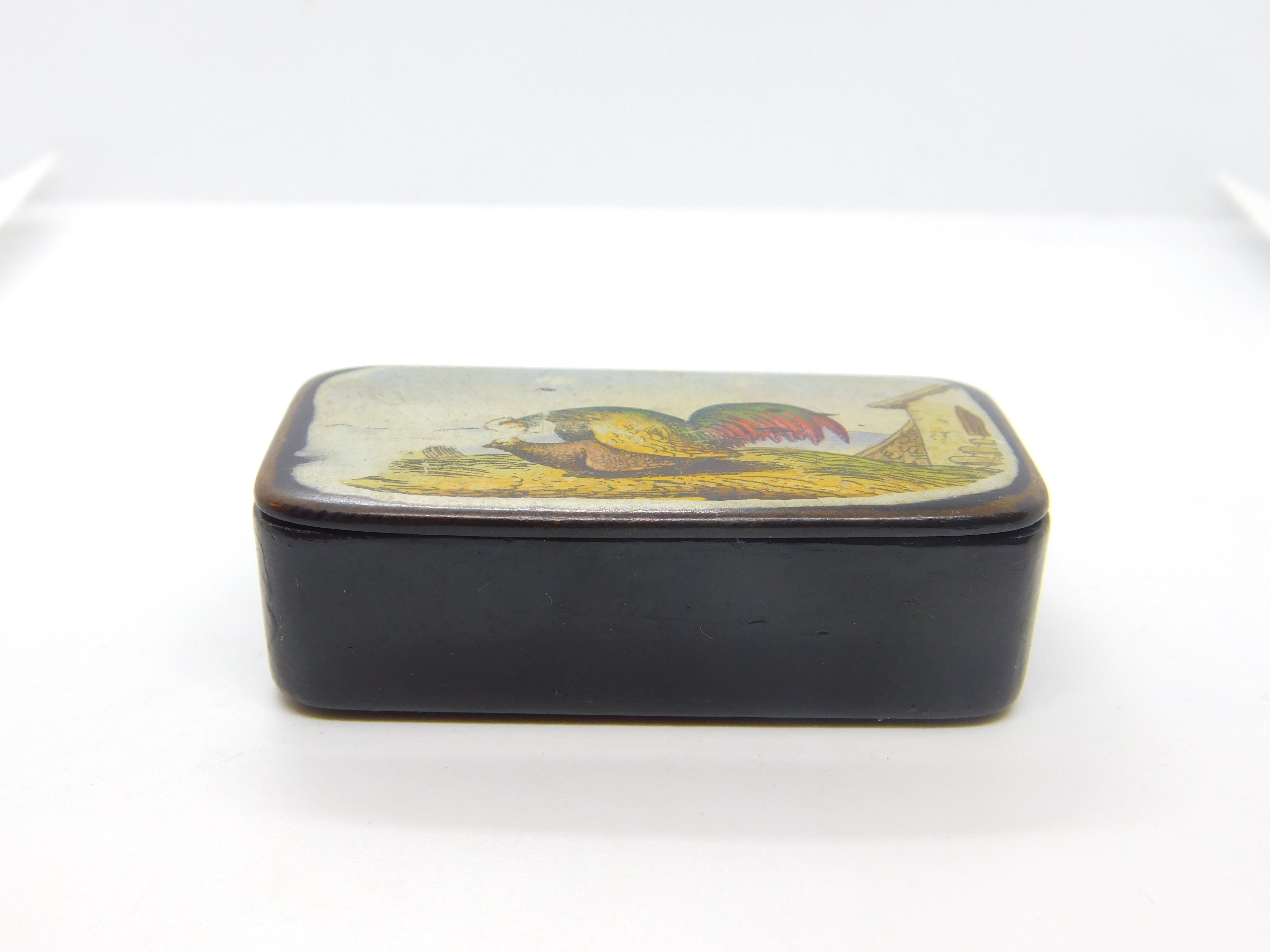 Early Victorian Papier Mache Raunchy Chicken Scene Snuff Box Antique c1840