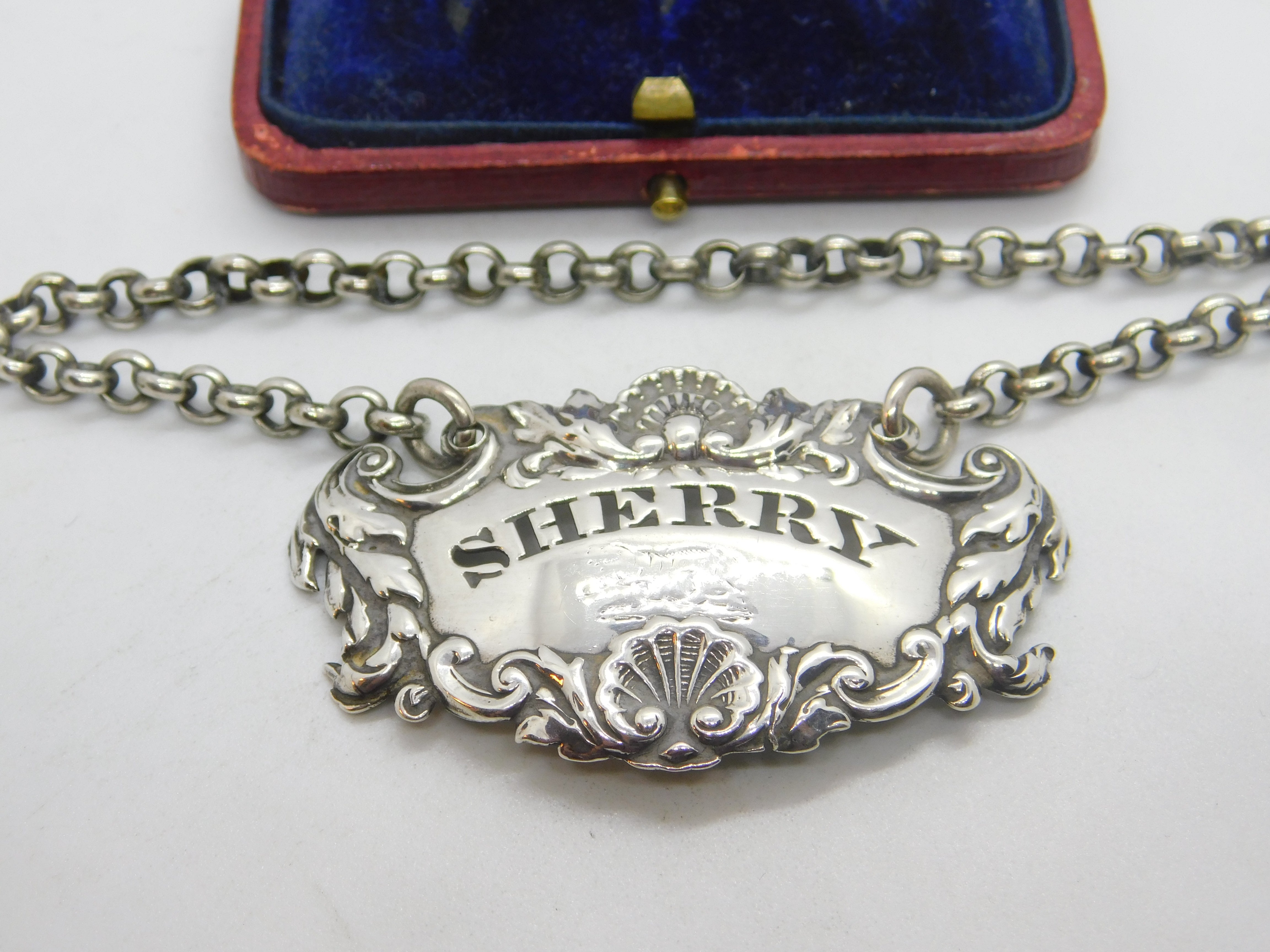 Details: A fantastic and wonderfully designed antique early Victorian sterling silver Sherry decanter label with lovely detailing including a crocodile crest to the front hallmarked London 1843 by Charles Reily & George Storer. This is a wonderful item that would make a perfect gift or addition to any collection. The BOX pictured is for PRESENTATION ONLY and is NOT included in the listings but used to frame the pictures unless specifically stated otherwise.