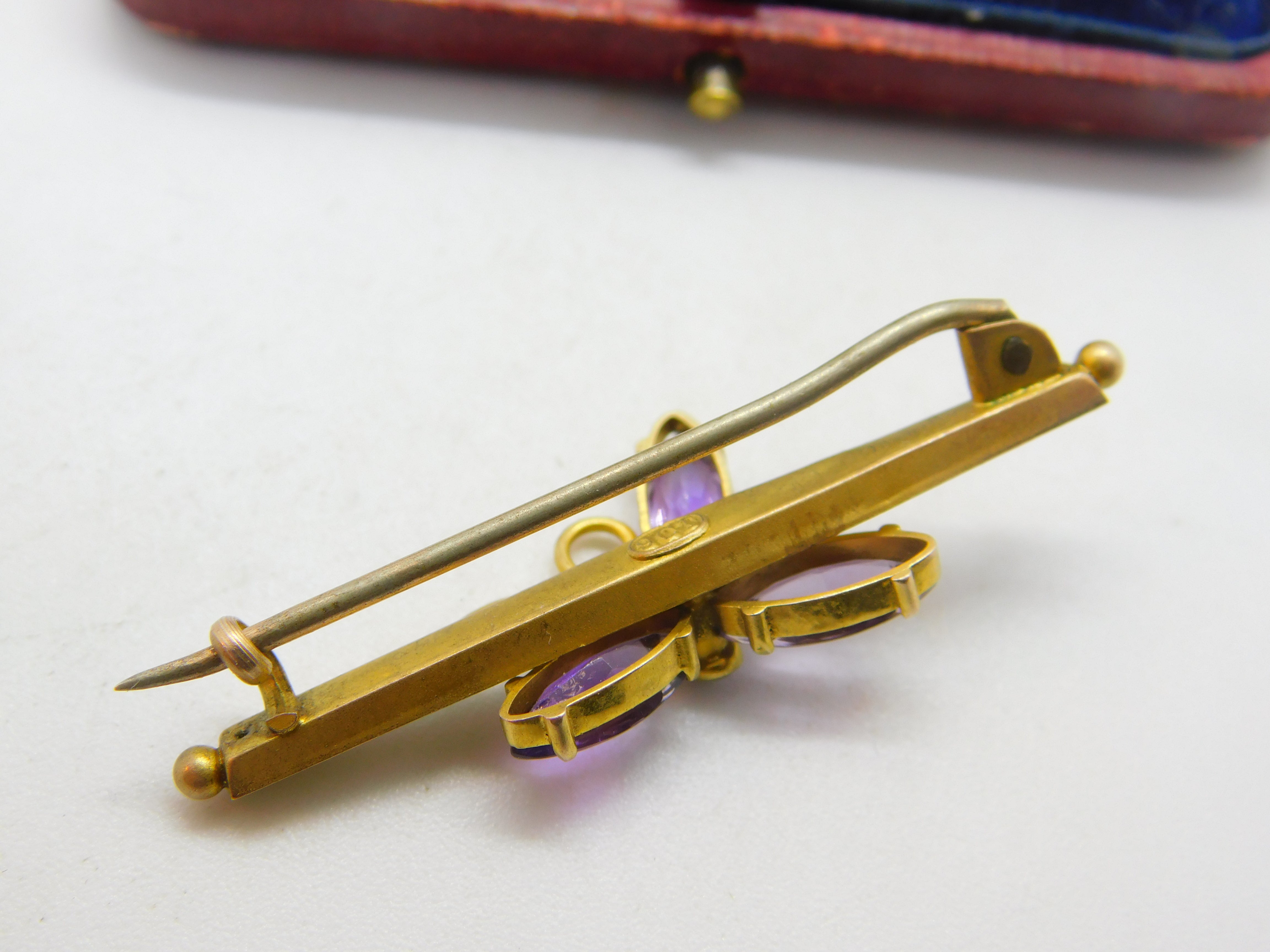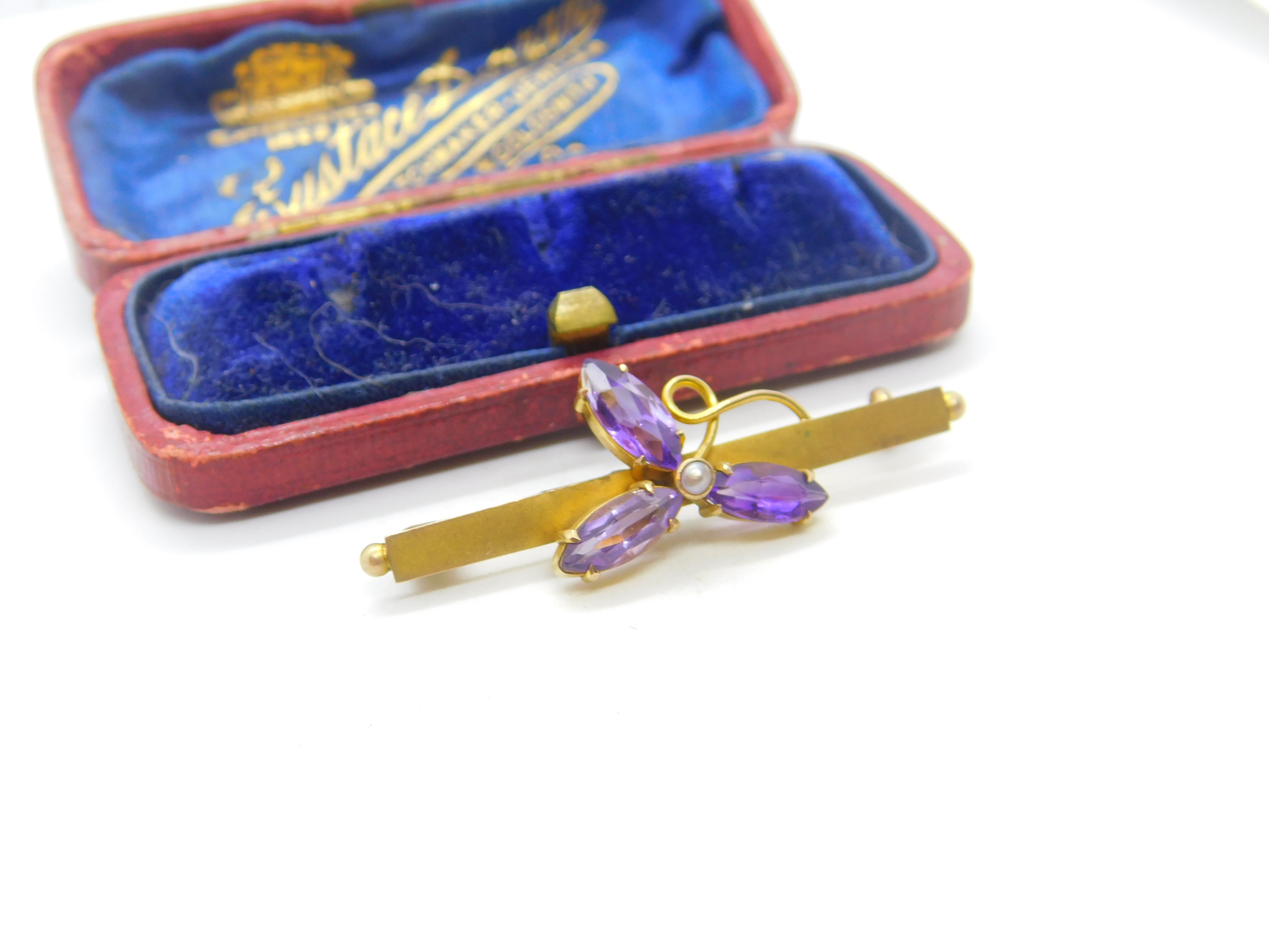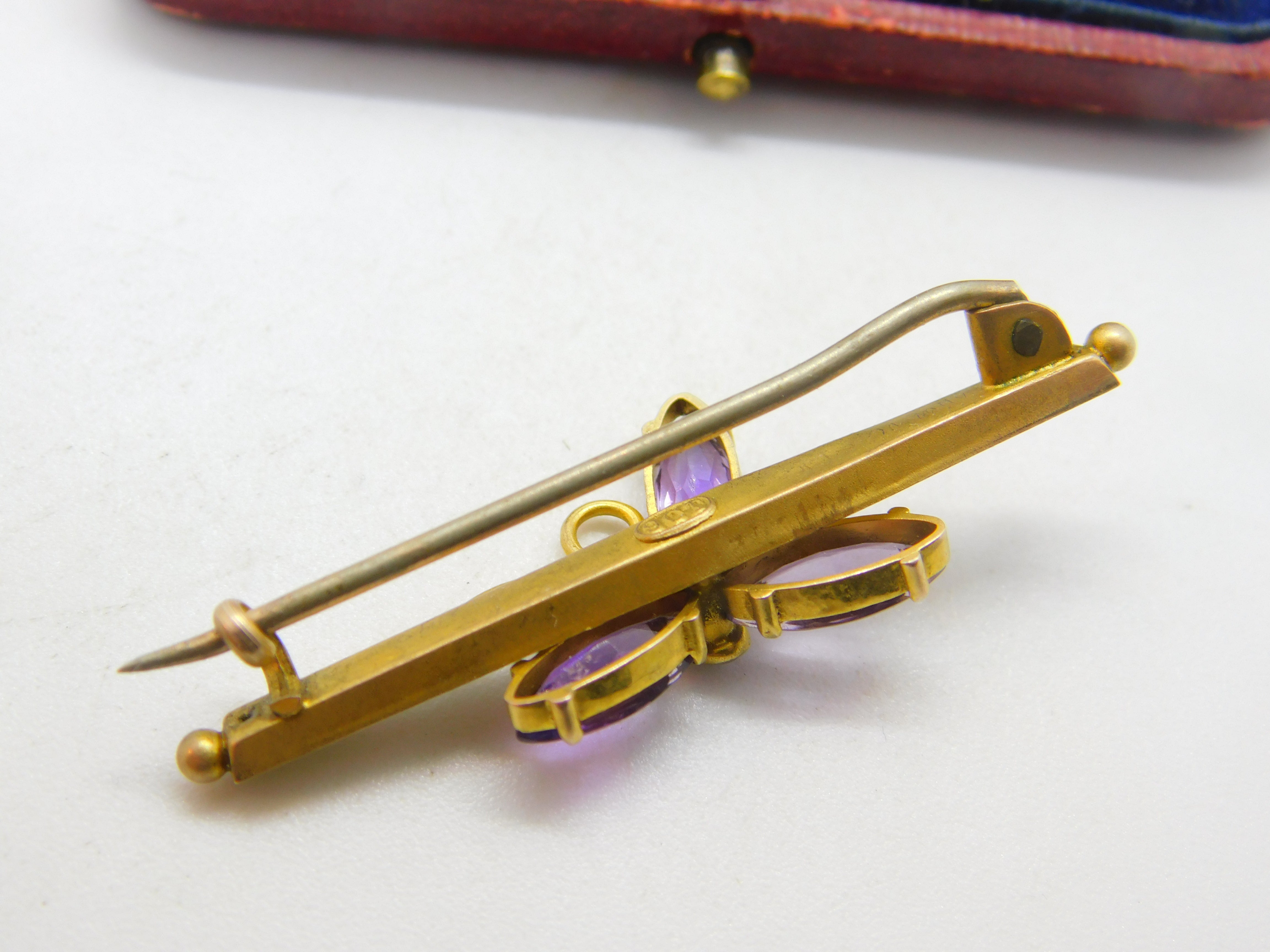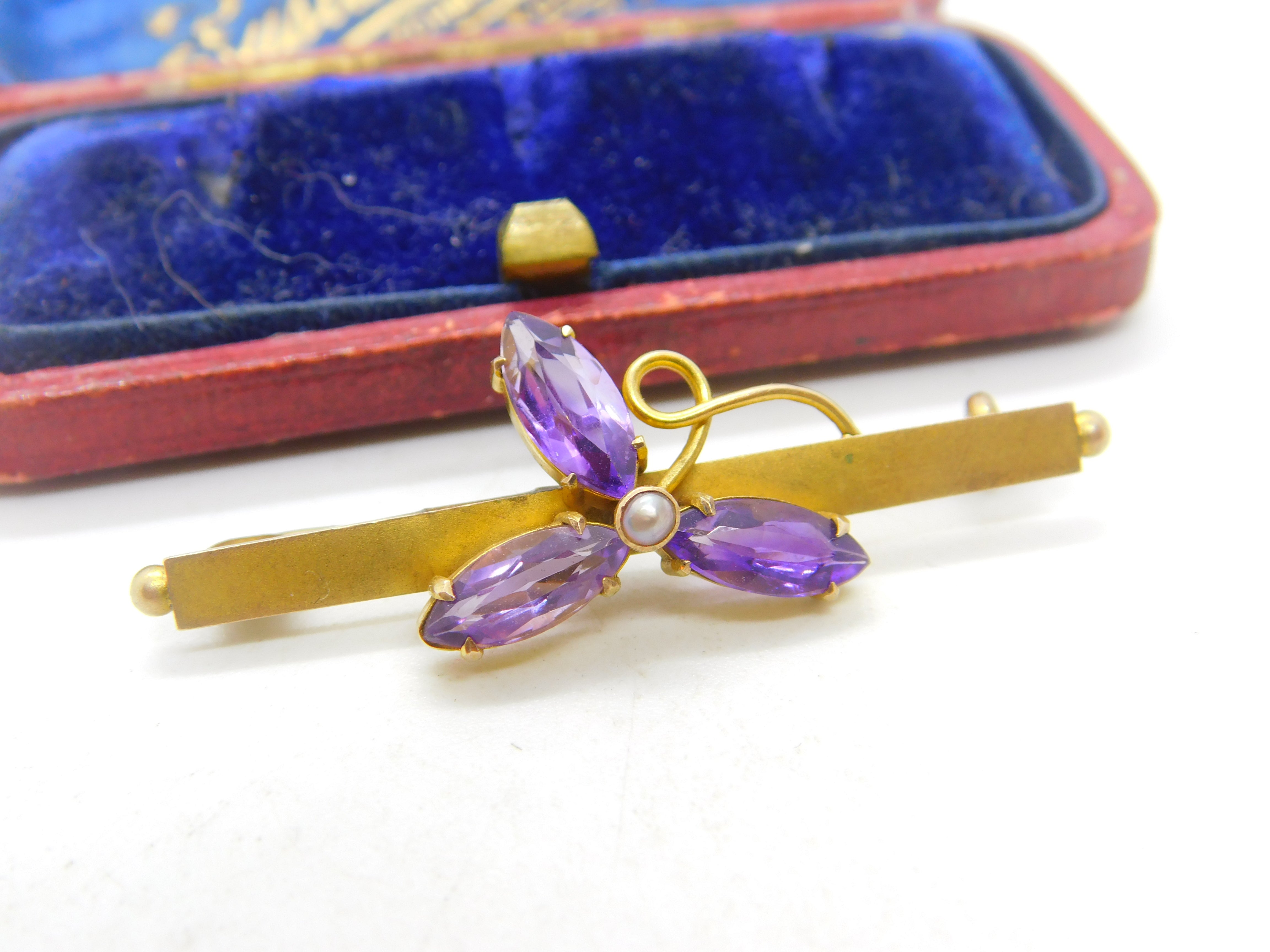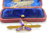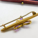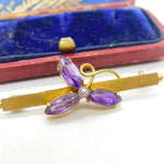 Edwardian 9ct Gold, Amethyst & Pearl Set Shamrock Brooch Antique c1910