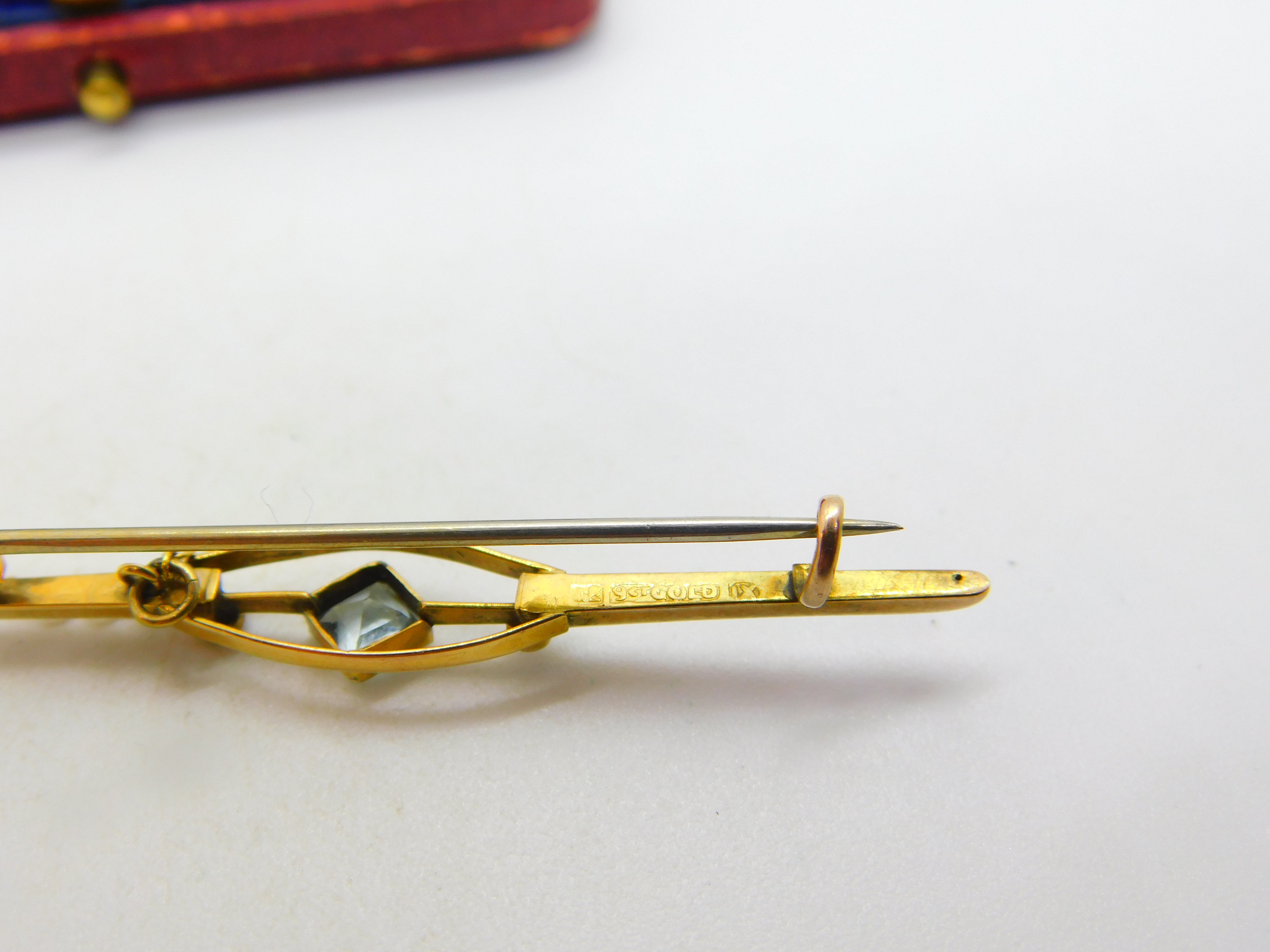 Edwardian 9ct Gold, Blue Topaz & Seed Pearl Sweetheart Brooch c1910 Antique