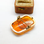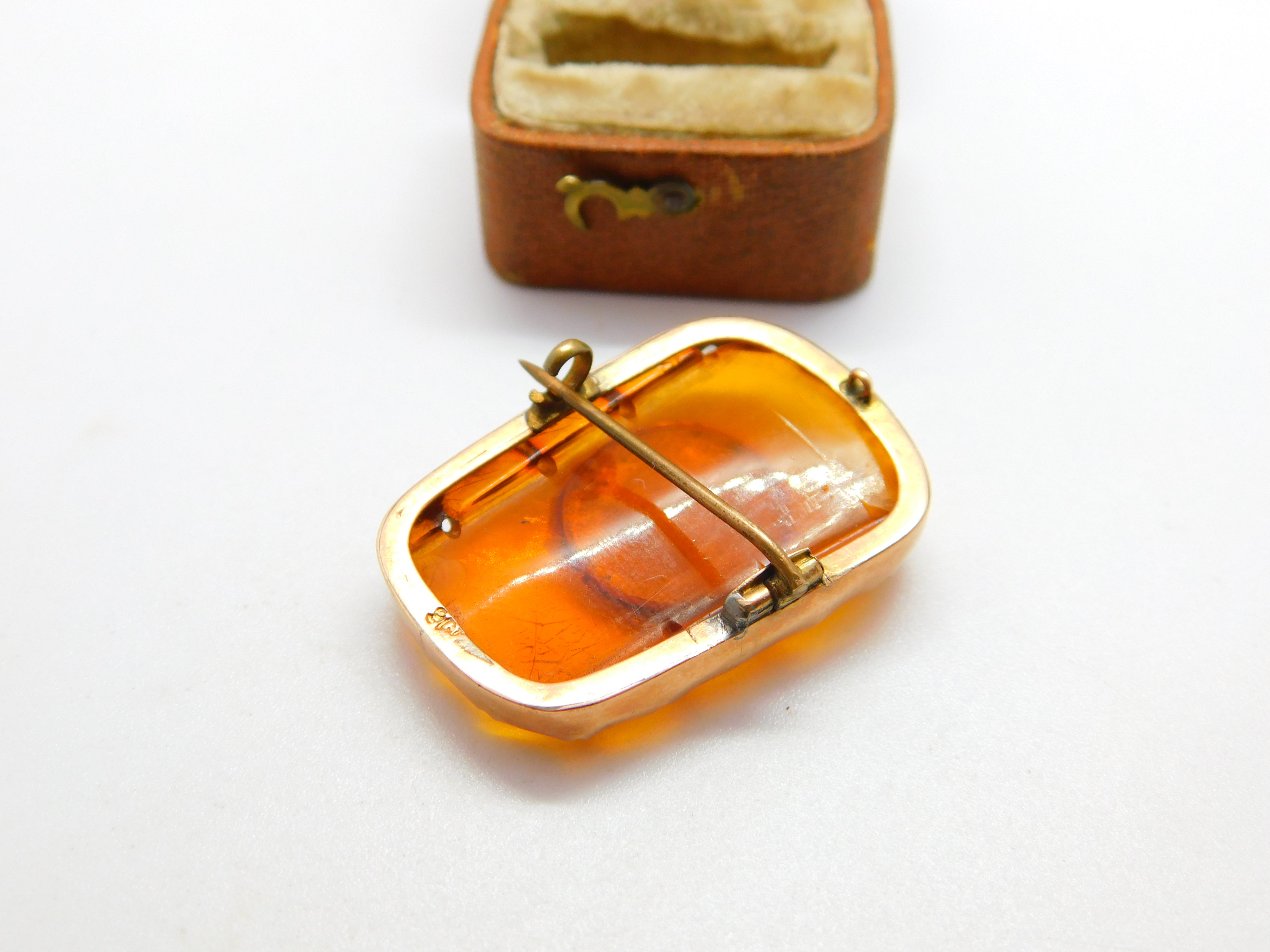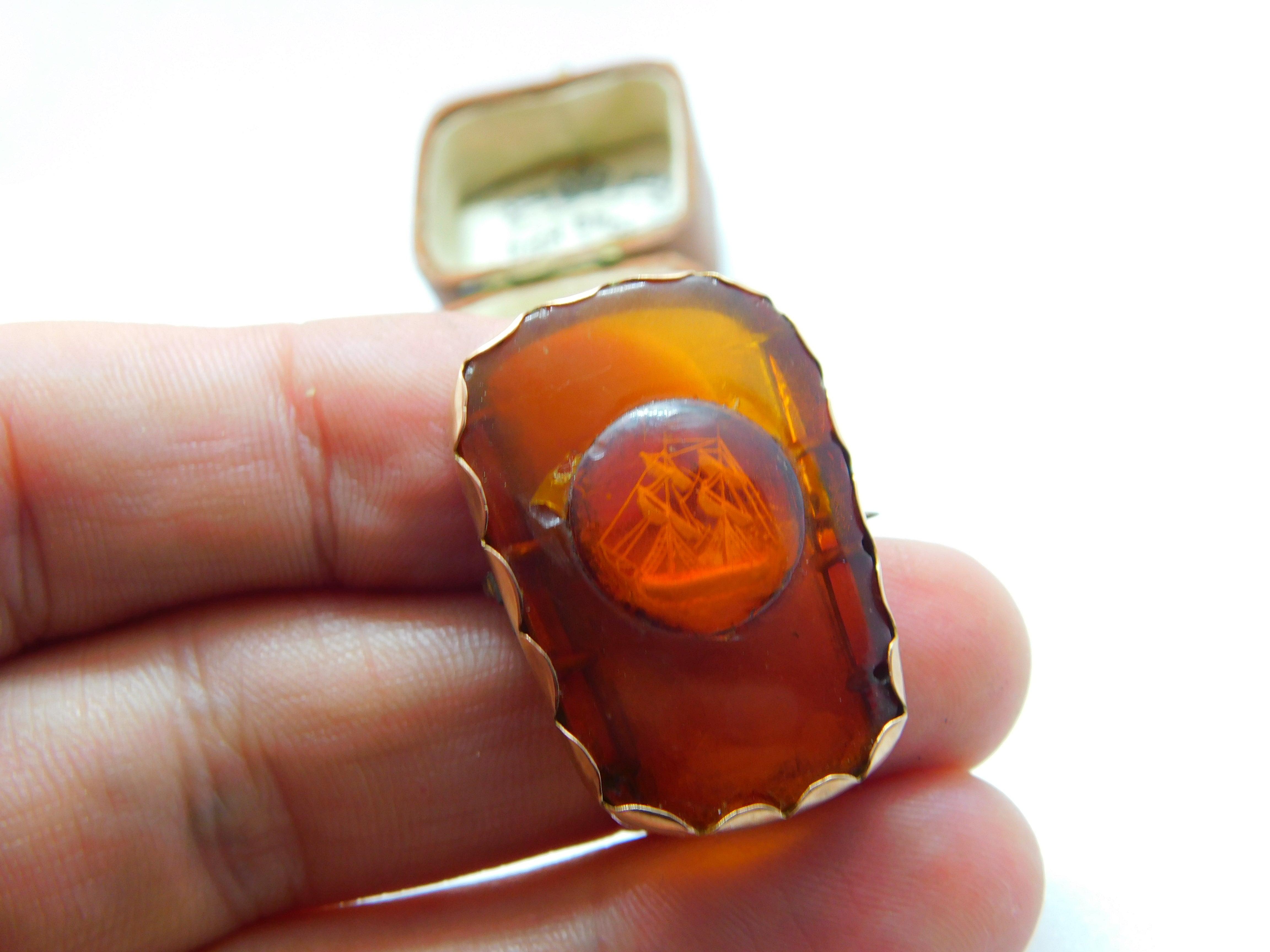 Details: A fantastic and wonderfully designed antique Edwardian 9ct rose gold mounted and reverse carved amber sailing ship brooch with lovely detailing hallmarked '9ct' to the reverse c1910. Minor chips to the amber but generally good. This is a wonderful item that would make a perfect gift or addition to any collection. The BOX pictured is for PRESENTATION ONLY and is NOT included in the listings but used to frame the pictures unless specifically stated otherwise.