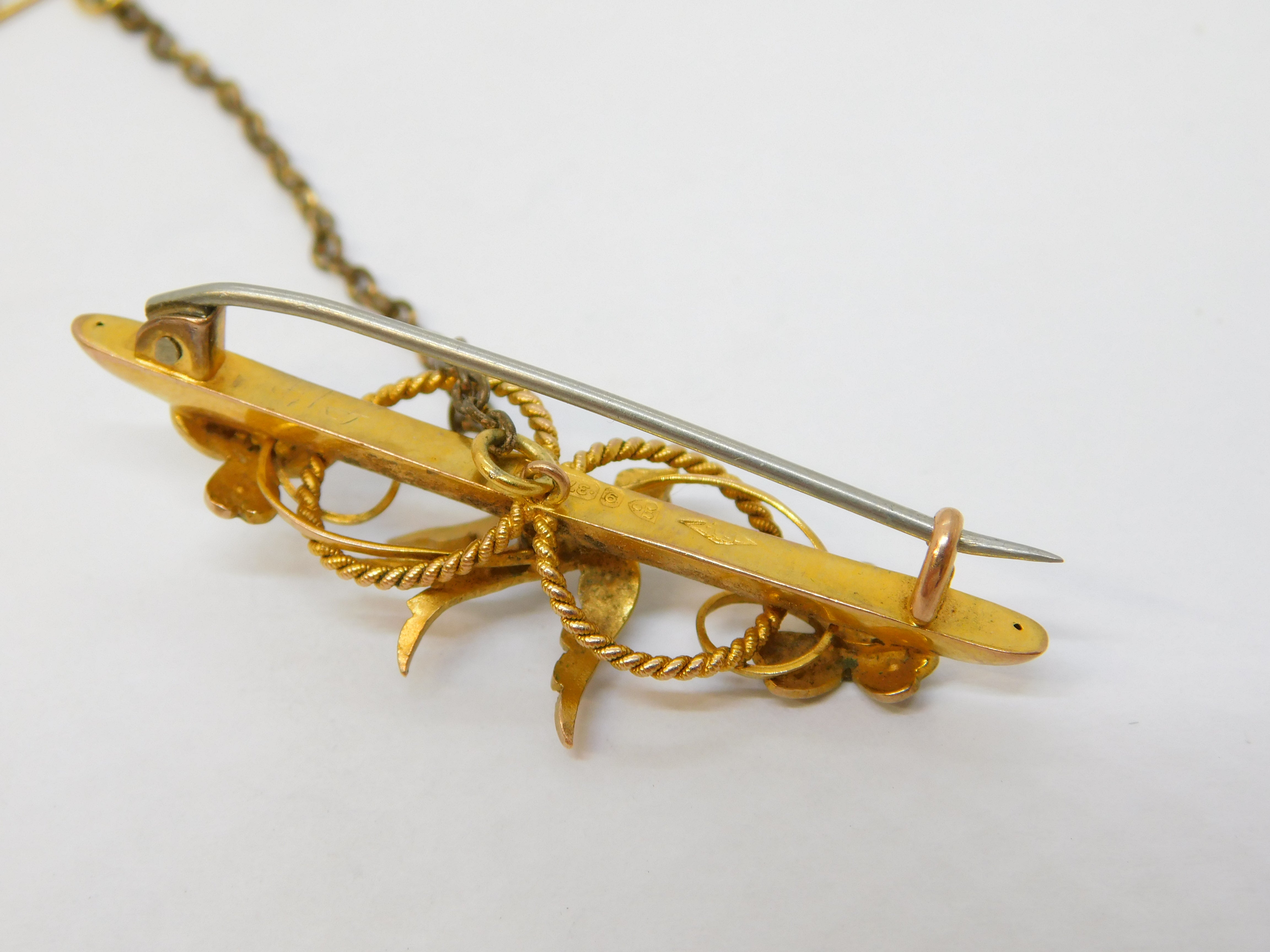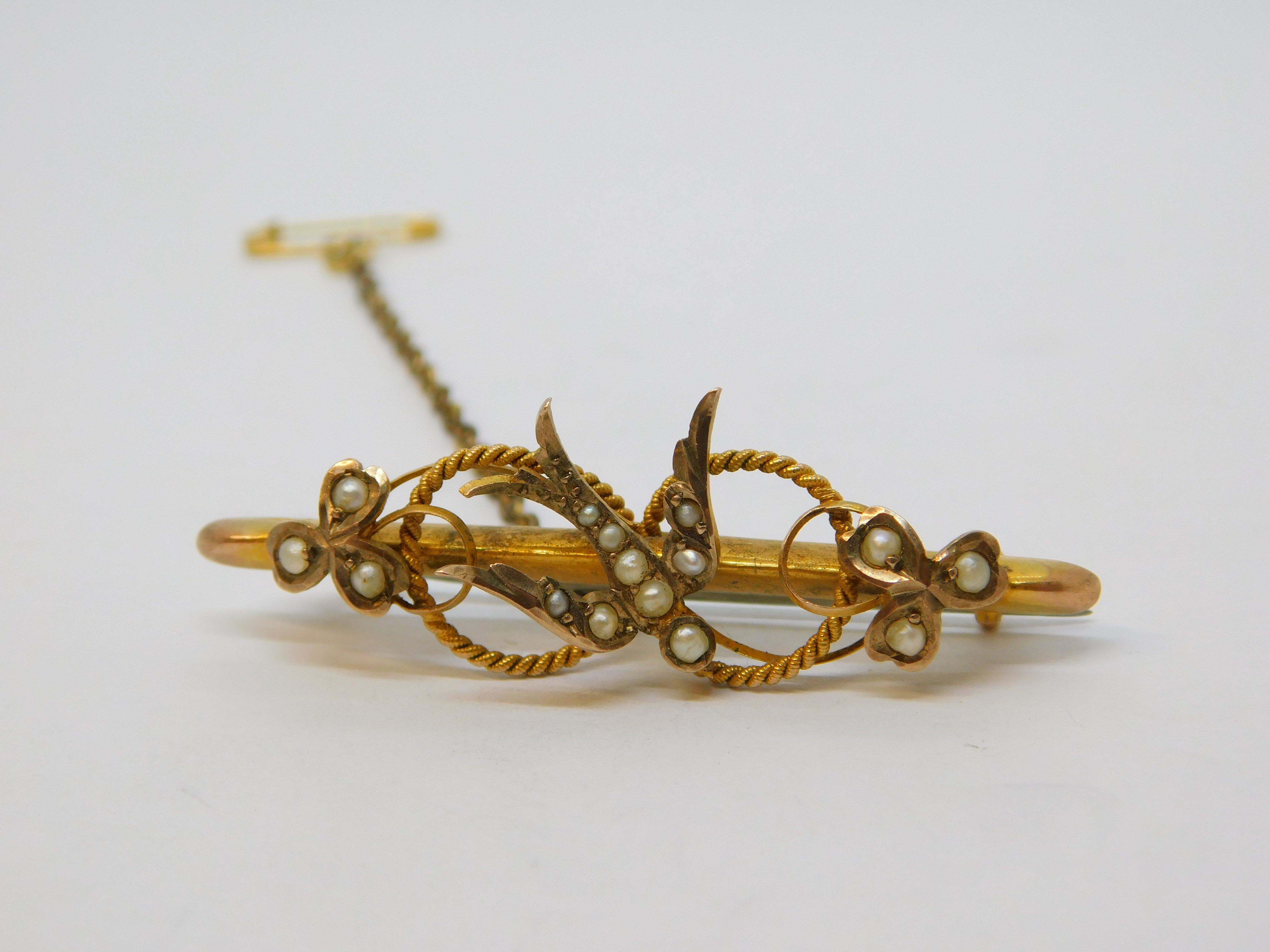 Details: A fantastic and wonderfully designed antique Edwardian 9ct yellow gold swallow sweetheart brooch set with seed pearls hallmarked Chester 1908 to the reverse. This is a wonderful item that would make a perfect gift or addition to any collection.
