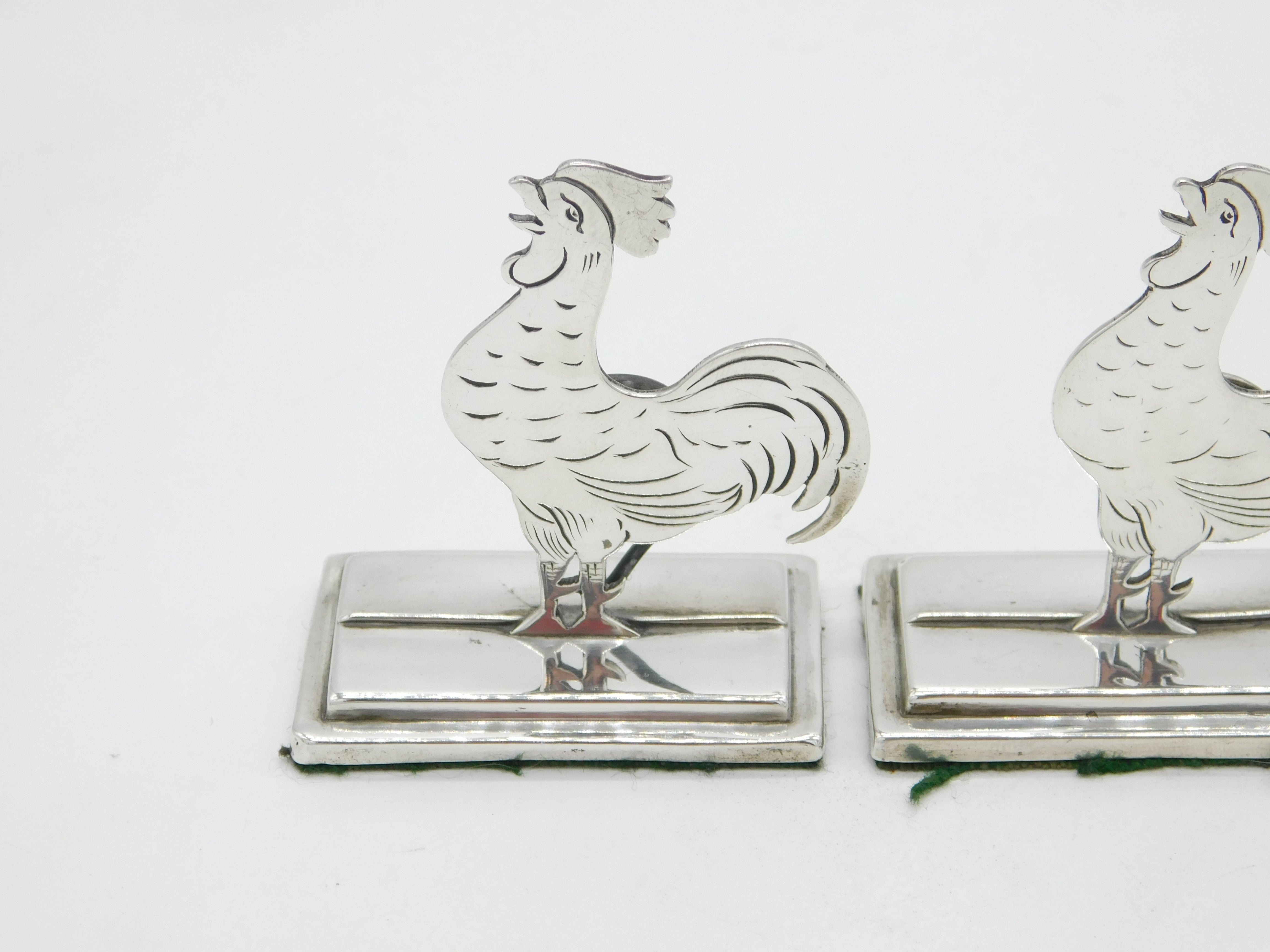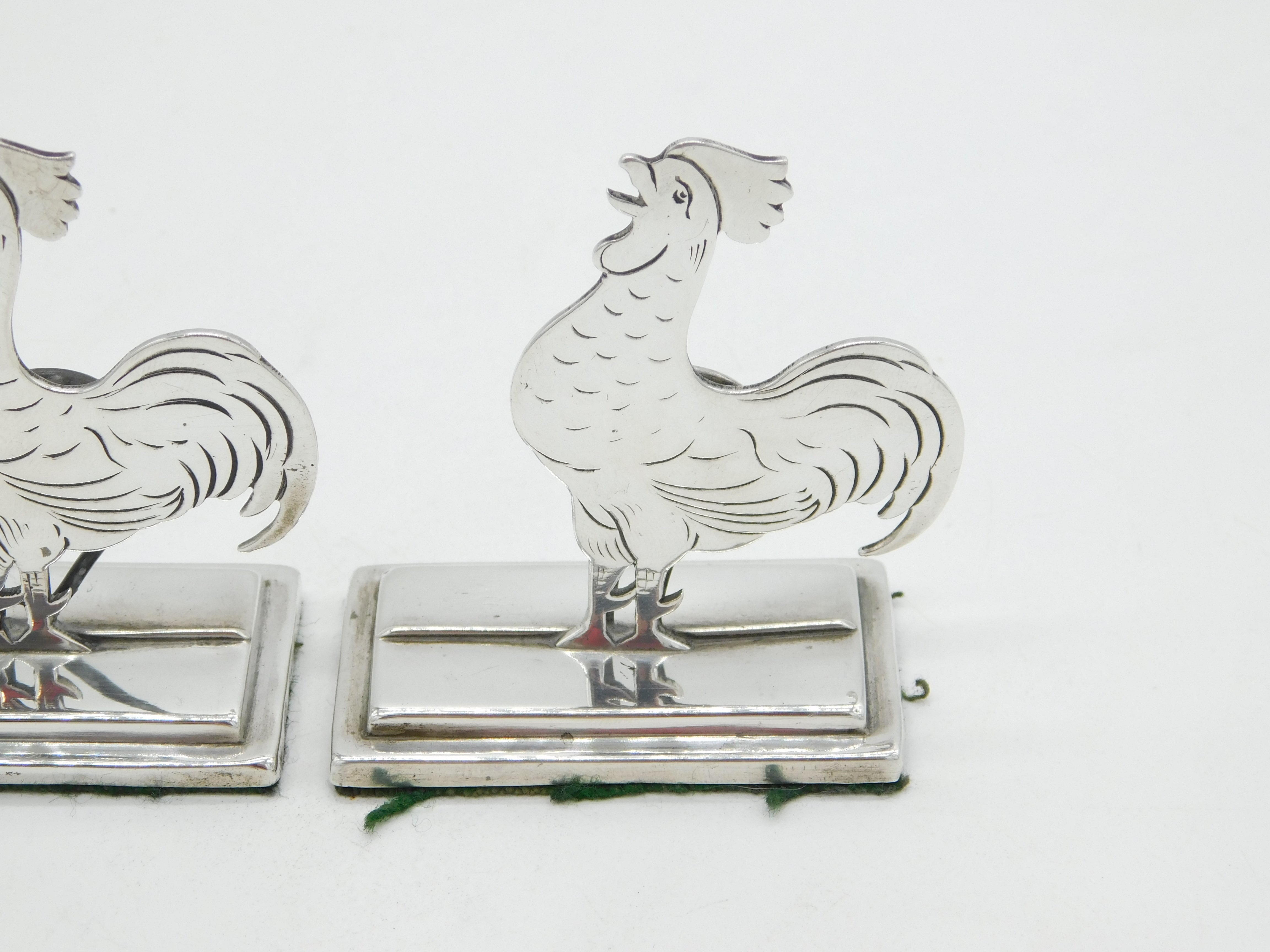 Edwardian Pair of Sterling Silver Cockerel Chicken Place Settings Antique 1910 Birmingham