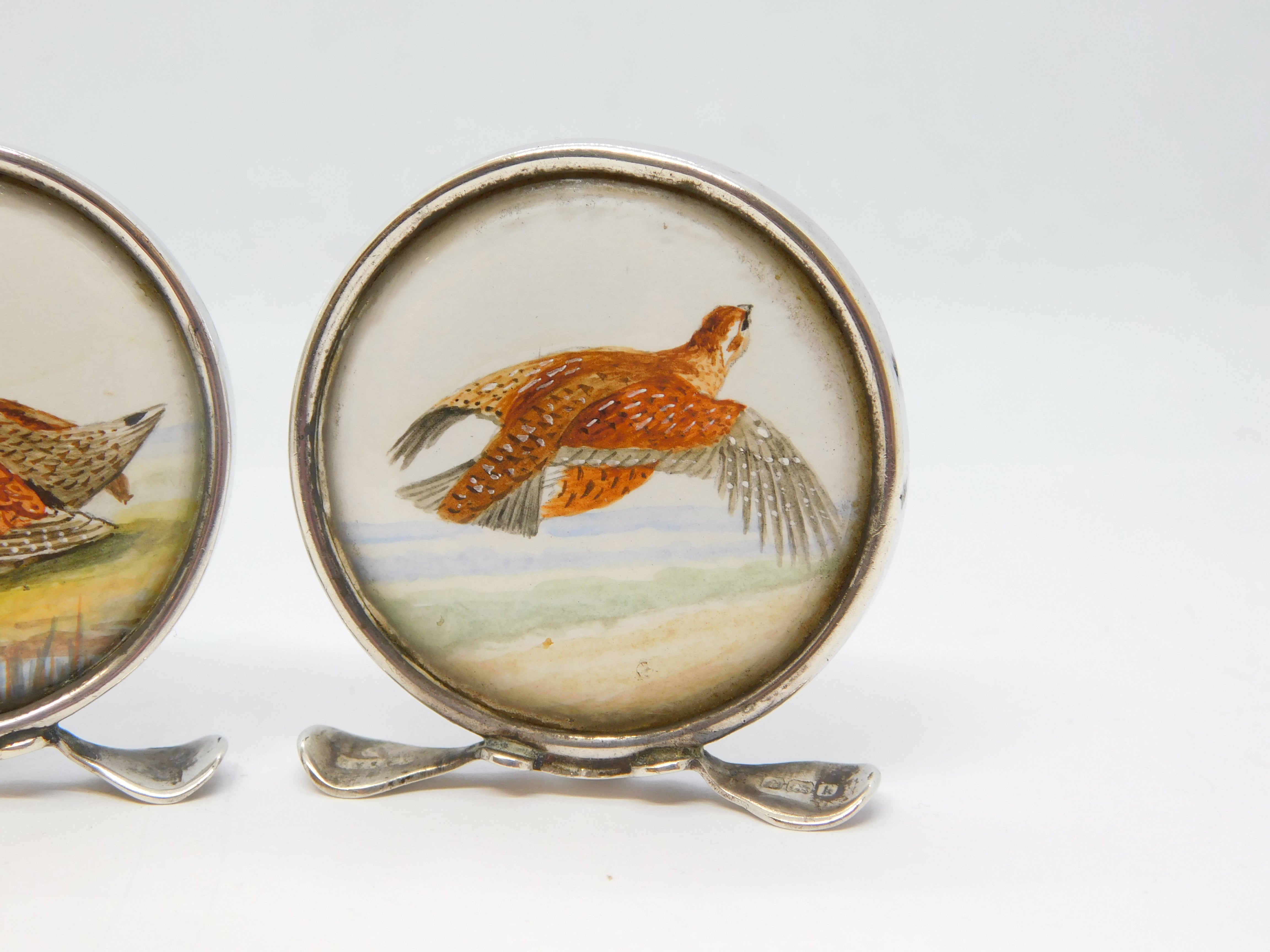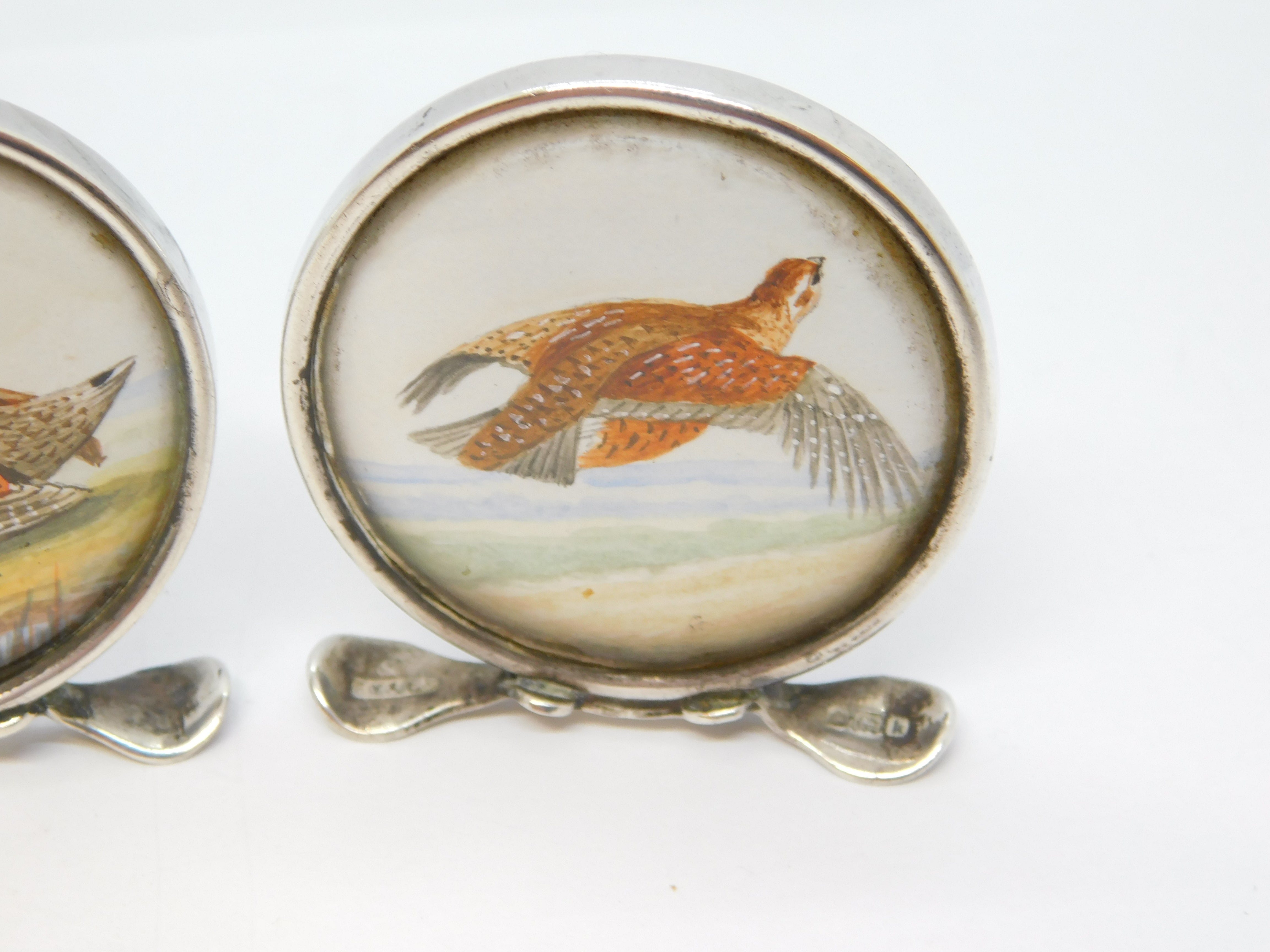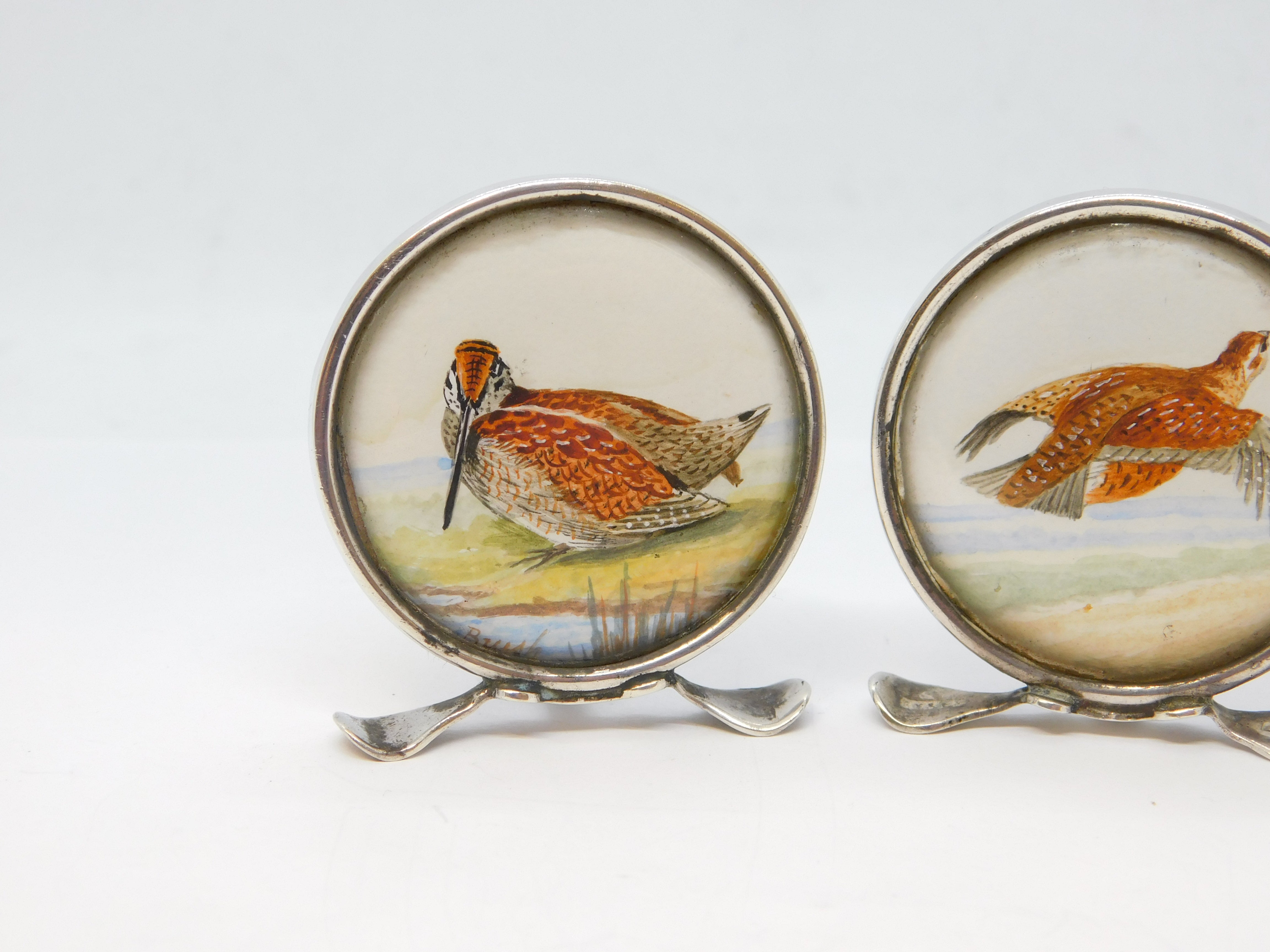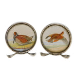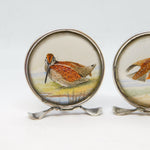 Edwardian Pair of Sterling Silver Grouse & Snipe Watercolour Place Settings Antique 1909 Chester