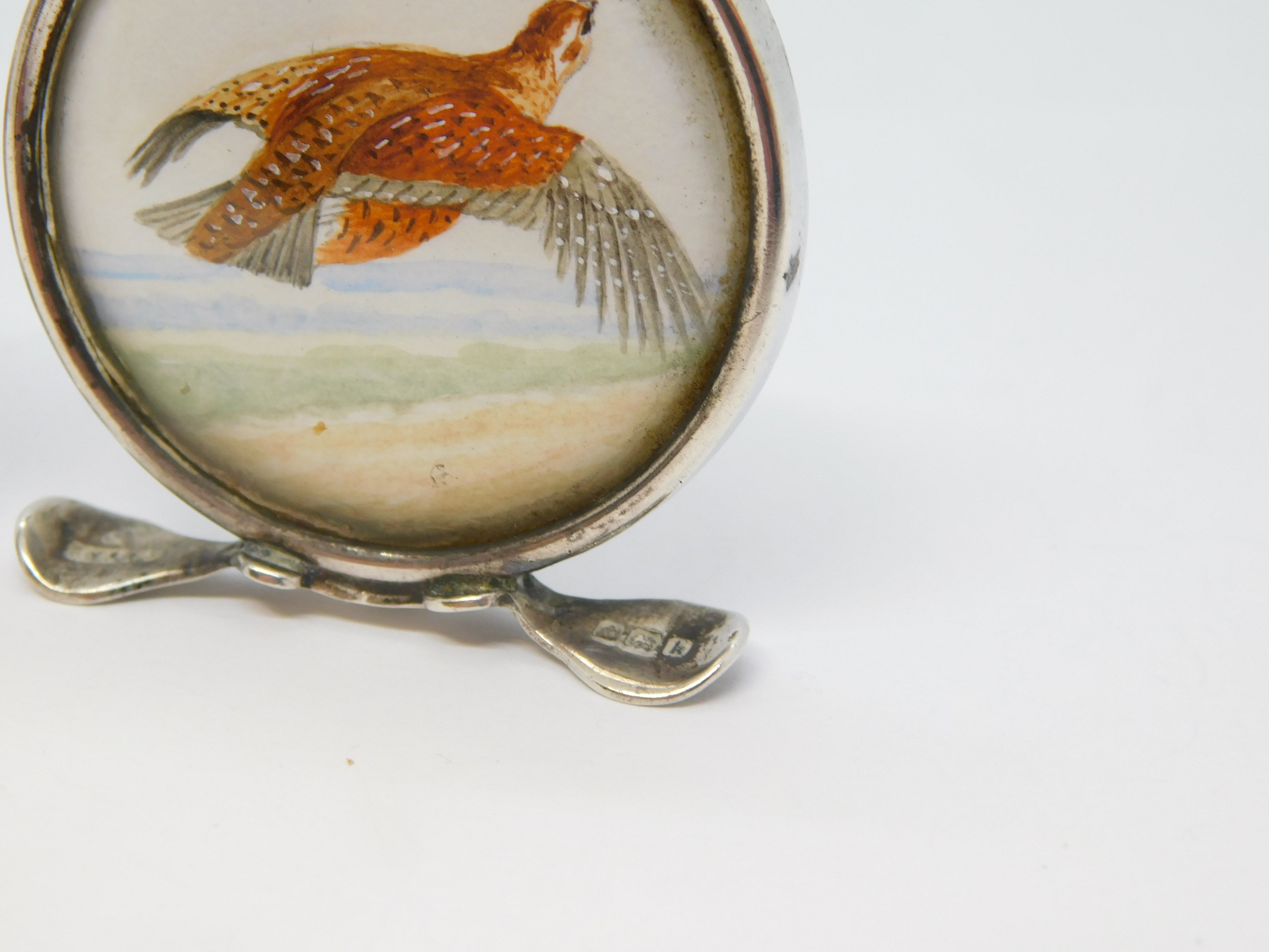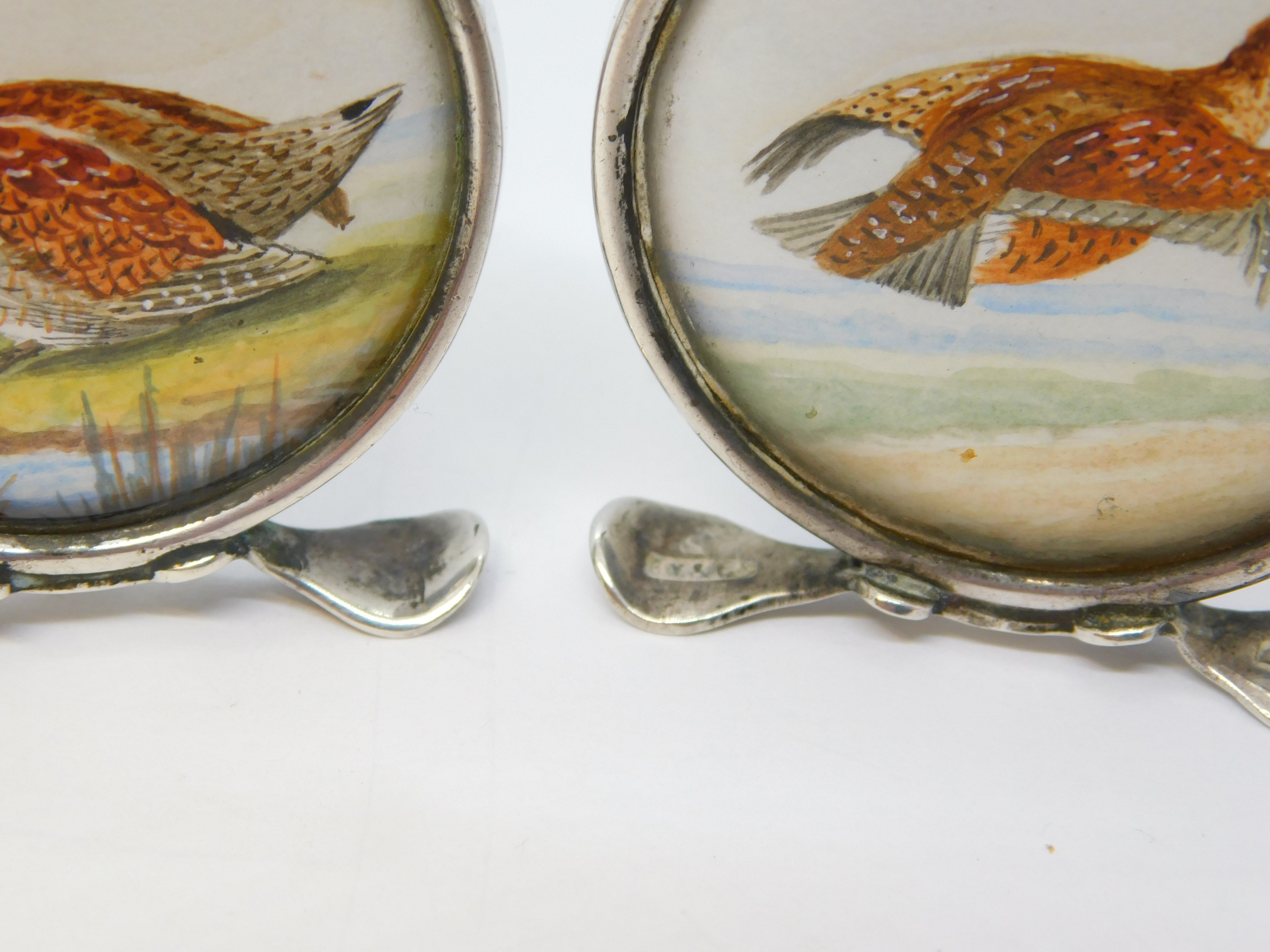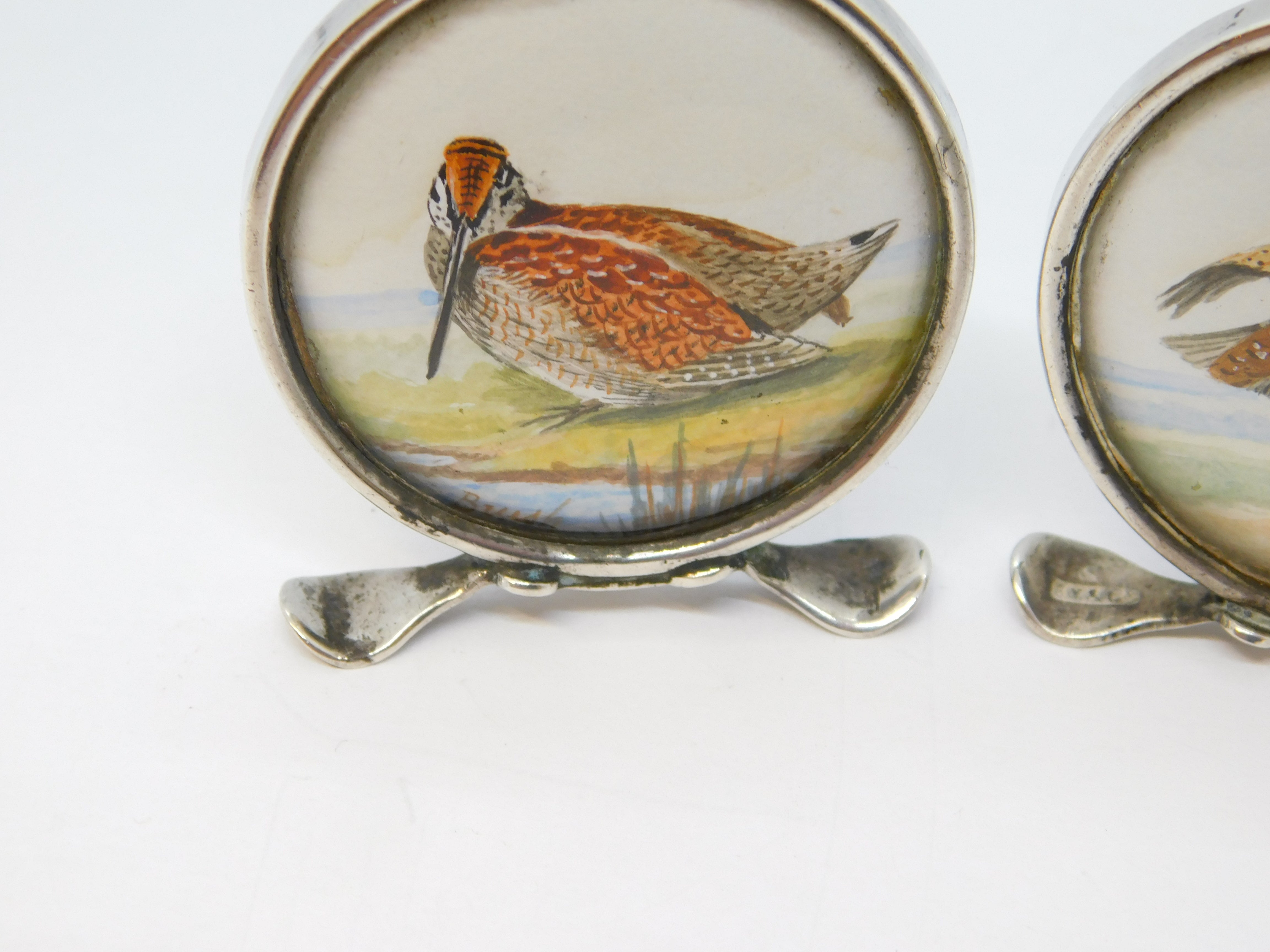 Edwardian Pair of Sterling Silver Grouse & Snipe Watercolour Place Settings Antique 1909 Chester