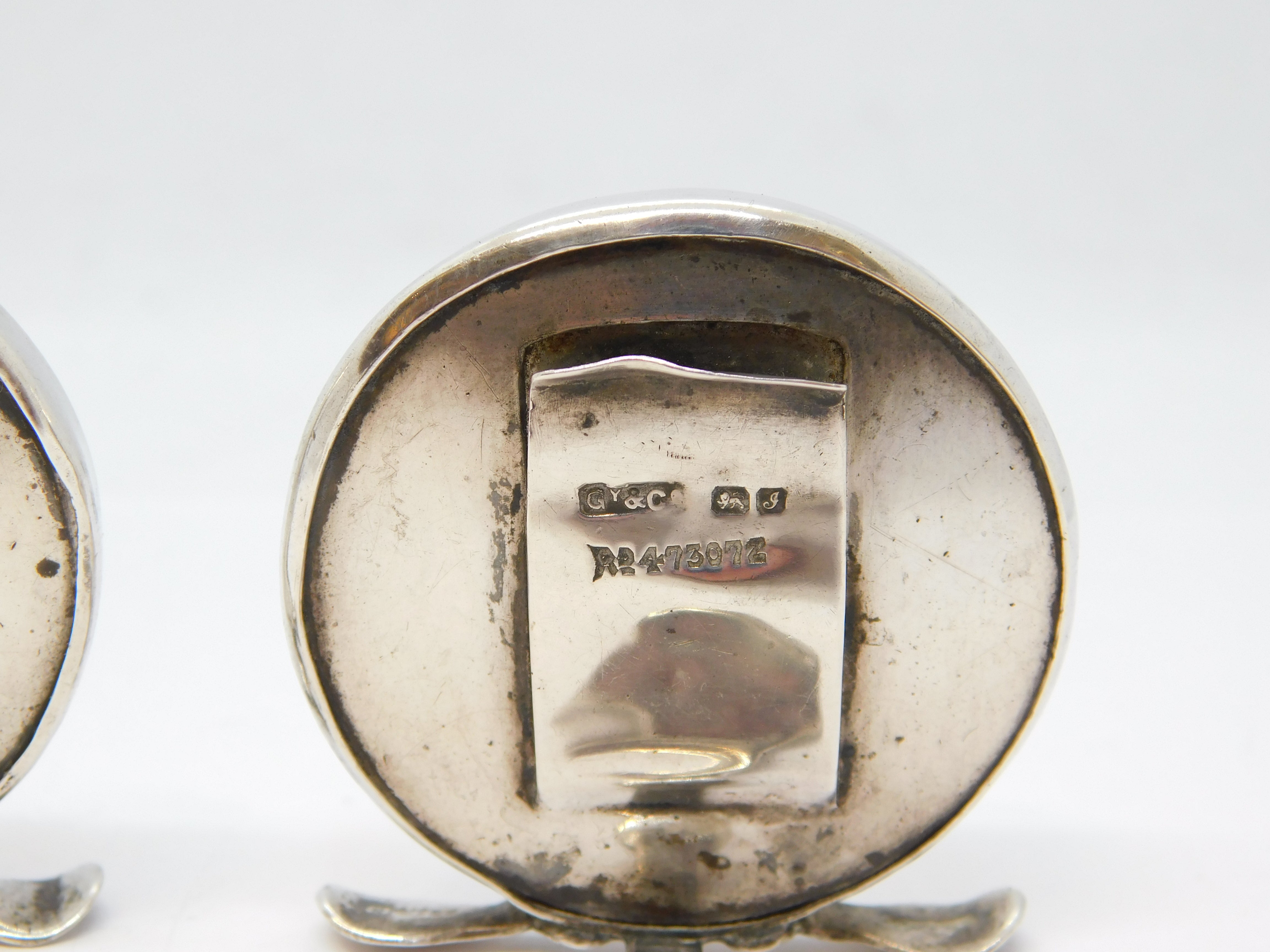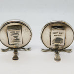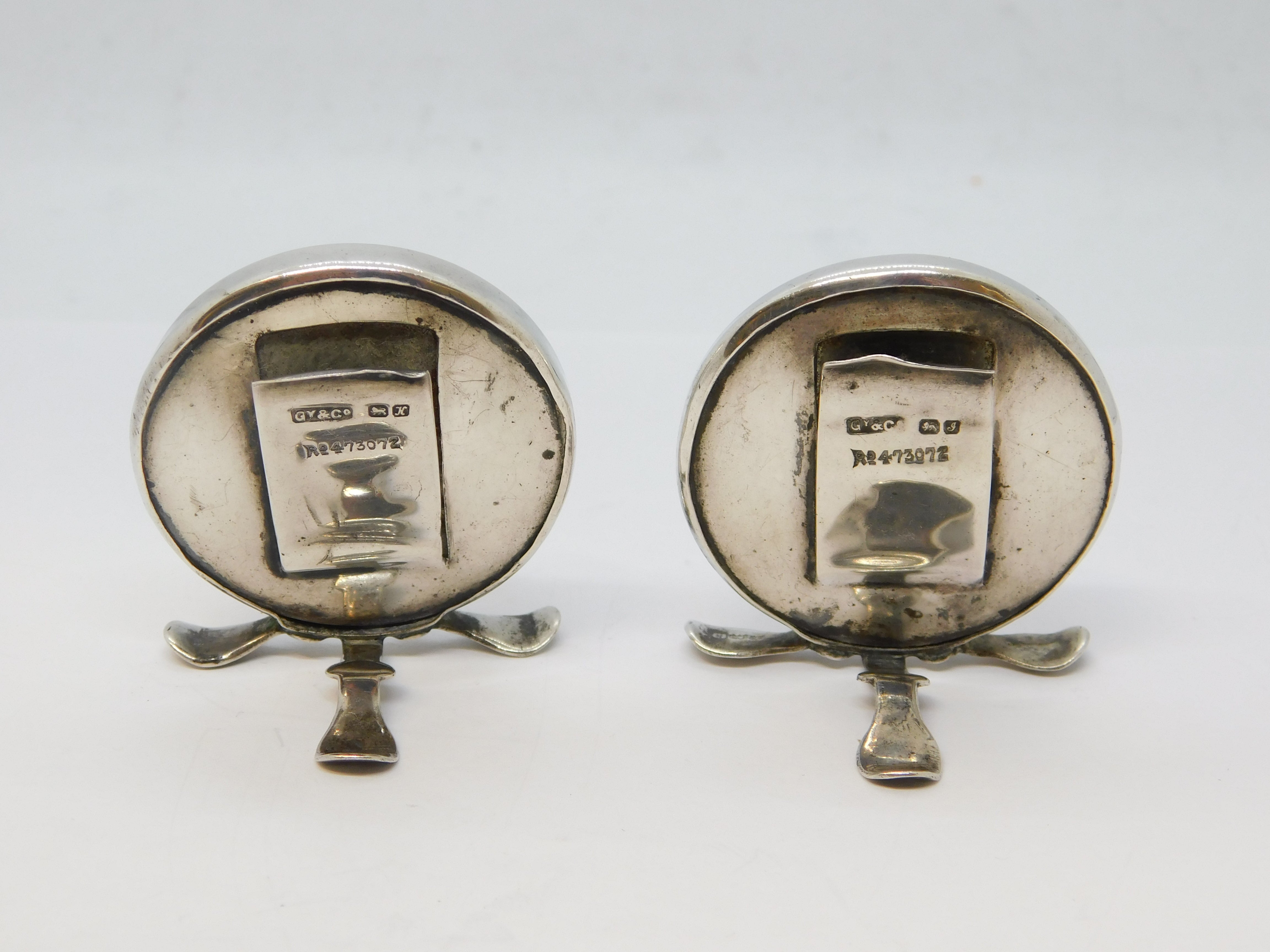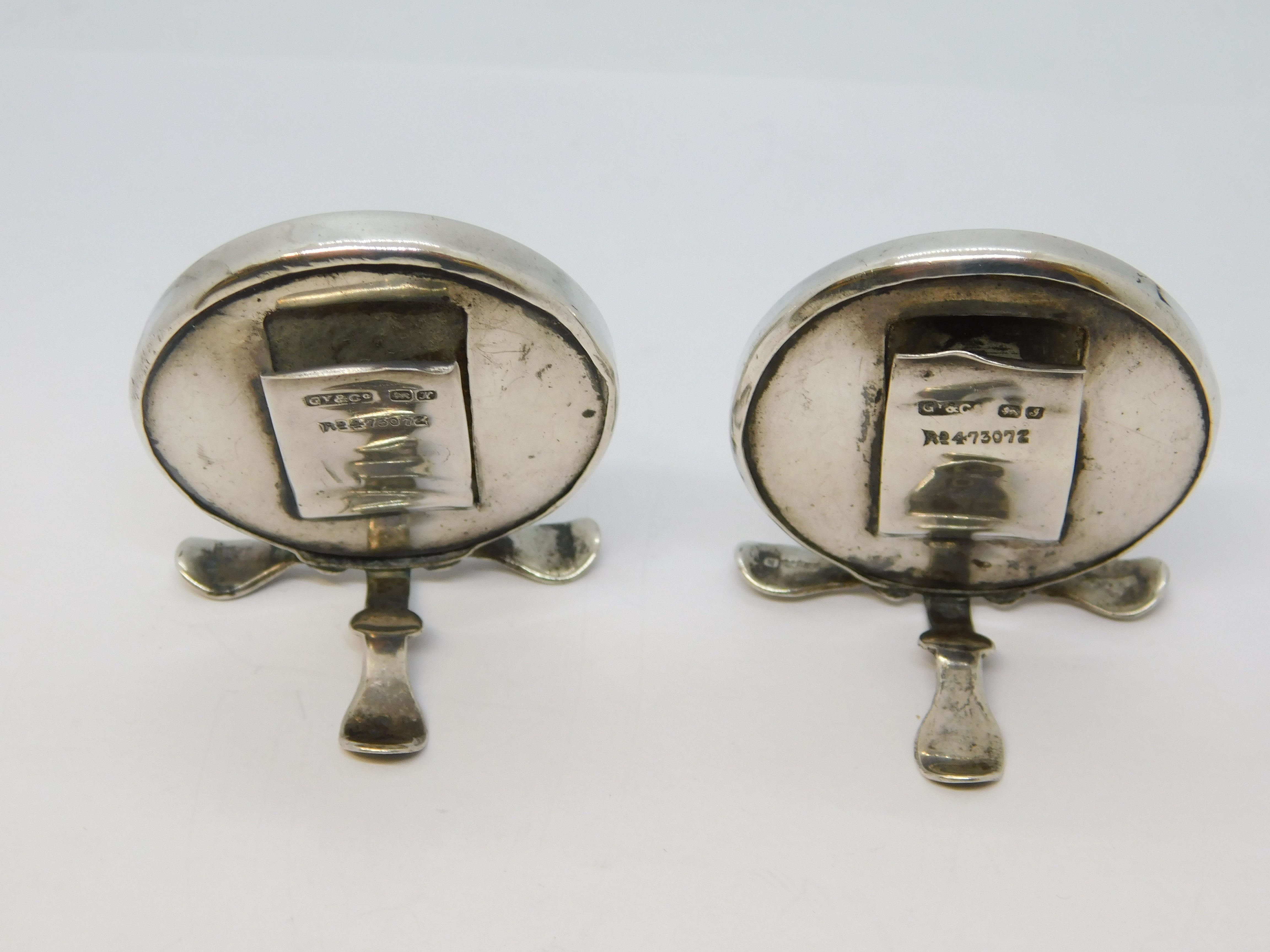 Details: A fantastic and wonderfully designed pair of antique Edwardian sterling silver menu holders or place settings set with charming hand painted watercolour pictures, one depicting a red grouse and the other a snipe, hallmarked Chester 1909 & 1910 by Grey & Co. This is a wonderful item that would make a perfect gift or addition to any collection.