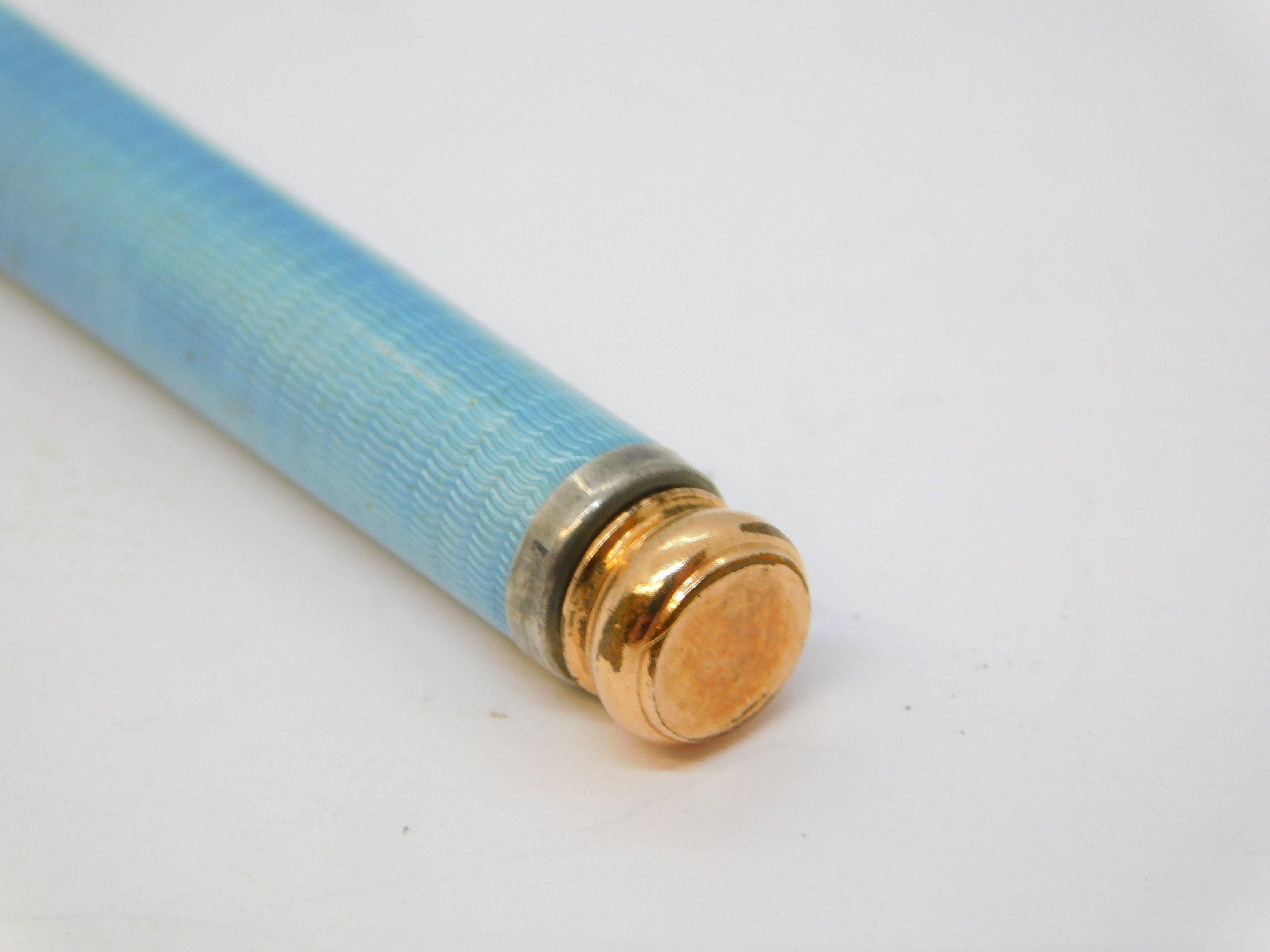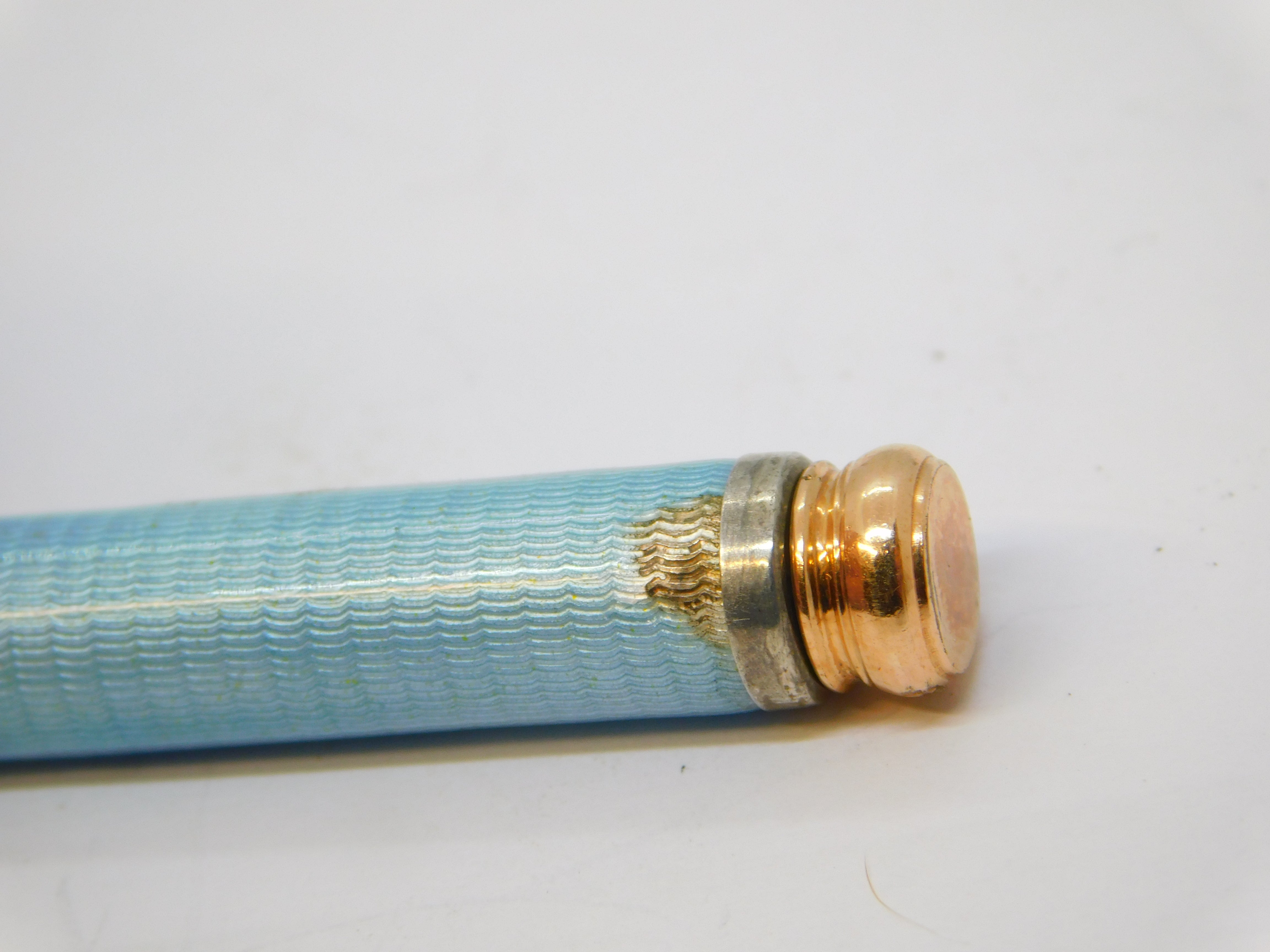 Edwardian Rolled Gold Blue Guilloche Enamel Pencil Holder Fob Antique c1910