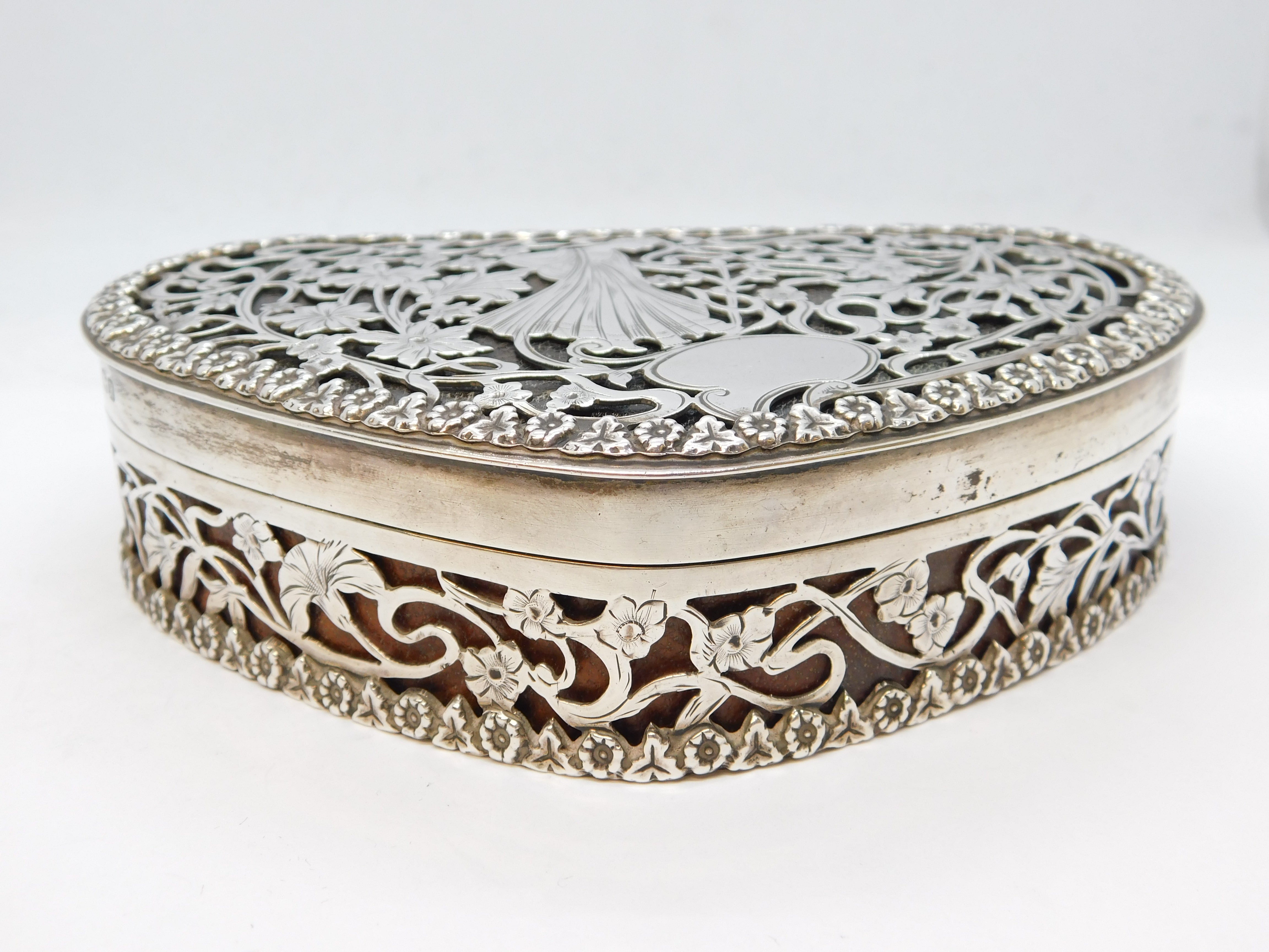 Edwardian Sterling Silver Art Nouveau Floral Jewellery Box Antique 1910 Chester