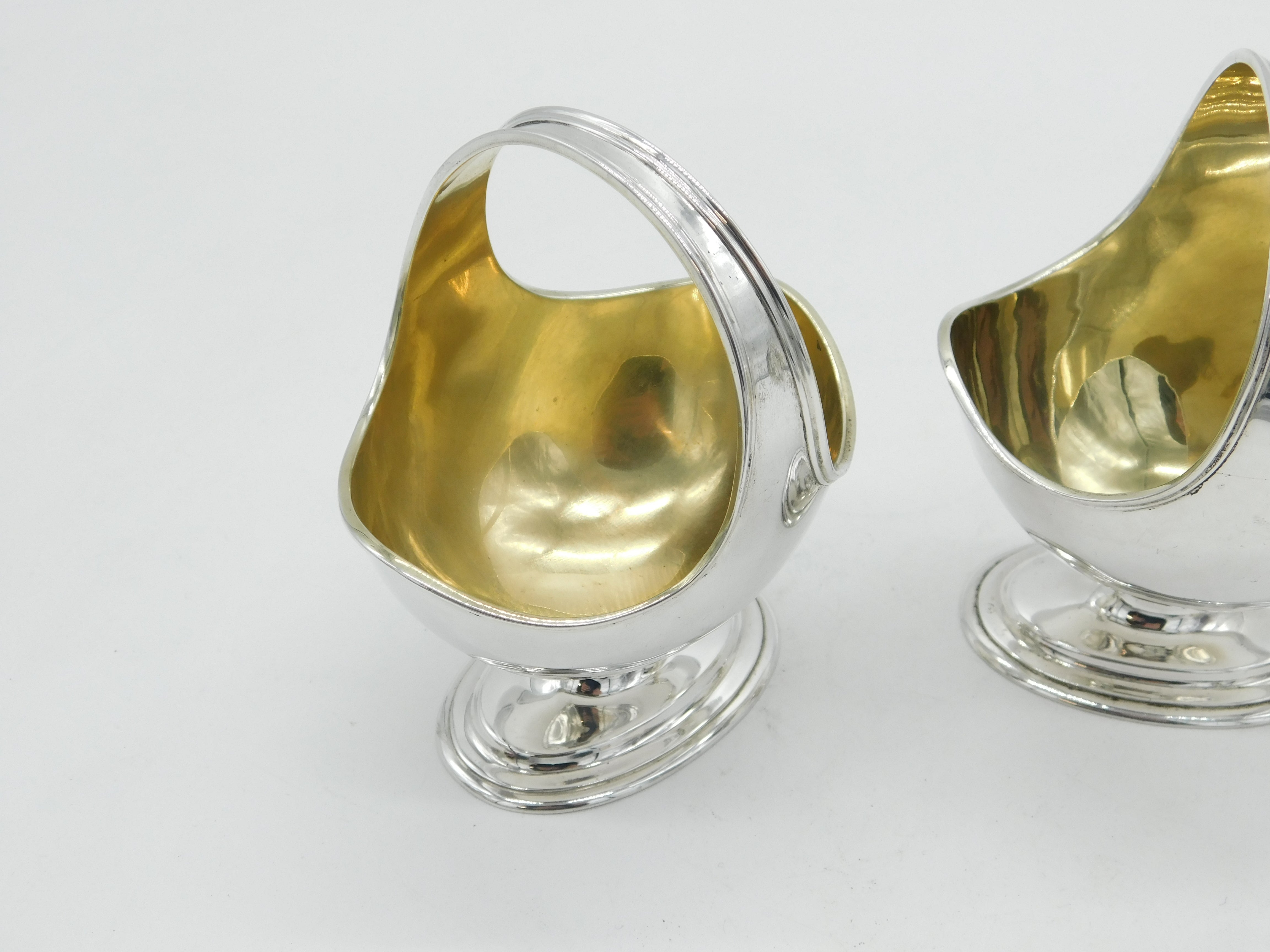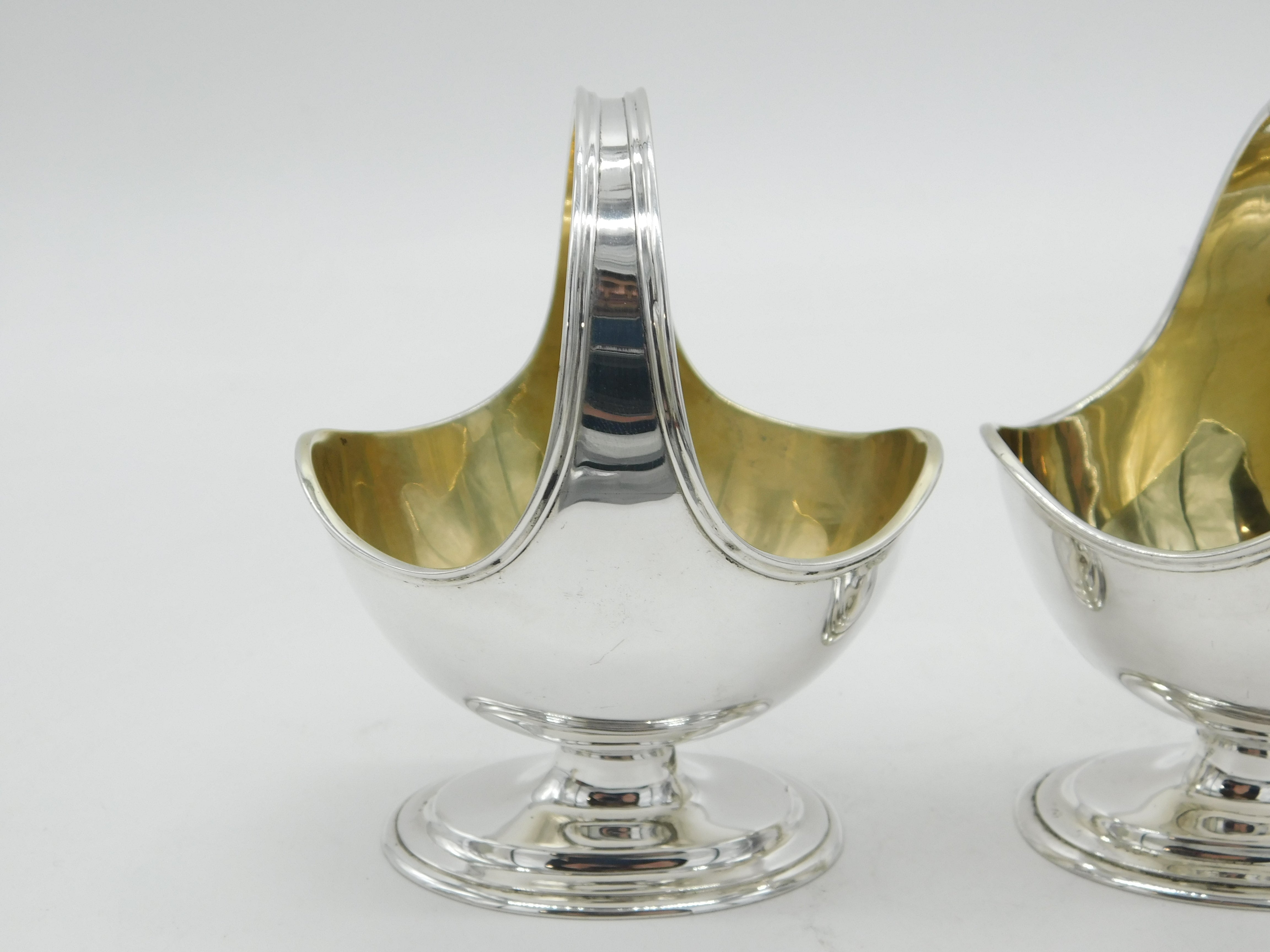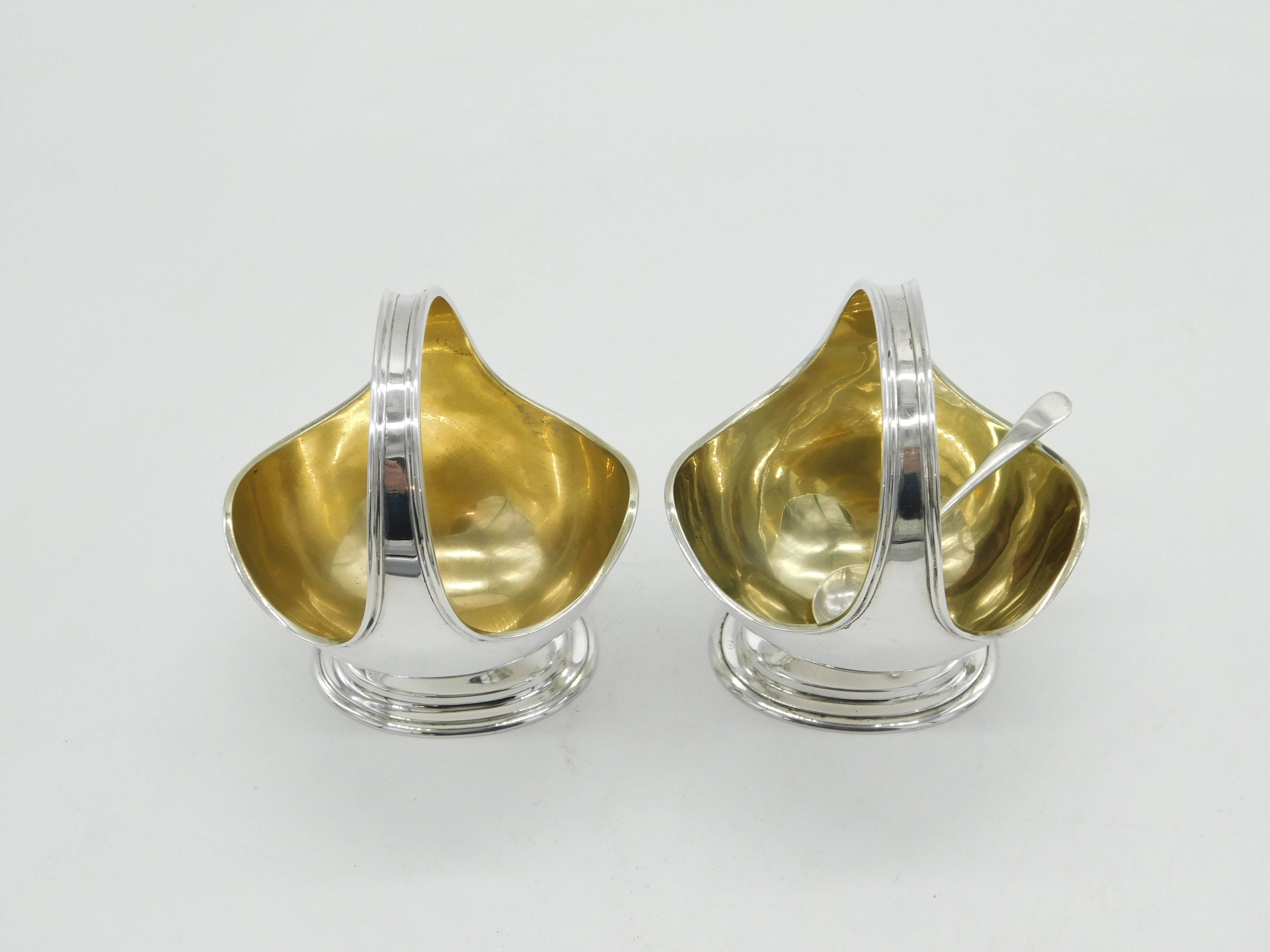 Details: A fantastic and wonderfully designed antique Edwardian sterling silver pair of basket form salt cellars with gilded interiors hallmarked London 1905. This is a wonderful item that would make a perfect gift or addition to any collection.