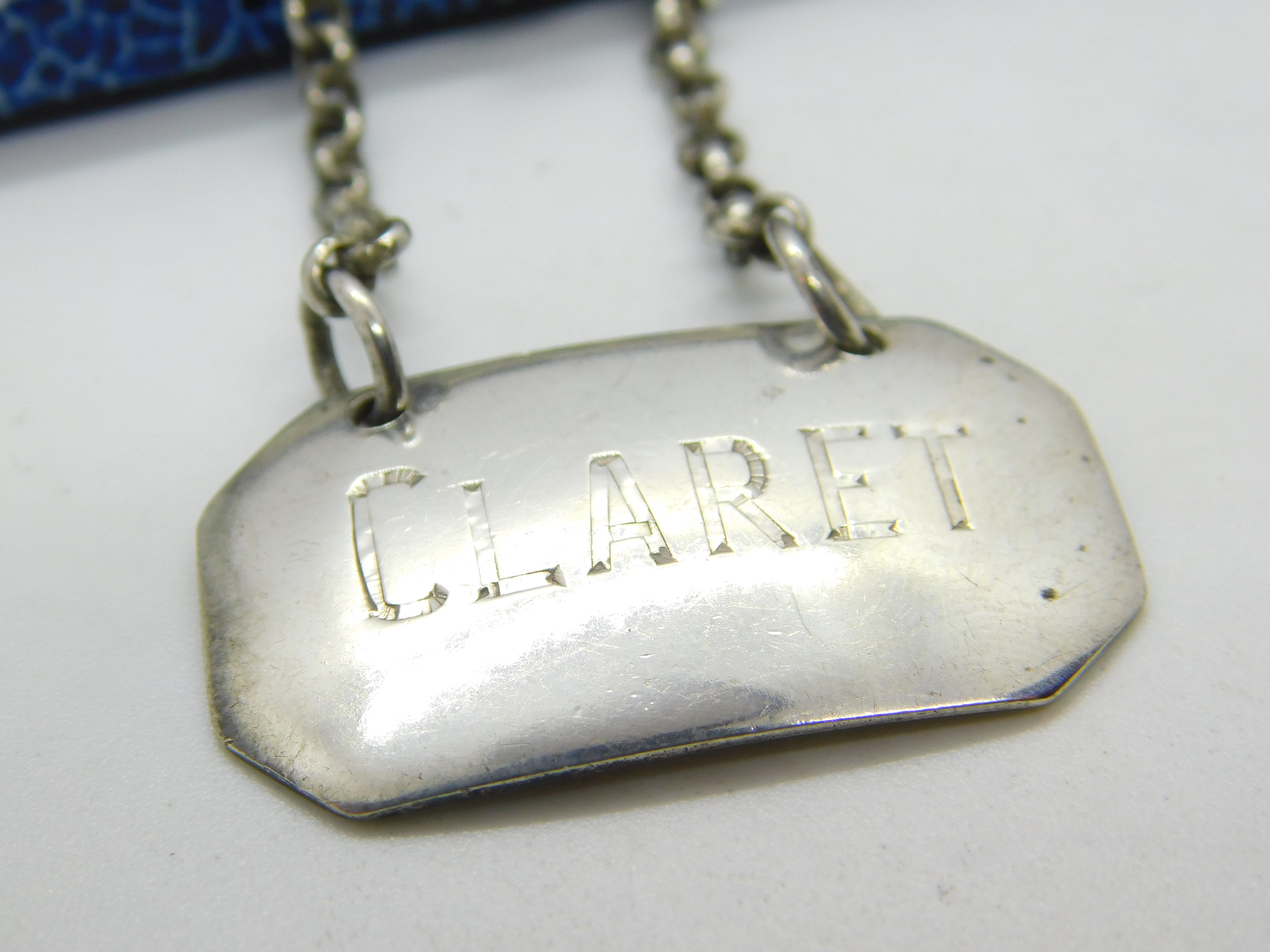 Details: A fantastic and wonderfully designed antique Edwardian sterling silver claret wine decanter label with lovely bright cut lettering hallmarked Birmingham 1904 by George Unite. This is a wonderful item that would make a perfect gift or addition to any collection. The BOX pictured is for PRESENTATION ONLY and is NOT included in the listings but used to frame the pictures unless specifically stated otherwise.