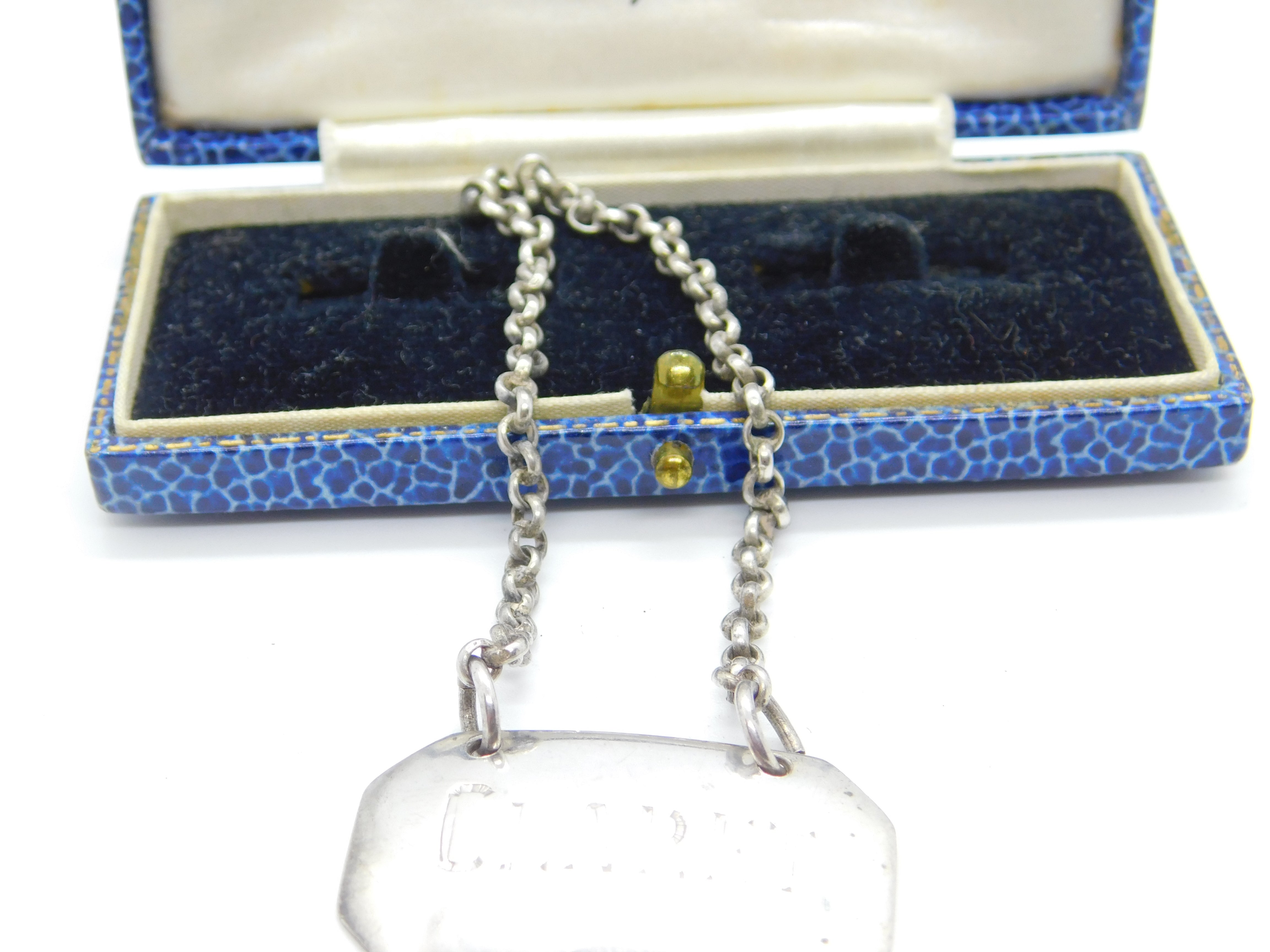 Edwardian Sterling Silver Claret Decanter Label Antique 1904 Birmingham
