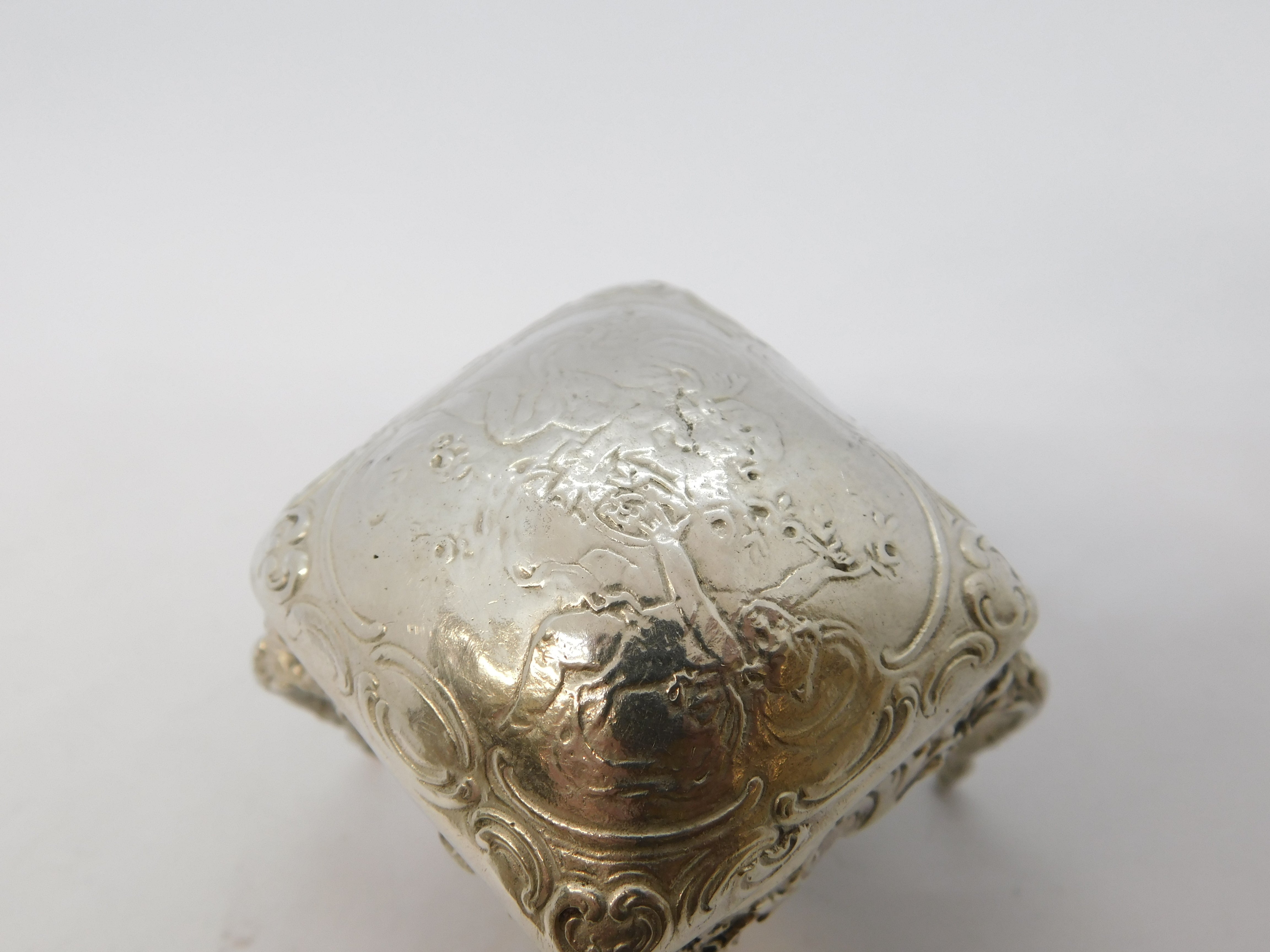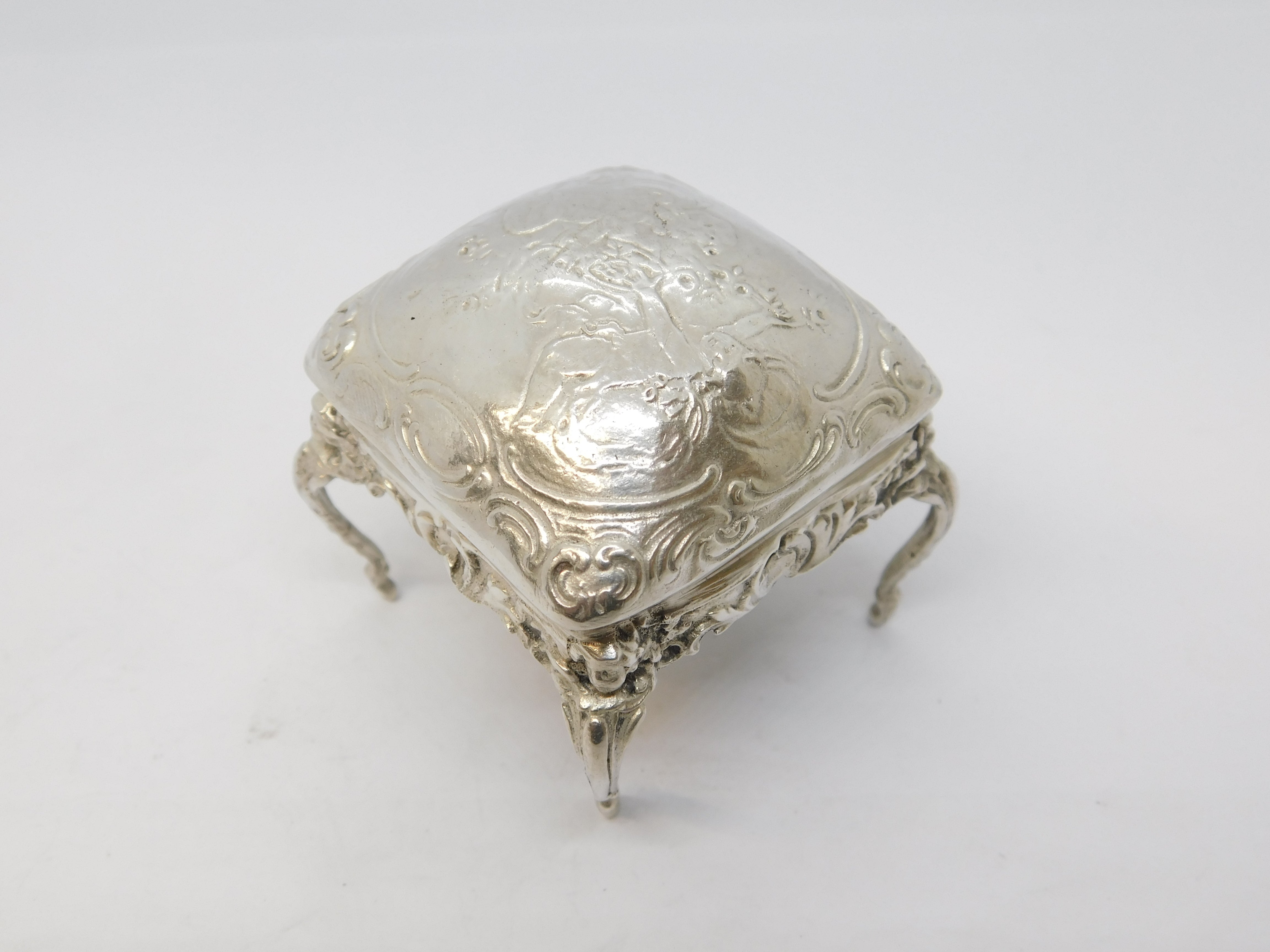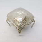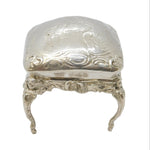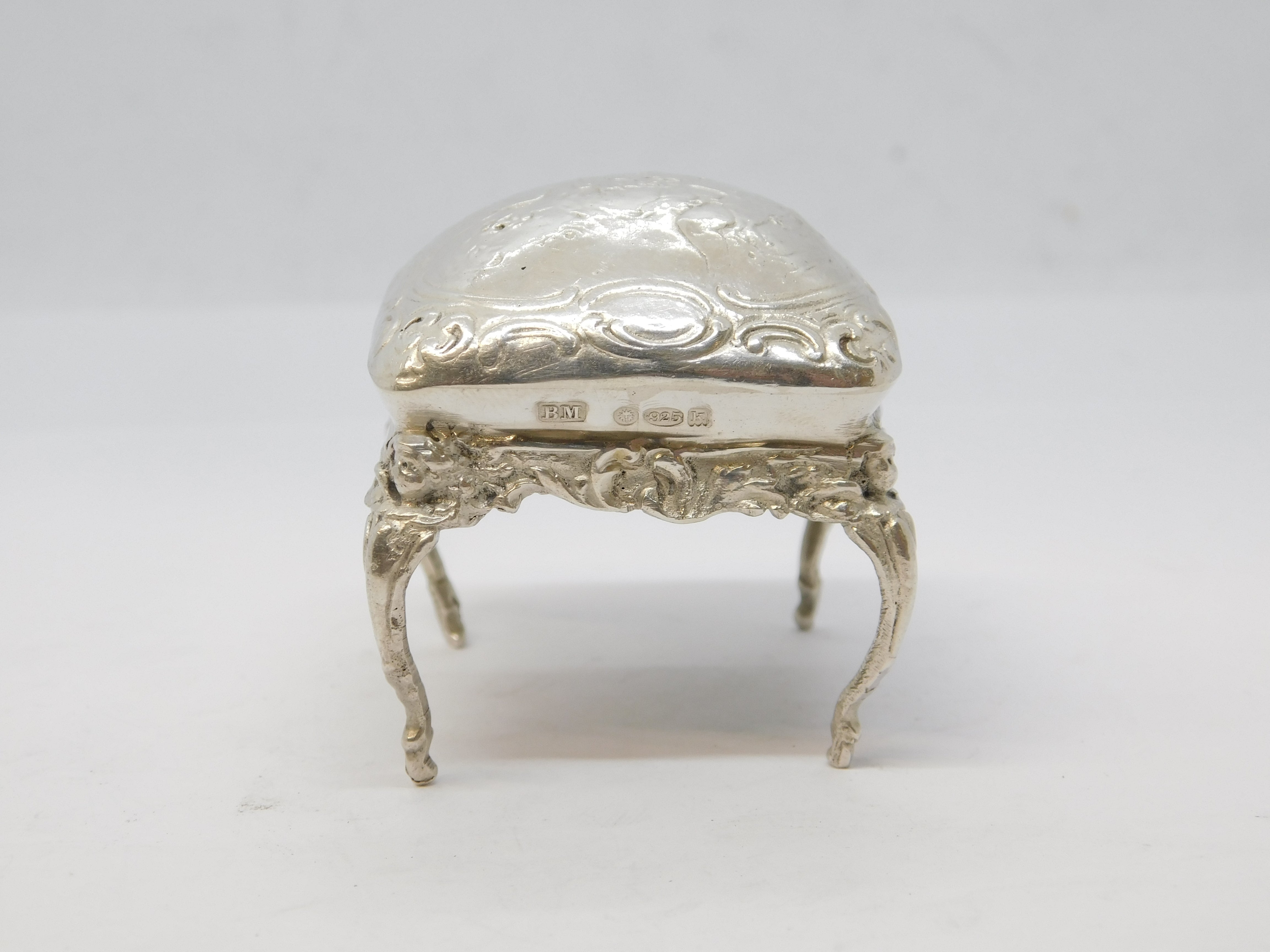 Details: A fantastic and wonderfully designed antique Edwardian sterling silver miniature dolls house stool ornament with lovely cherub design to the top hallmarked London 1909 by Berthold Muller. This is a wonderful item that would make a perfect gift or addition to any collection.