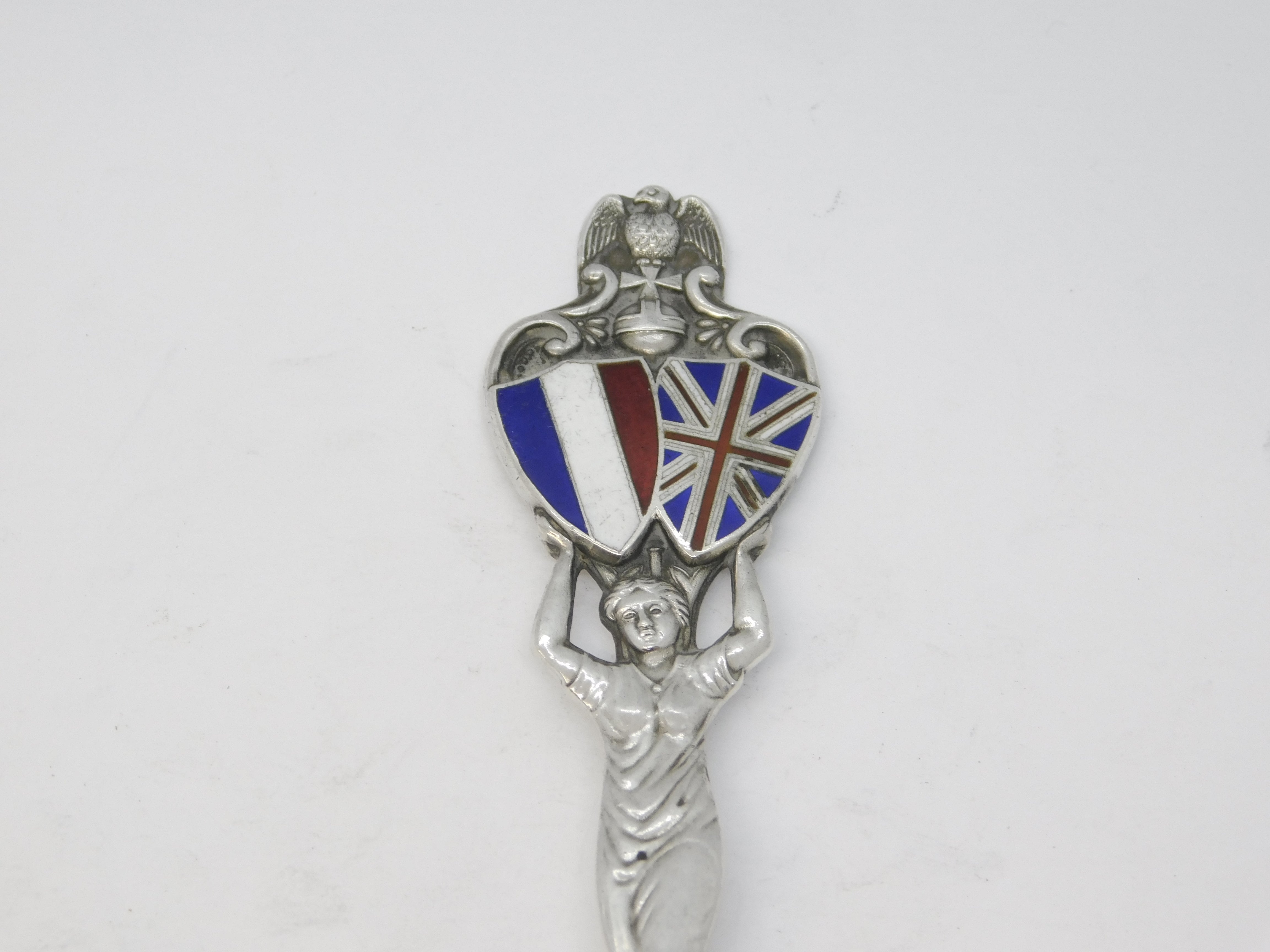 Edwardian Sterling Silver Enamel 'Entente Cordiale' Spoon Antique 1907 Chester
