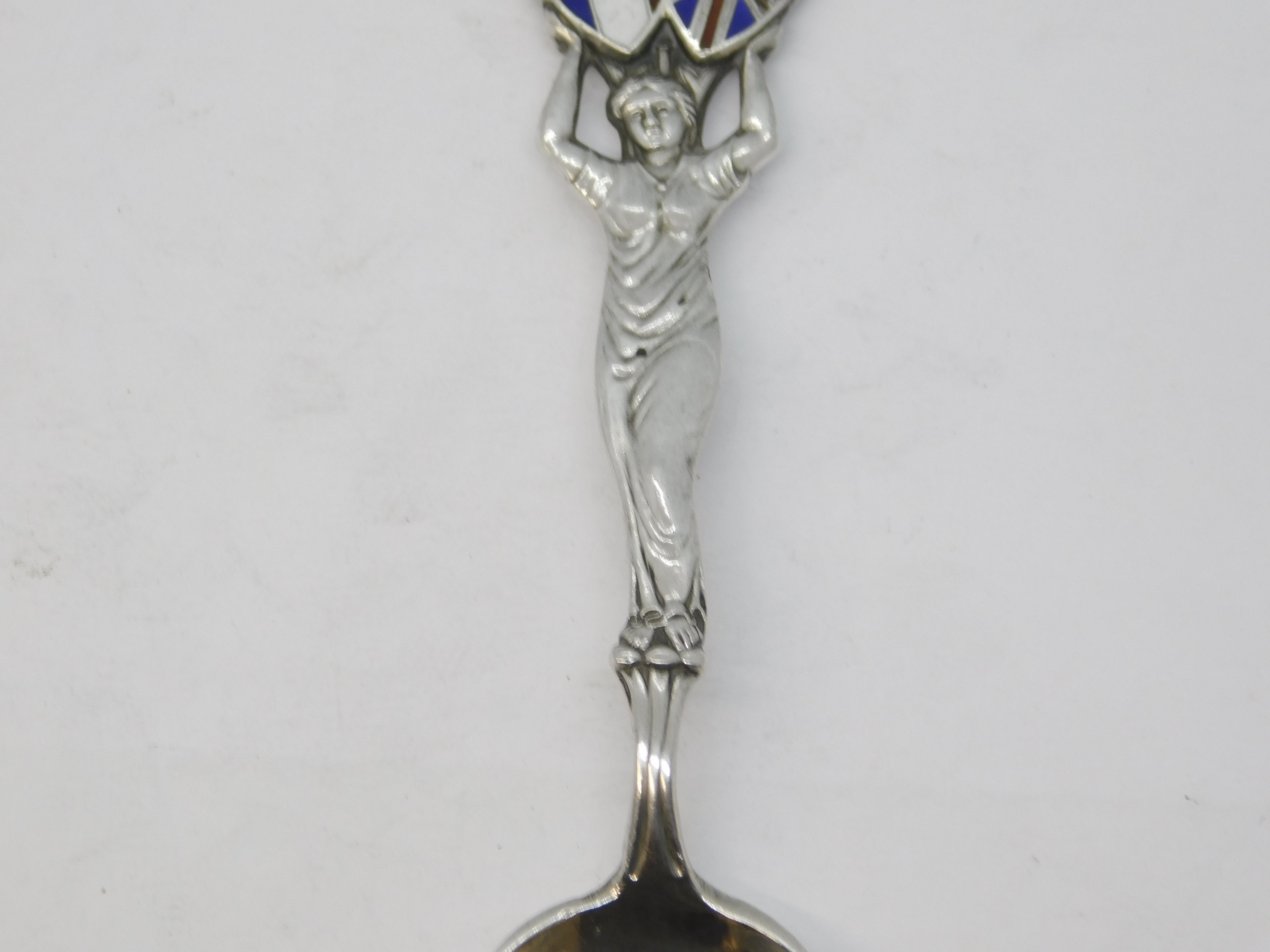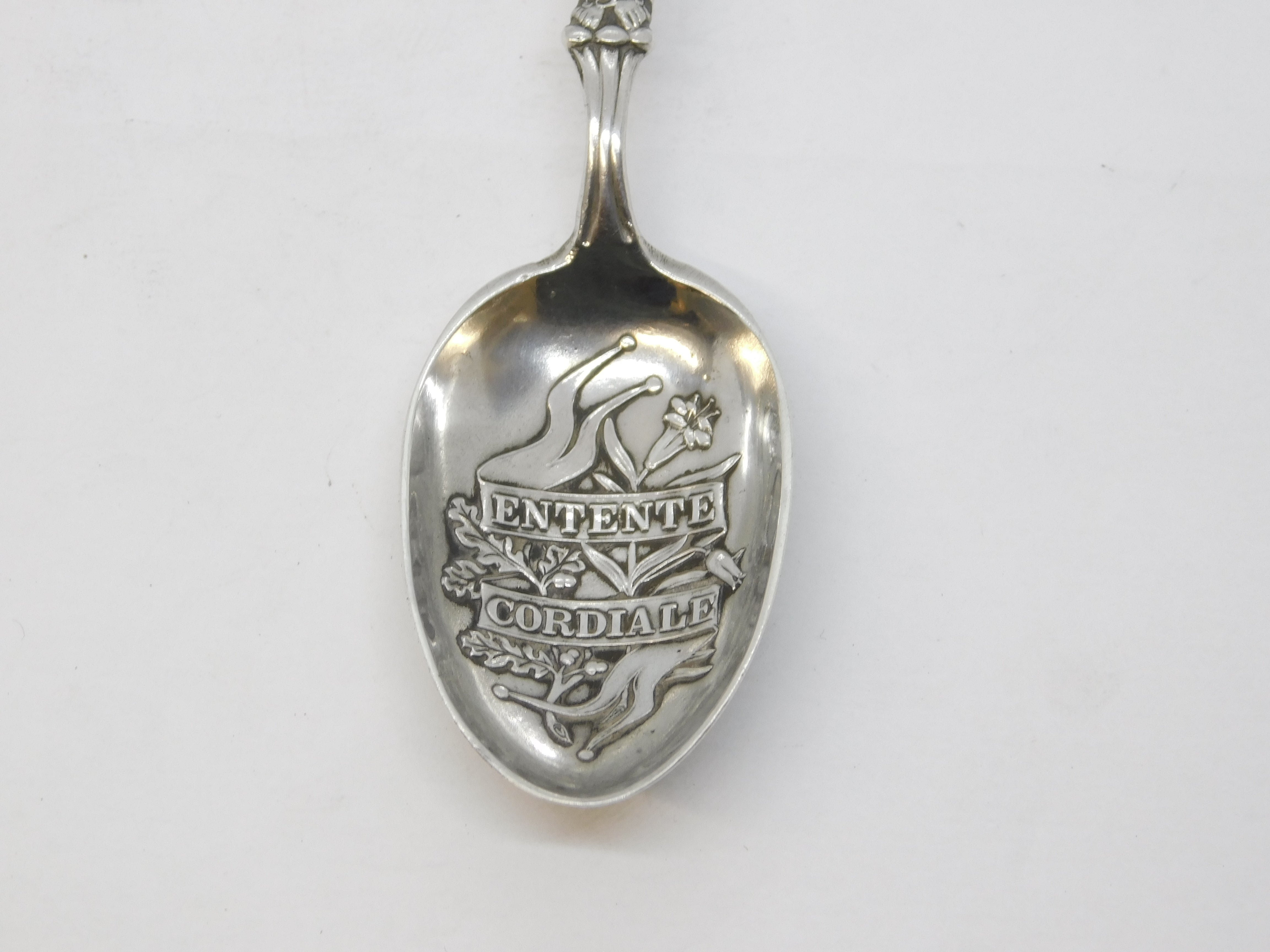 Details: A fantastic and wonderfully designed antique Edwardian sterling silver & enamel British French relations Entente Cordiale spoon with lovely detail hallmarked Chester 1907 to the reverse. This is a wonderful item that would make a perfect gift or addition to any collection.