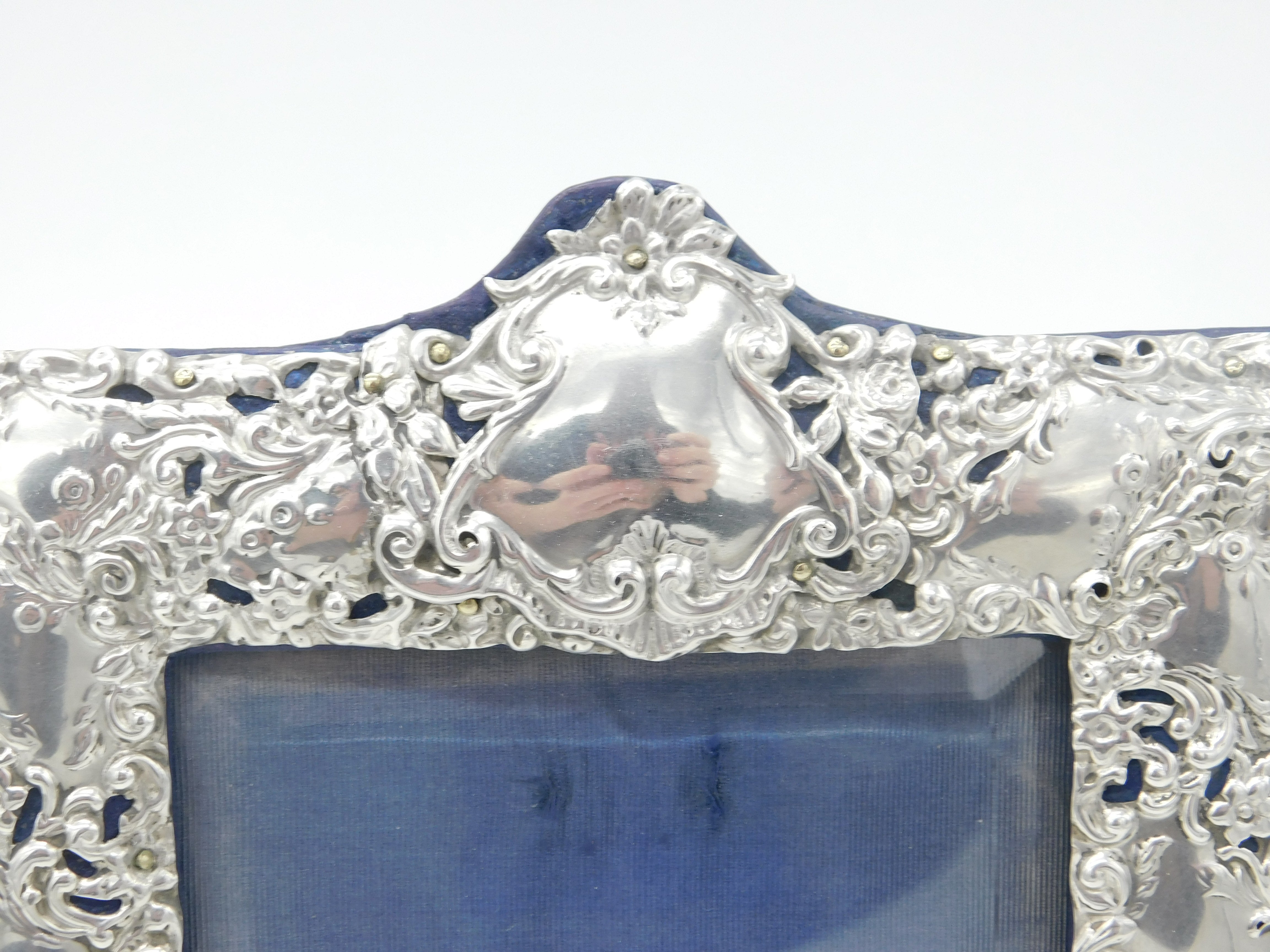 Edwardian Sterling Silver Floral Pattern Picture Frame Antique 1906 Birmingham