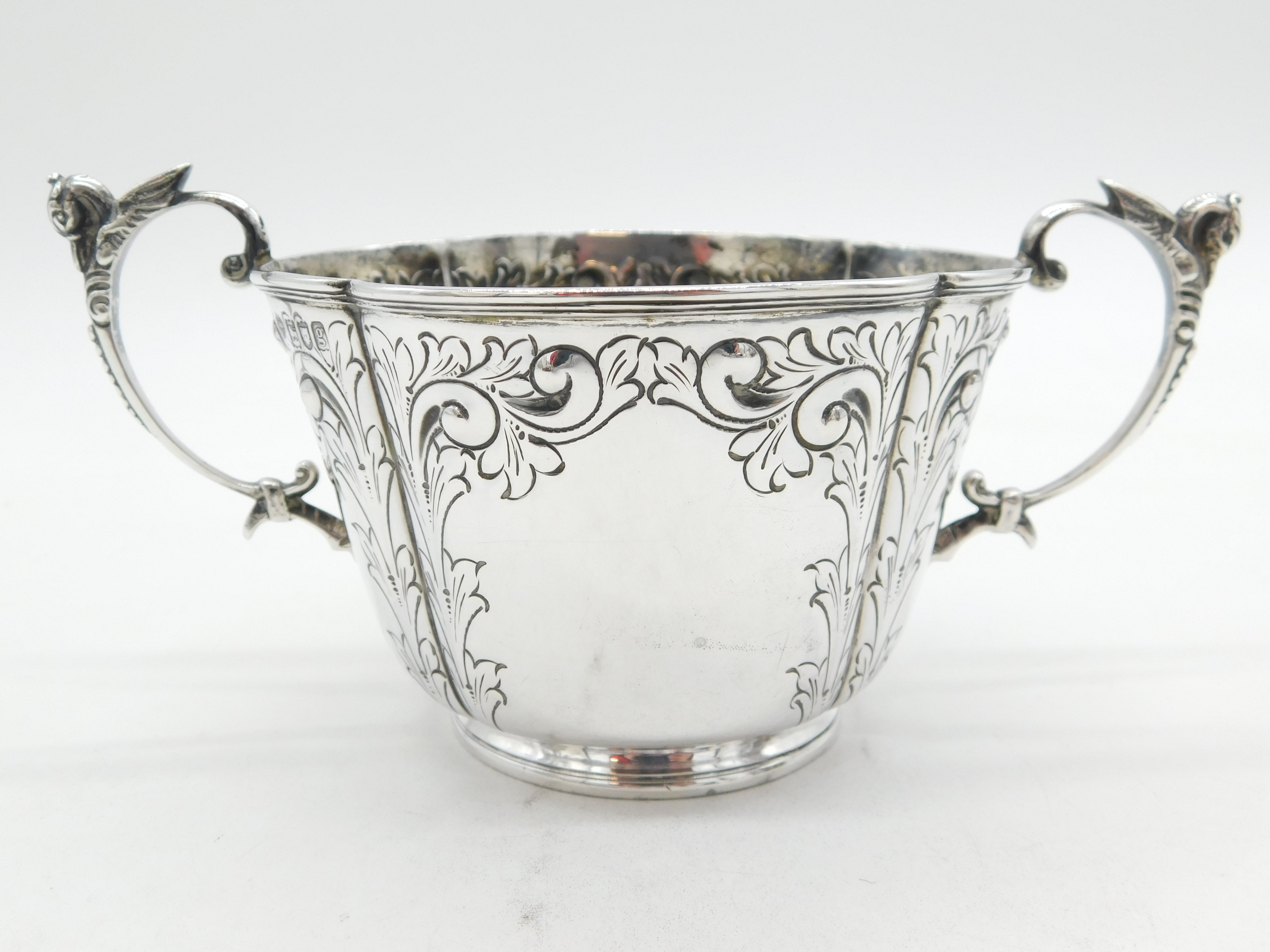 Edwardian Sterling Silver Floral Pattern Porringer Antique 1902 London