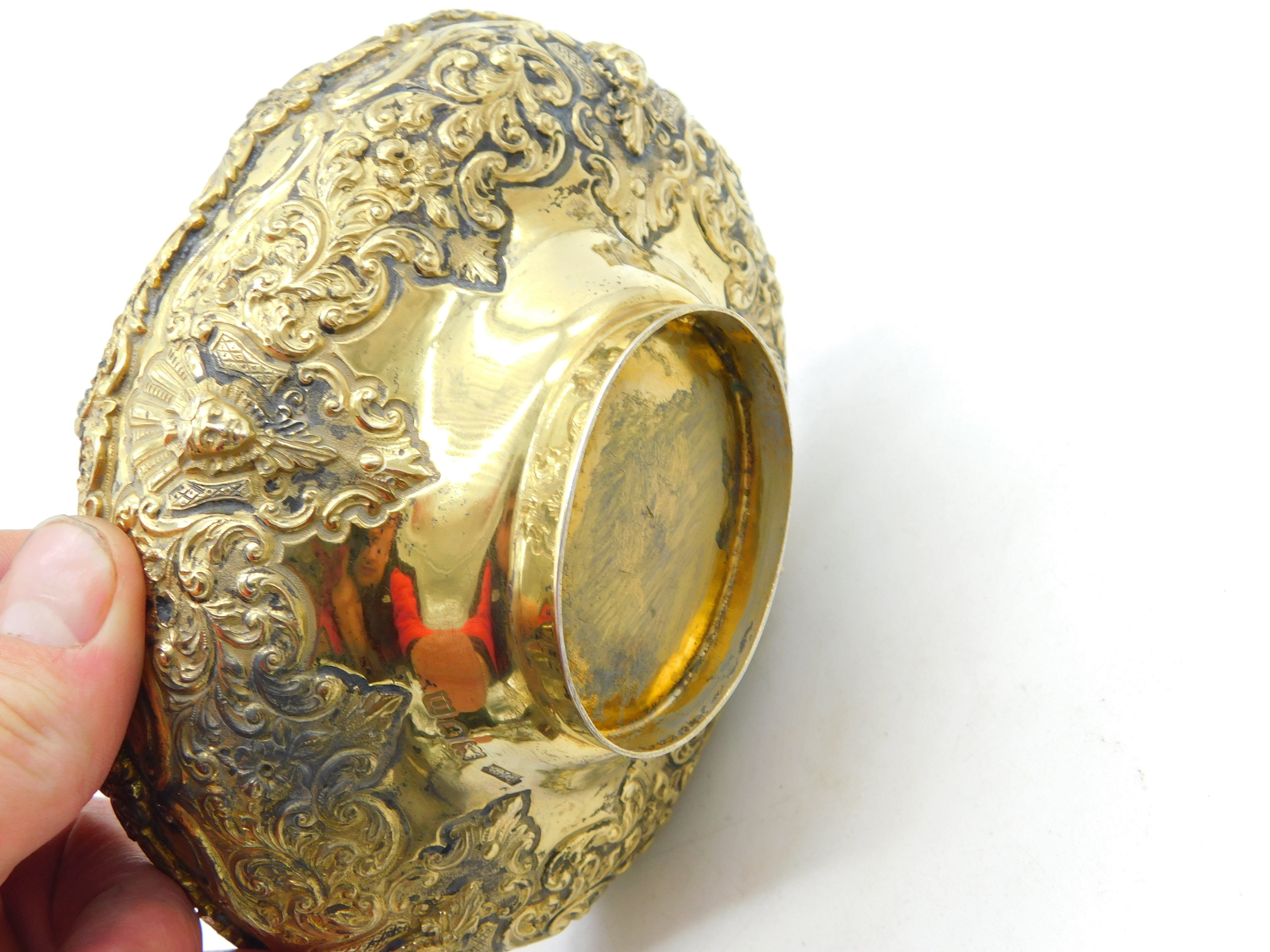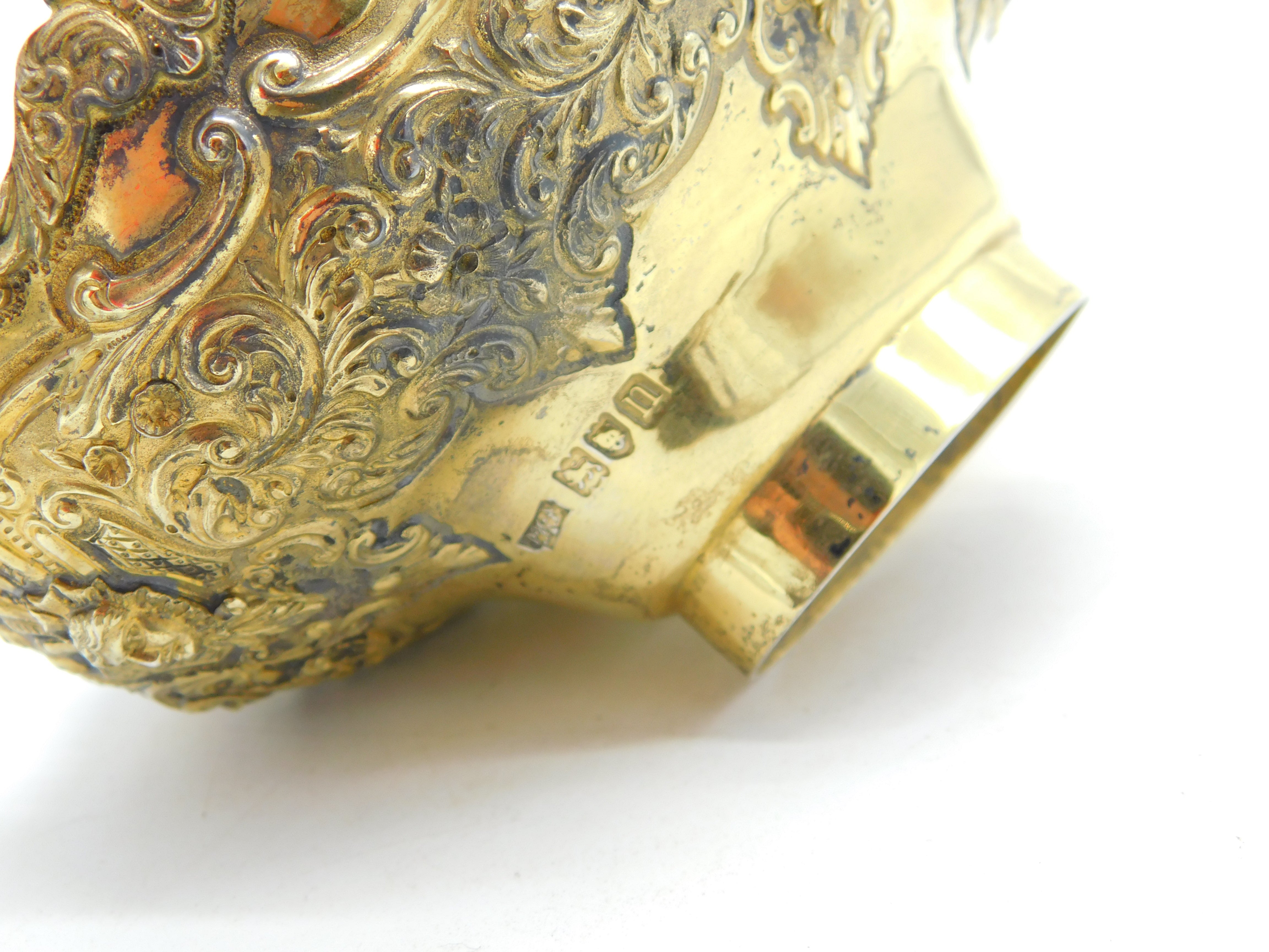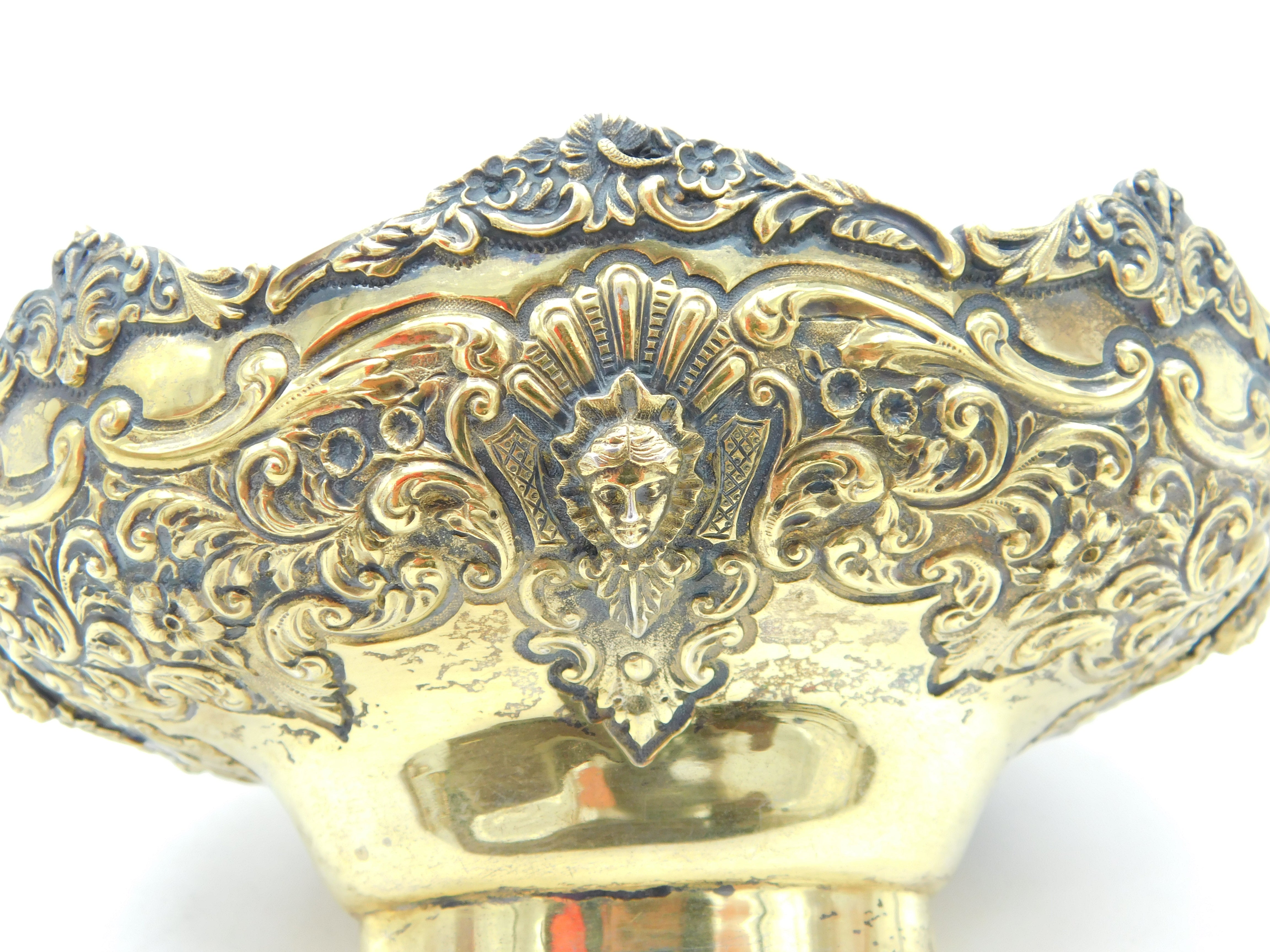 Edwardian Sterling Silver Gilt Floral & Cherub Pattern Sugar Bowl 1908 Antique