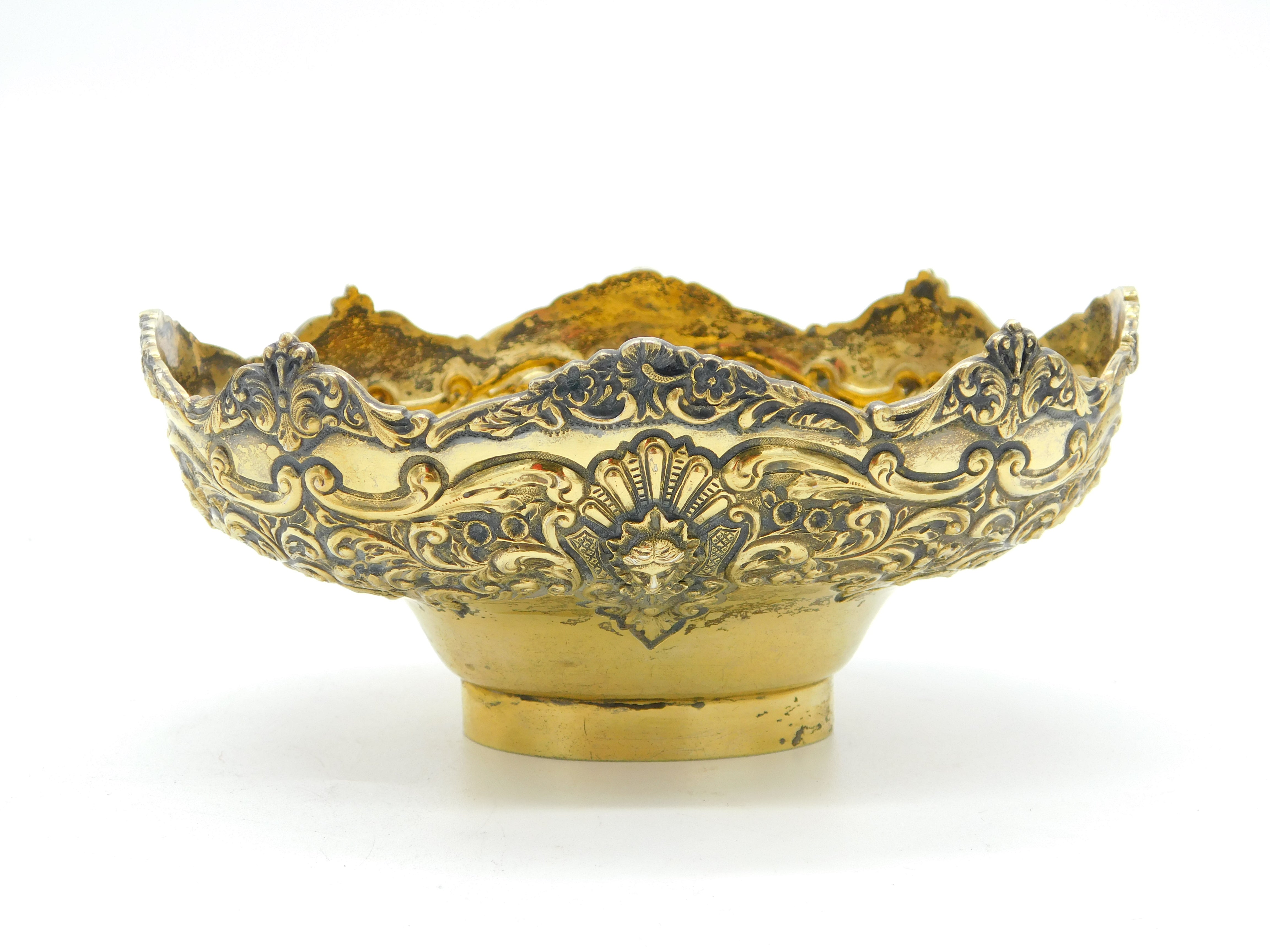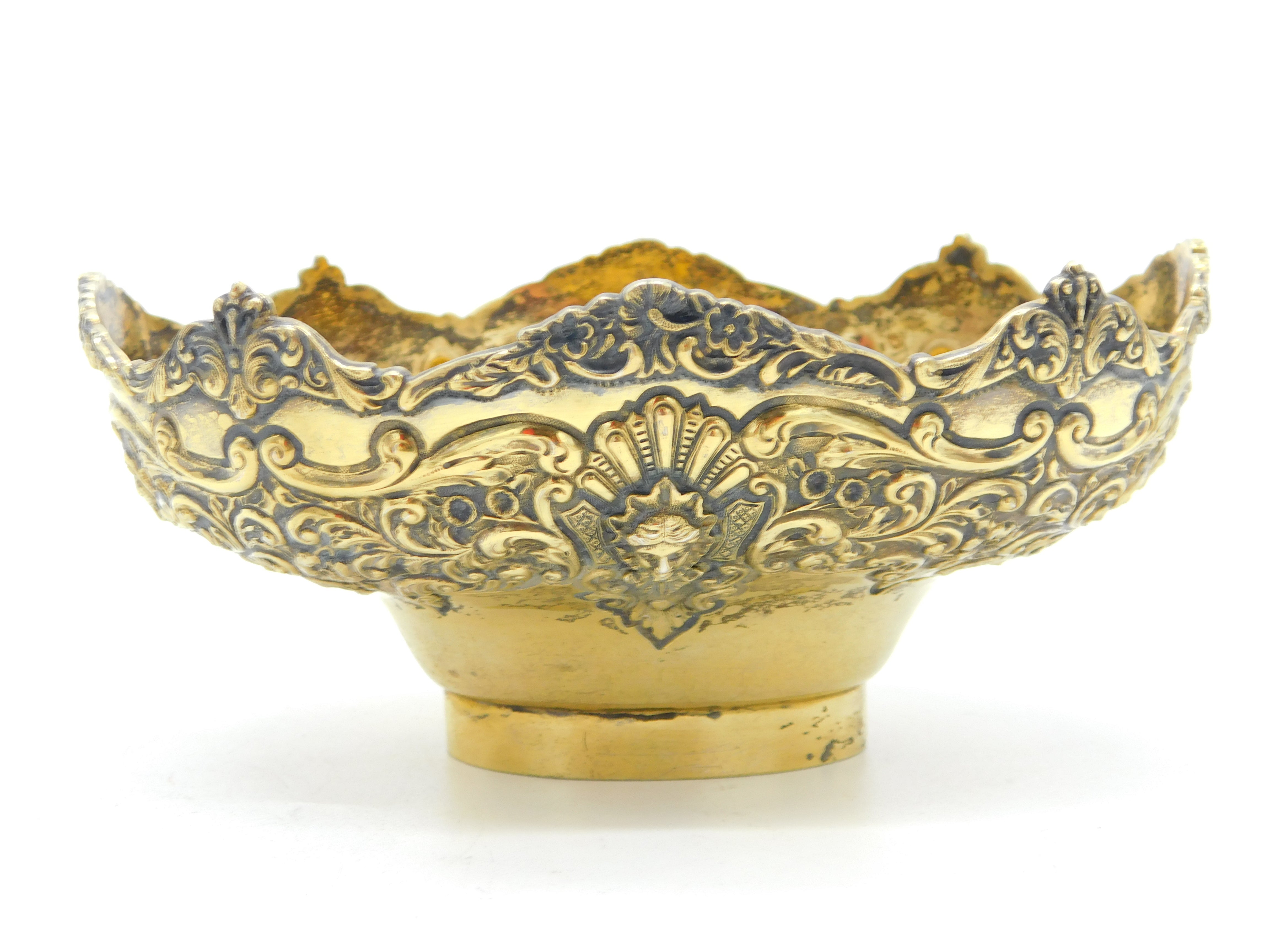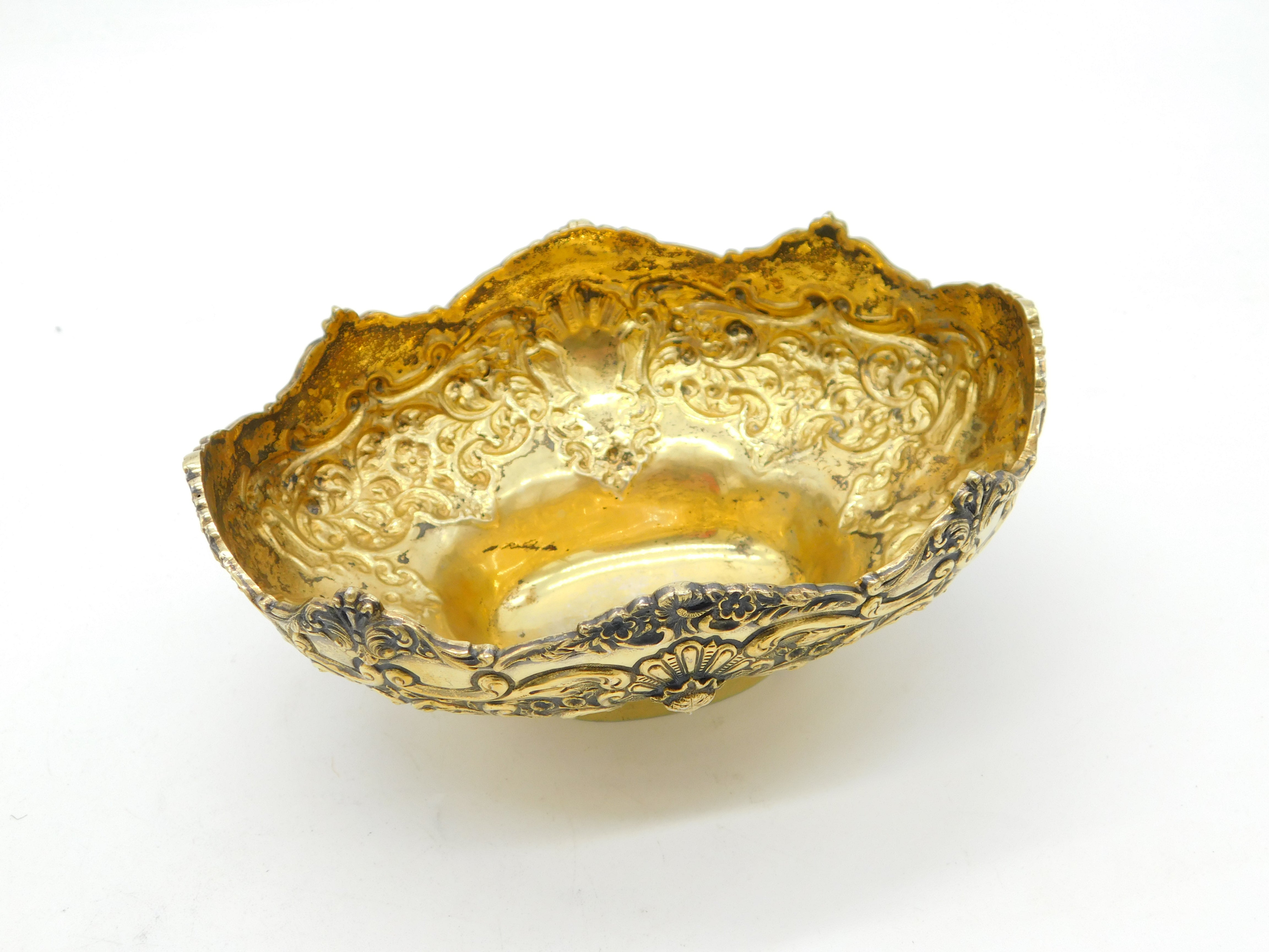 Edwardian Sterling Silver Gilt Floral & Cherub Pattern Sugar Bowl 1908 Antique