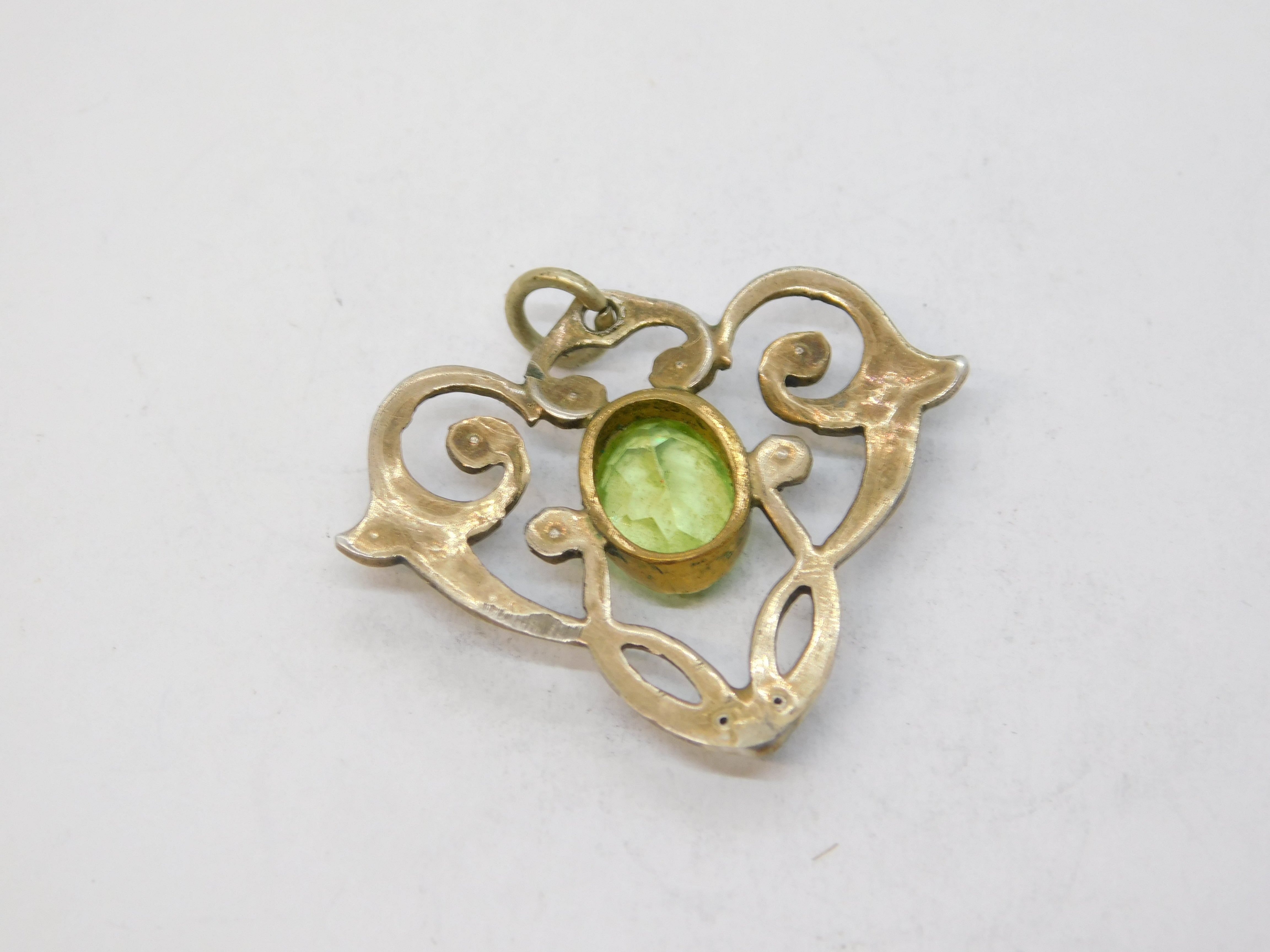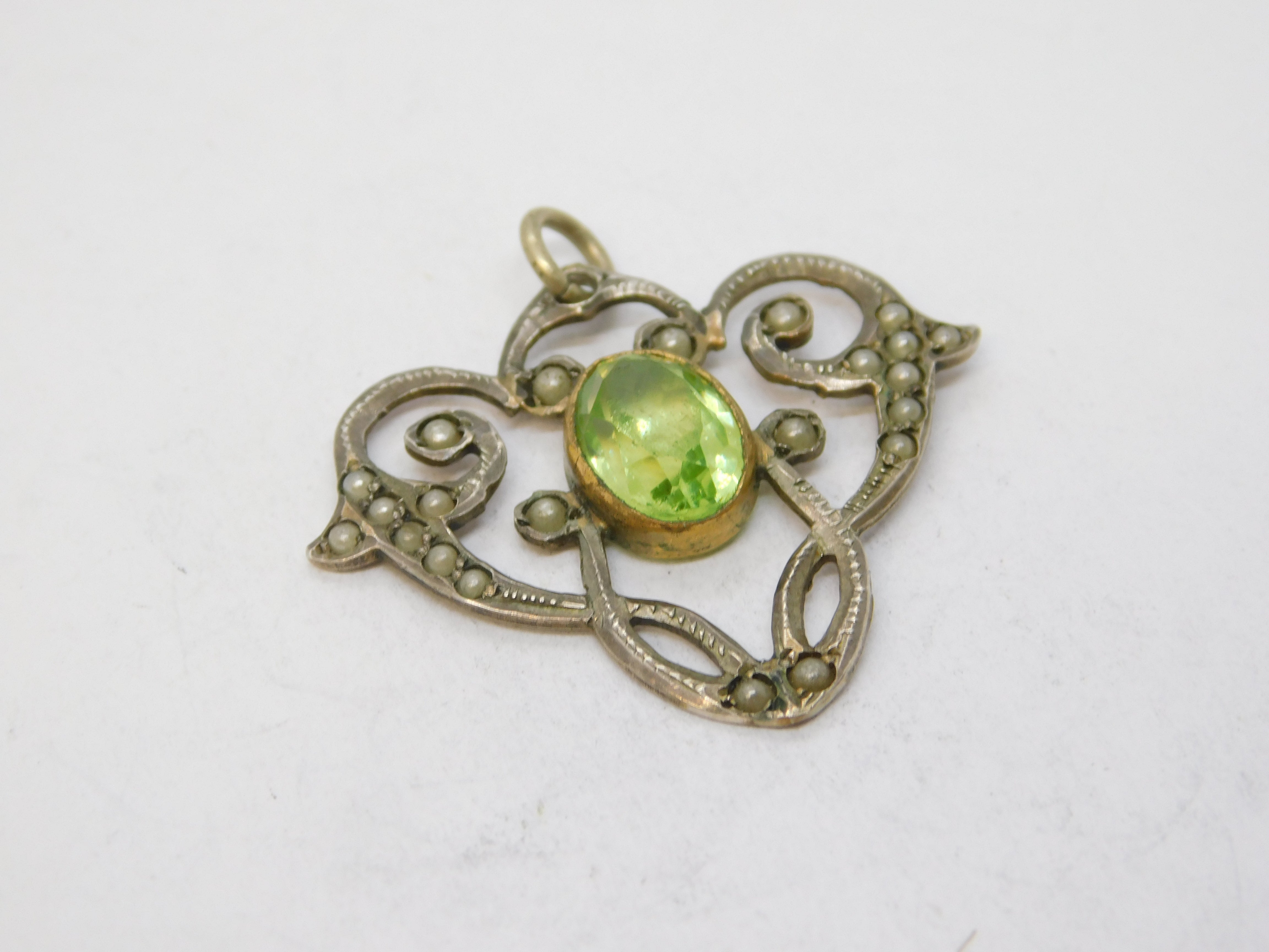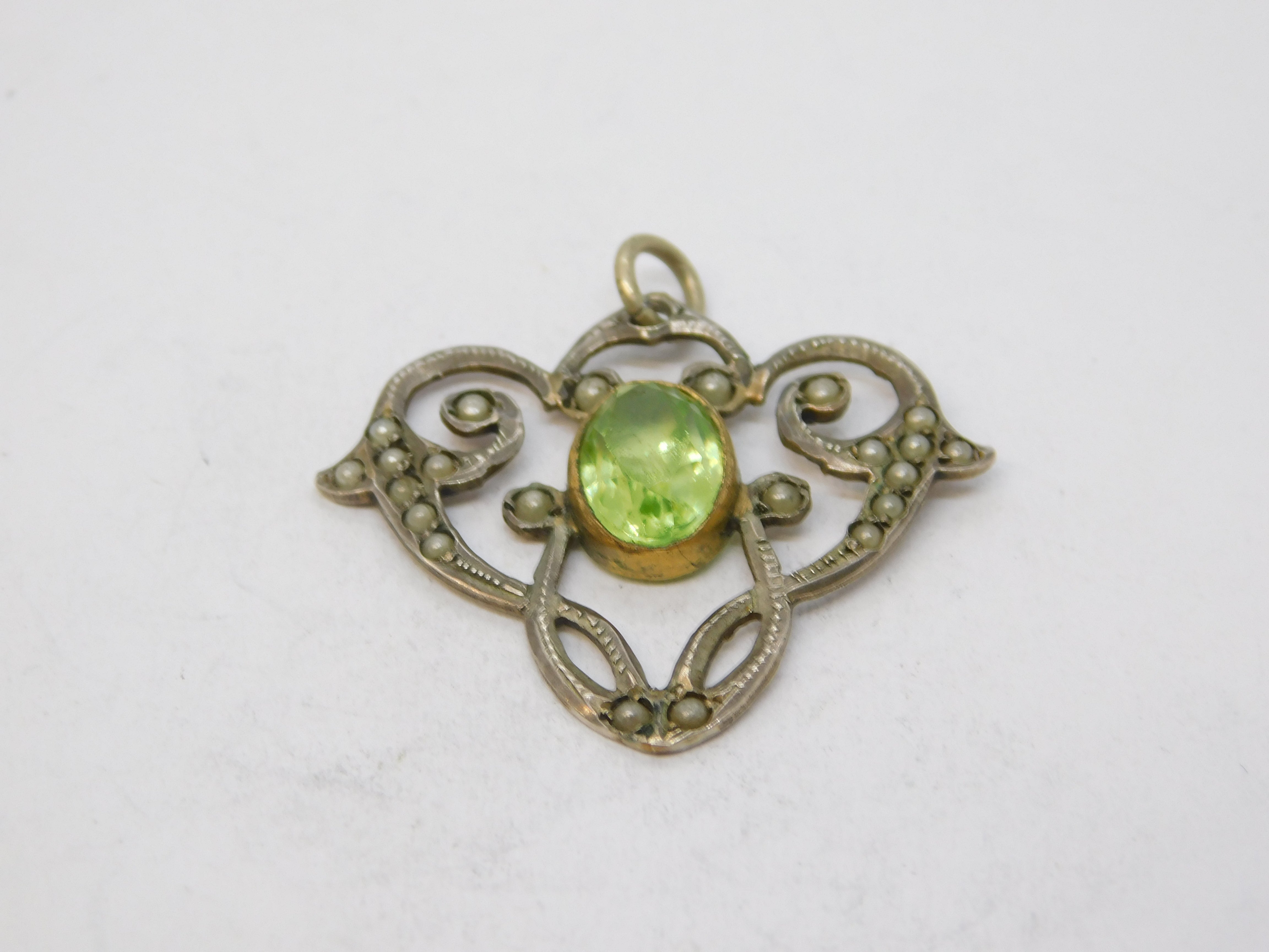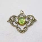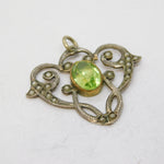 Edwardian Sterling Silver Gilt, Peridot, Seed Pearl Drop Pendant Antique c1910