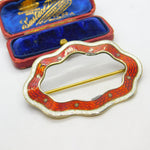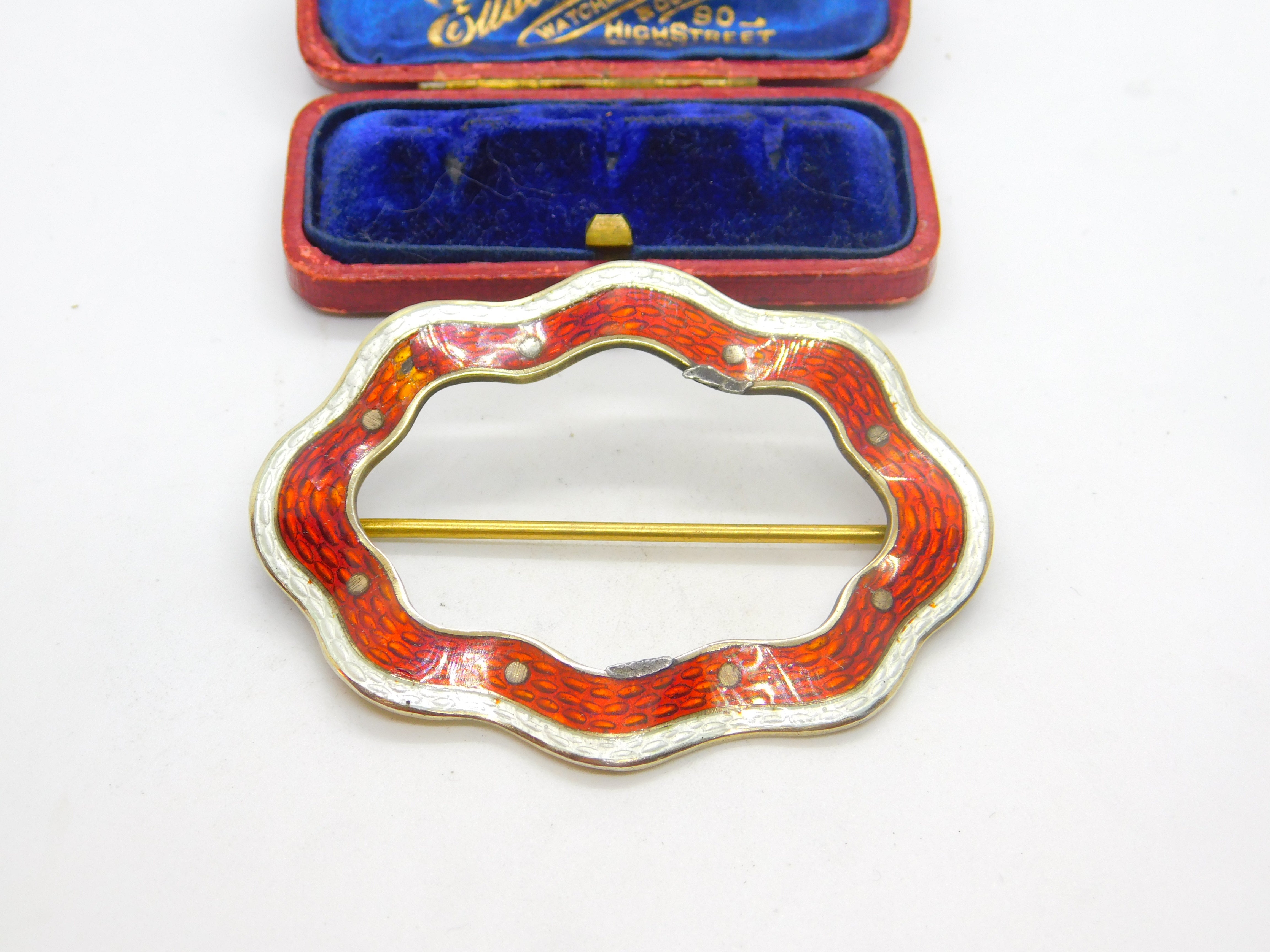 Edwardian Sterling Silver Gilt & Red-White Guilloche Enamel Buckle Brooch 1905