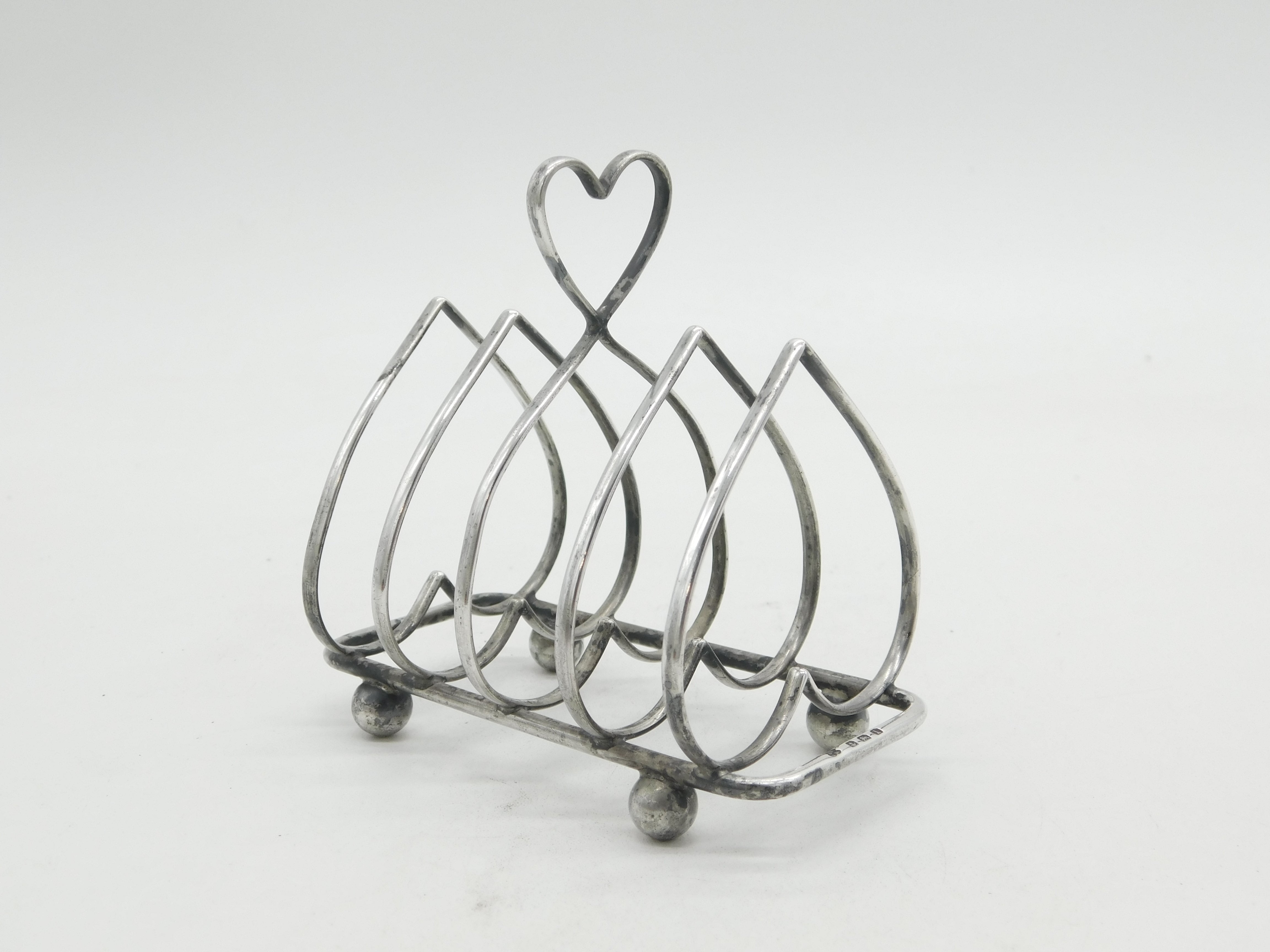 Edwardian Sterling Silver Heart Shaped Toast Rack Antique 1910 Birmingham