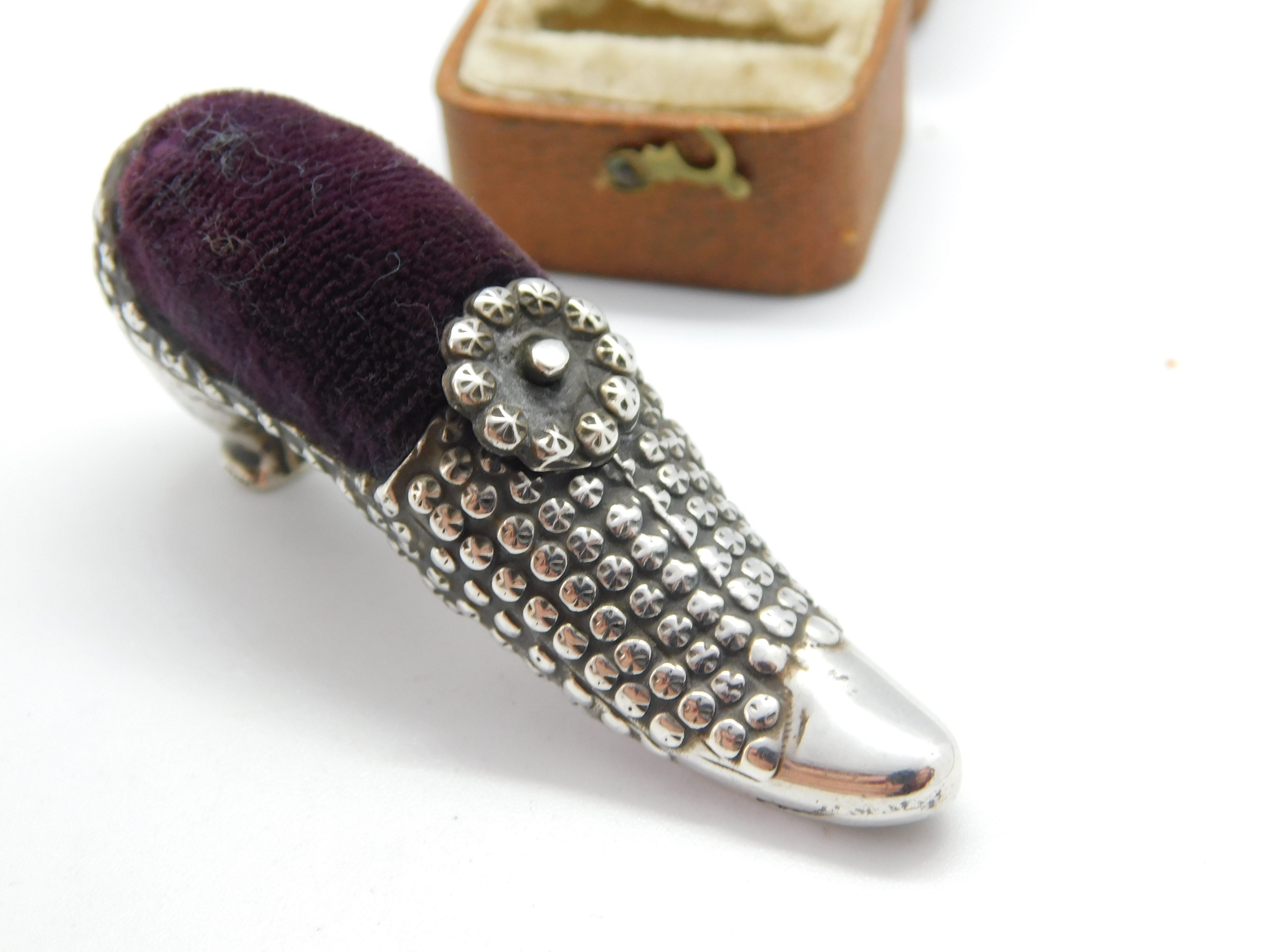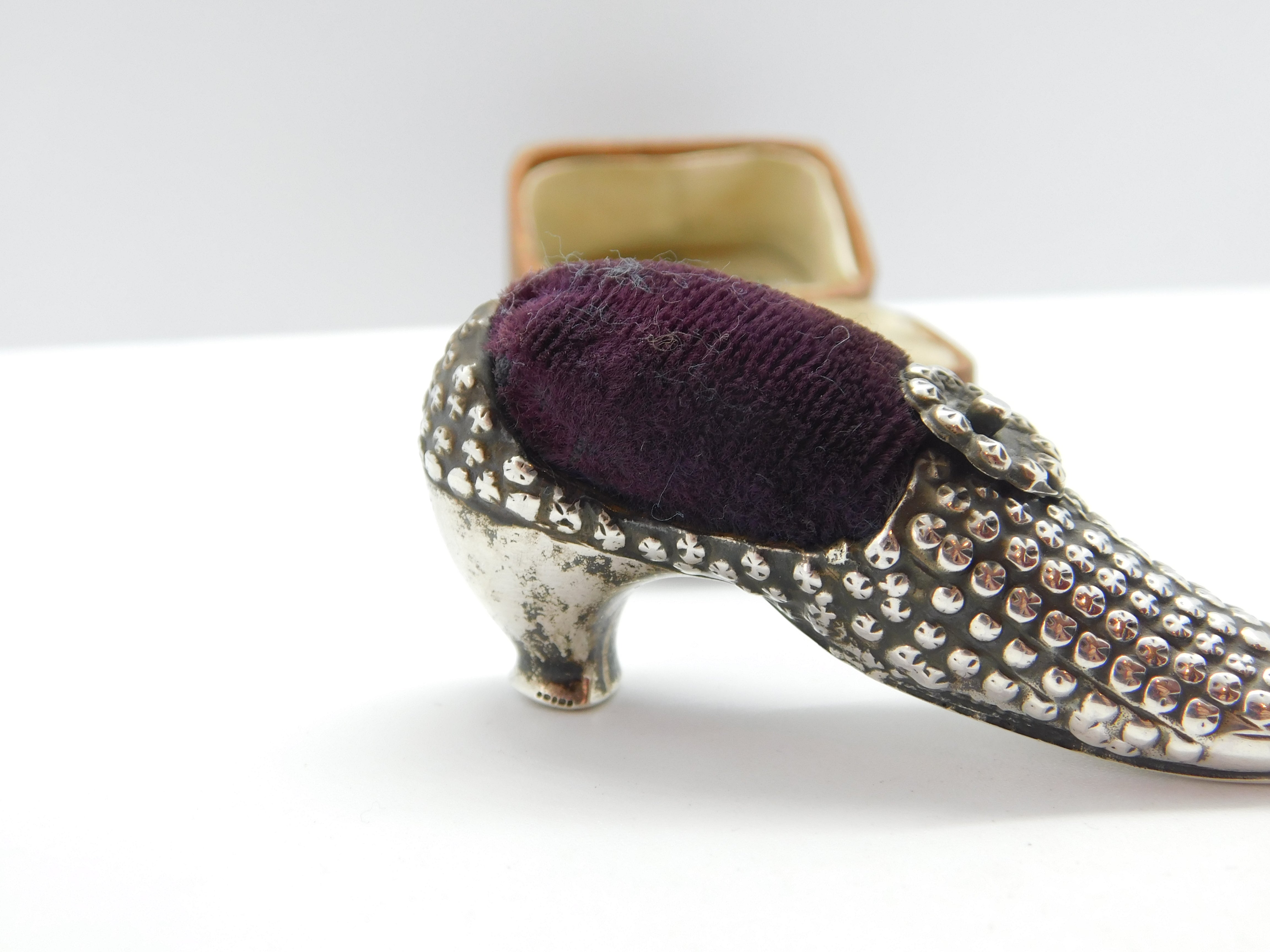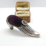 Edwardian Sterling Silver High-Heeled Shoe Novelty Pin Cushion 1905 Antique