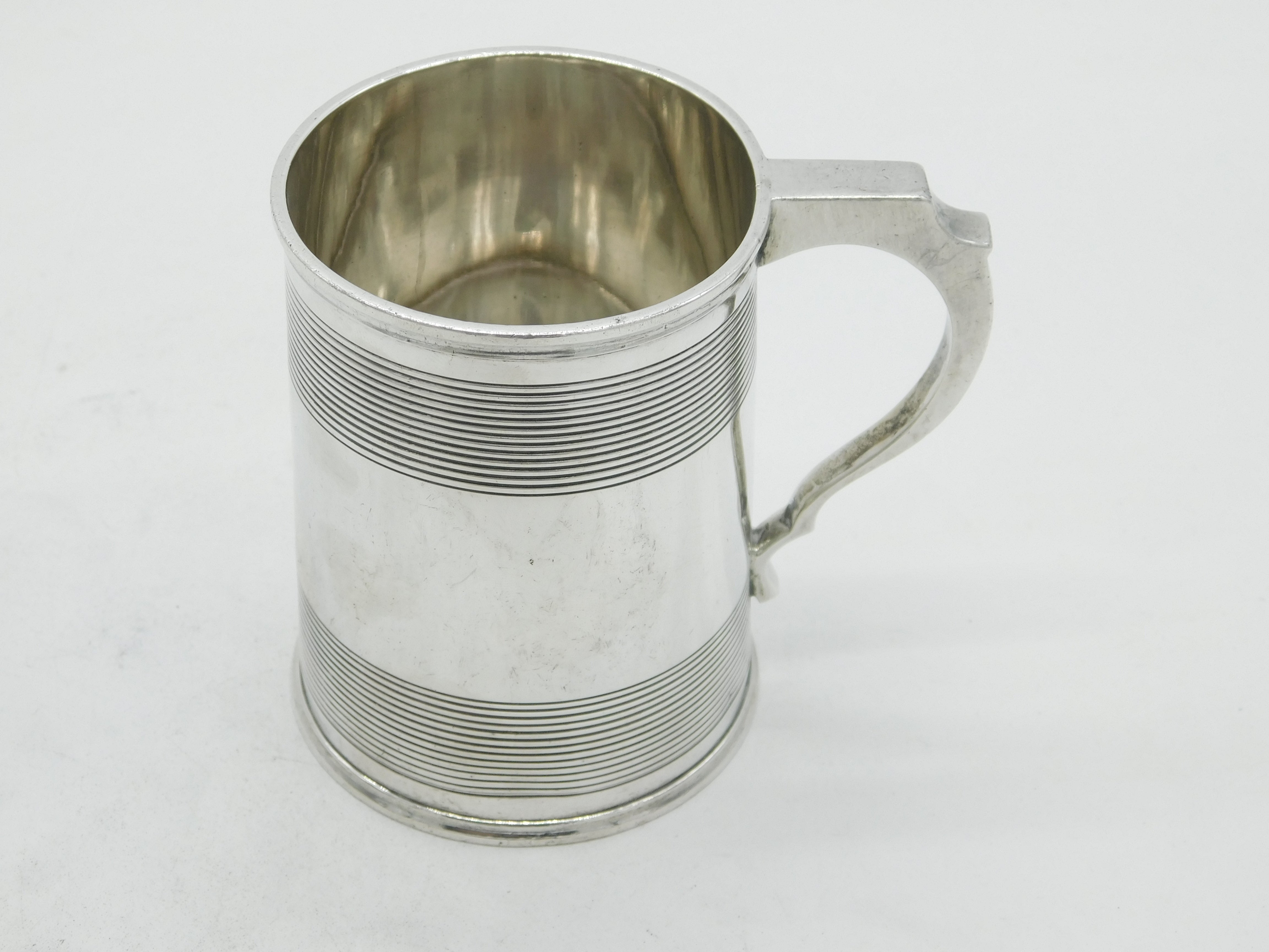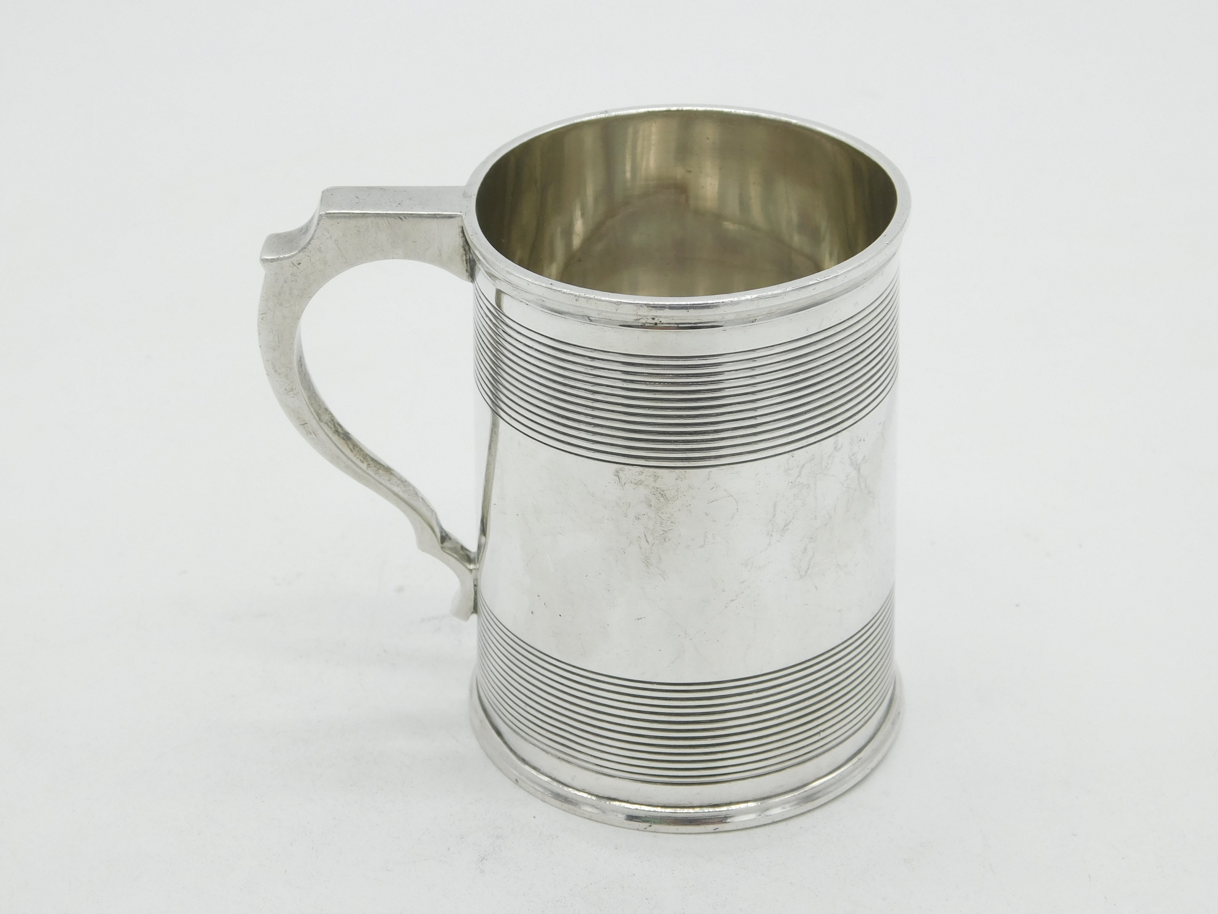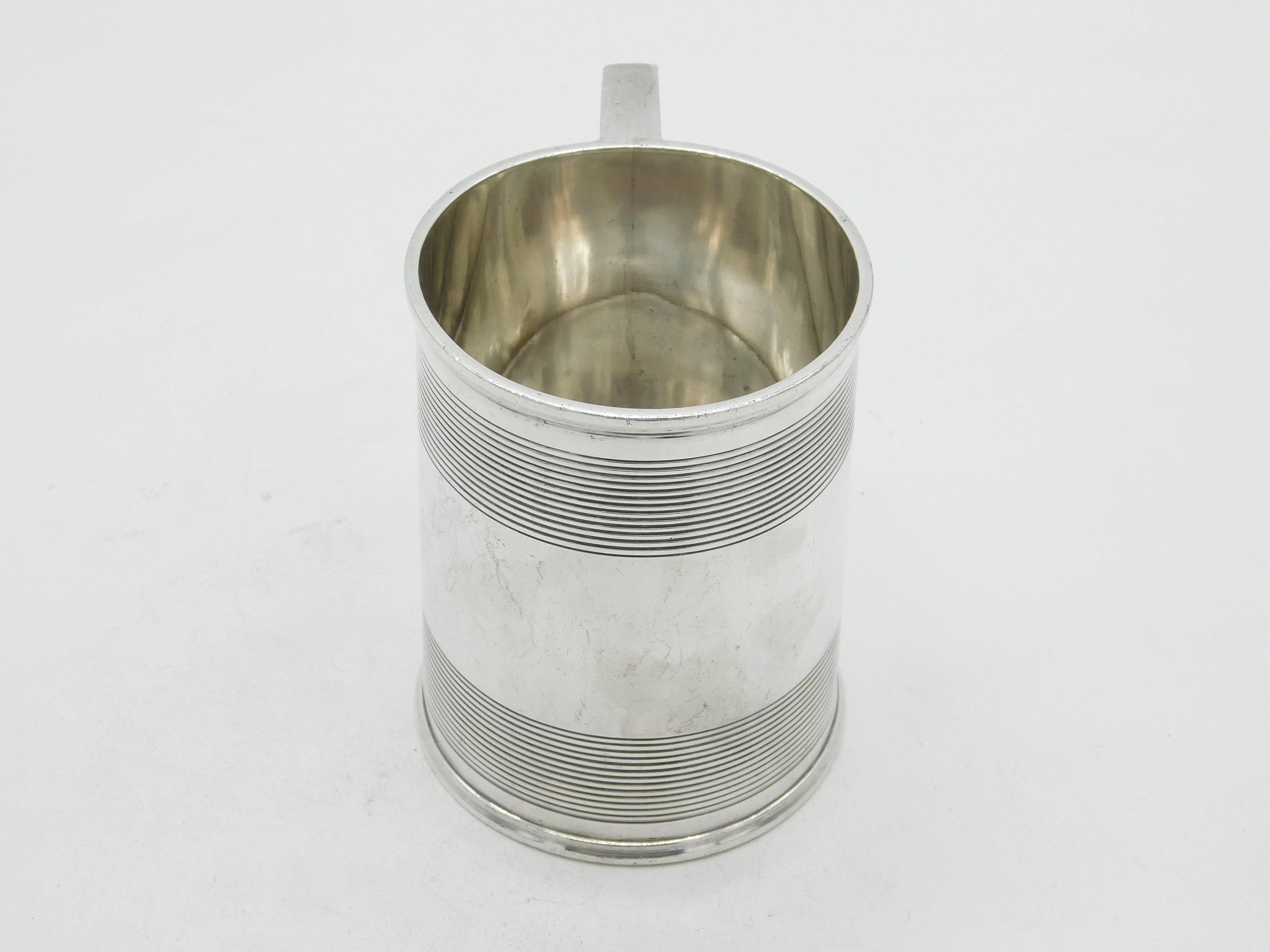 Edwardian Sterling Silver Lined Pattern Christening Mug 1907 Chester Antique