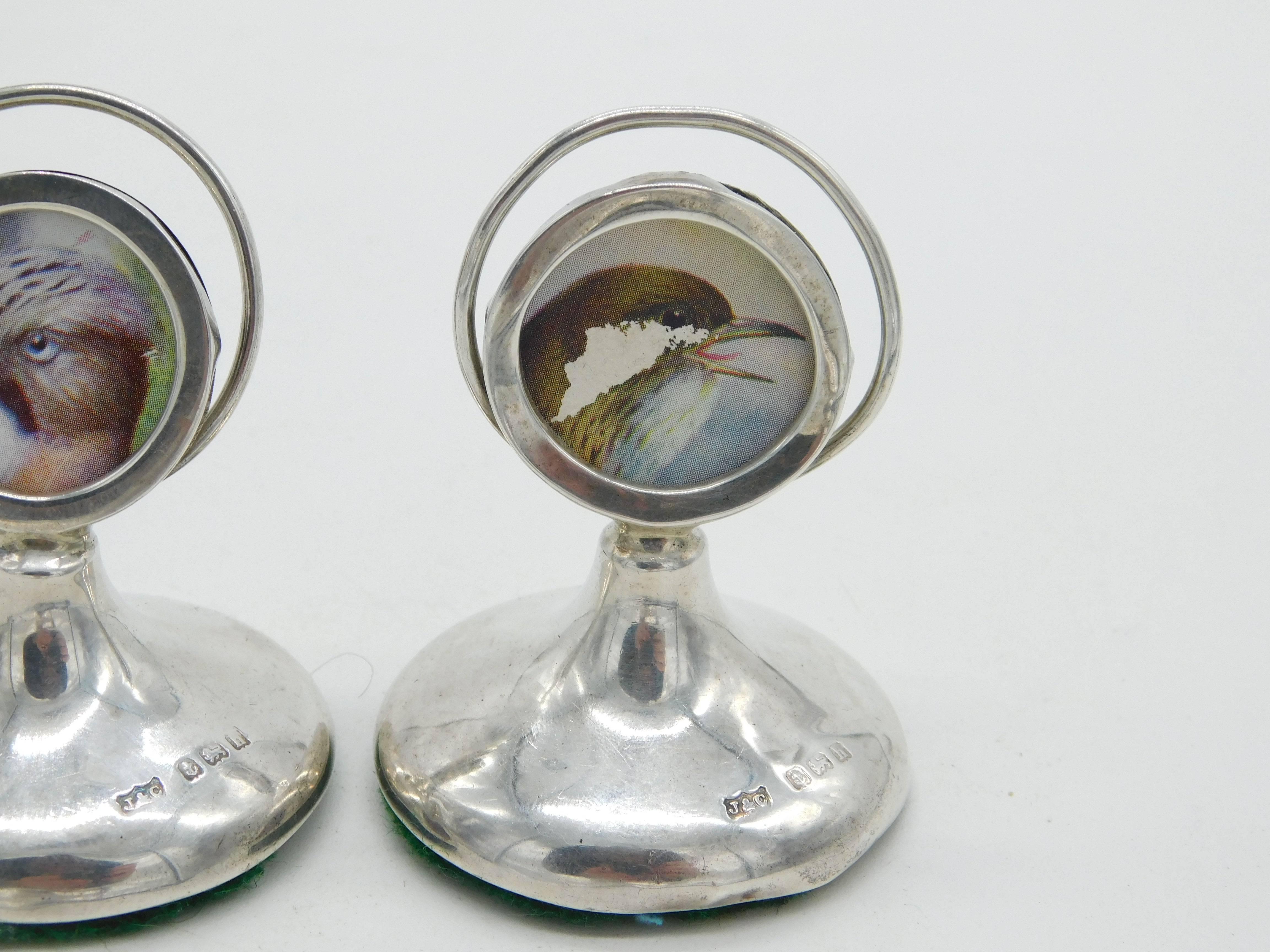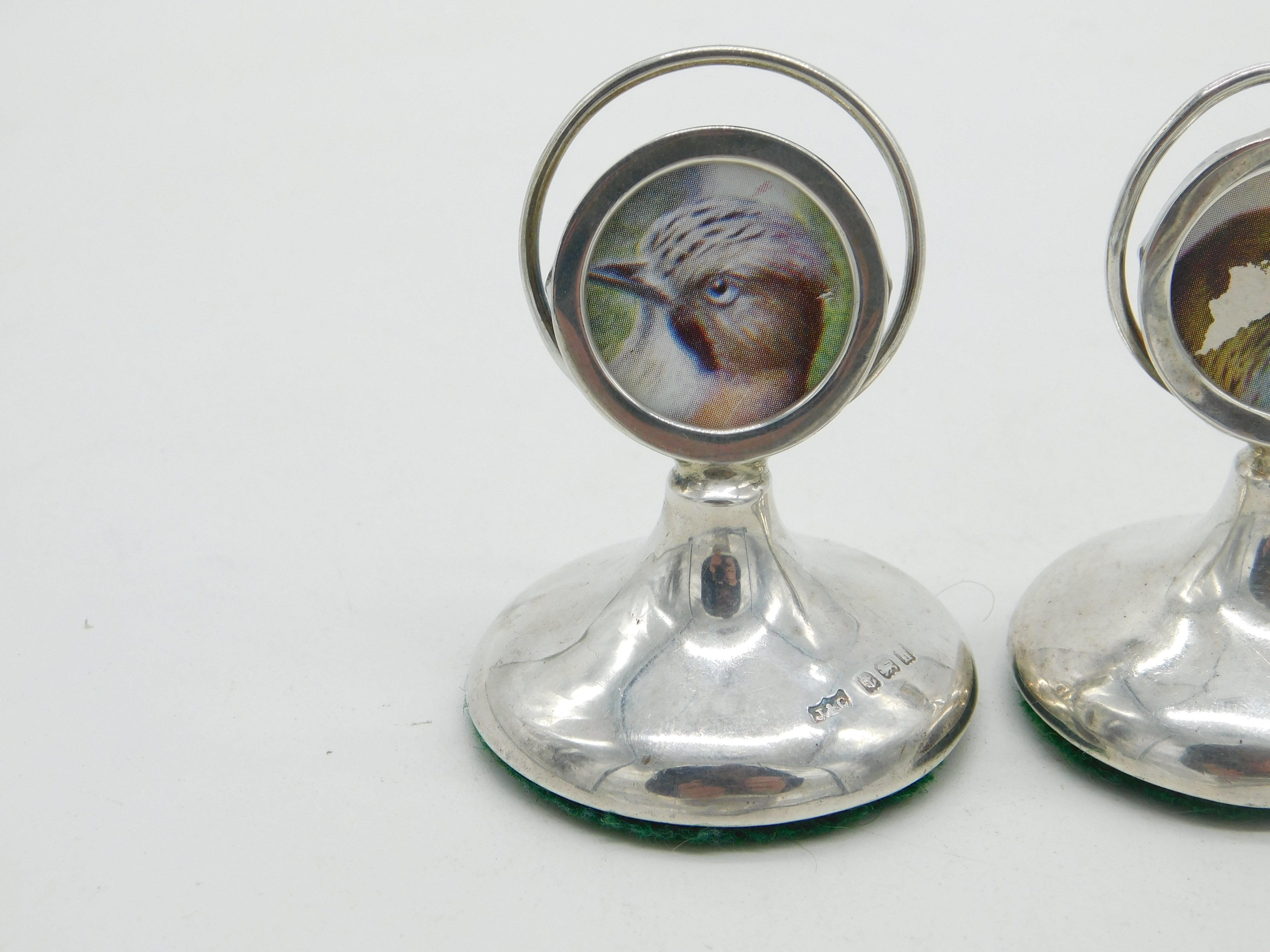 Details: A fantastic and wonderfully designed antique Edwardian sterling silver pair of menu holders or place settings with charming prints of birds hallmarked Birmingham 1907 by Joseph Jennens & Co. Minor dings and dents, one menu slightly bent please see pictures. This is a wonderful item that would make a perfect gift or addition to any collection. The BOX pictured is for PRESENTATION ONLY and is NOT included in the listings but used to frame the pictures unless specifically stated otherwise.