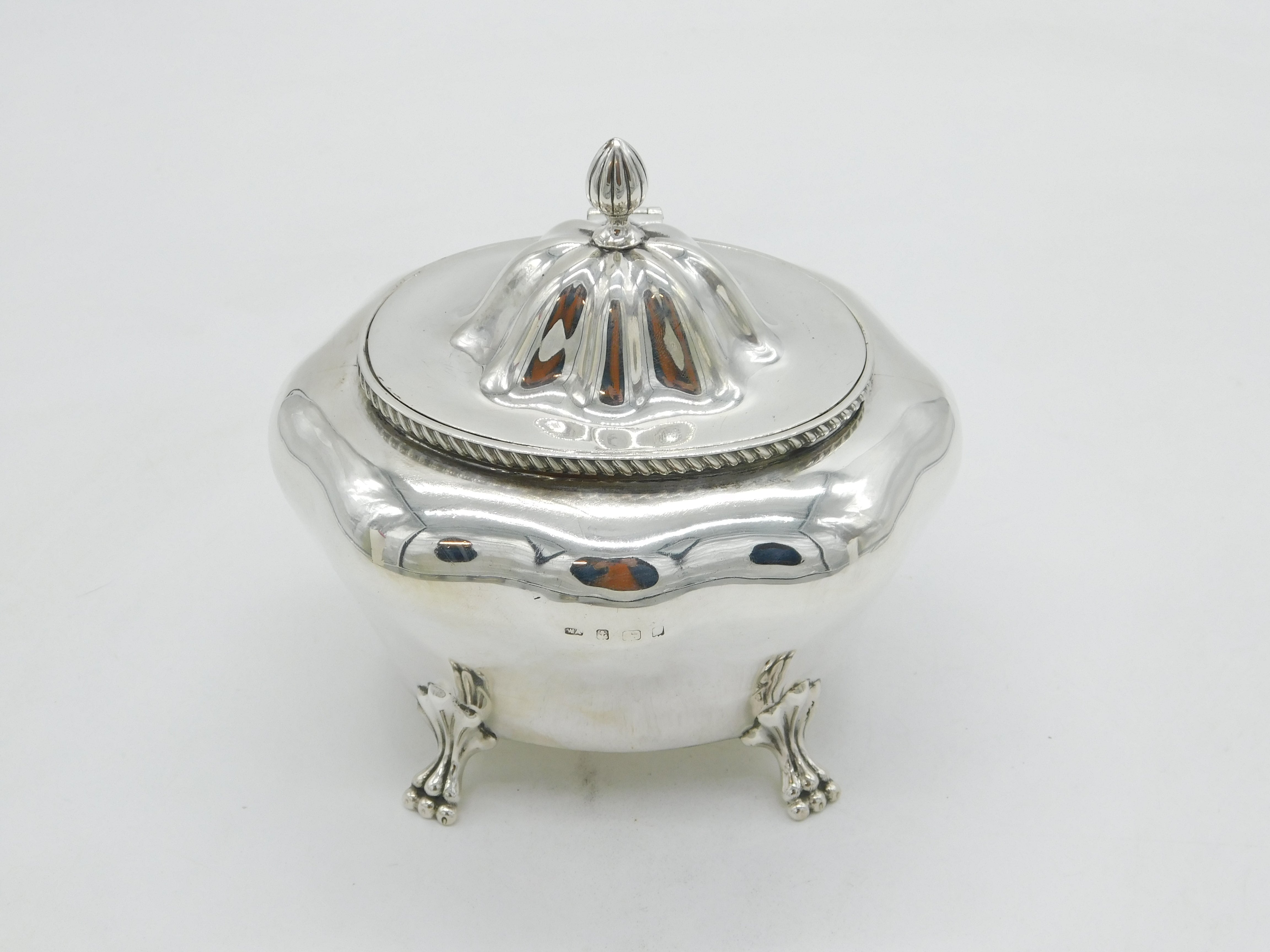Edwardian Sterling Silver Paw-Foot Fluted Tea Caddy Antique 1905 Birmingham