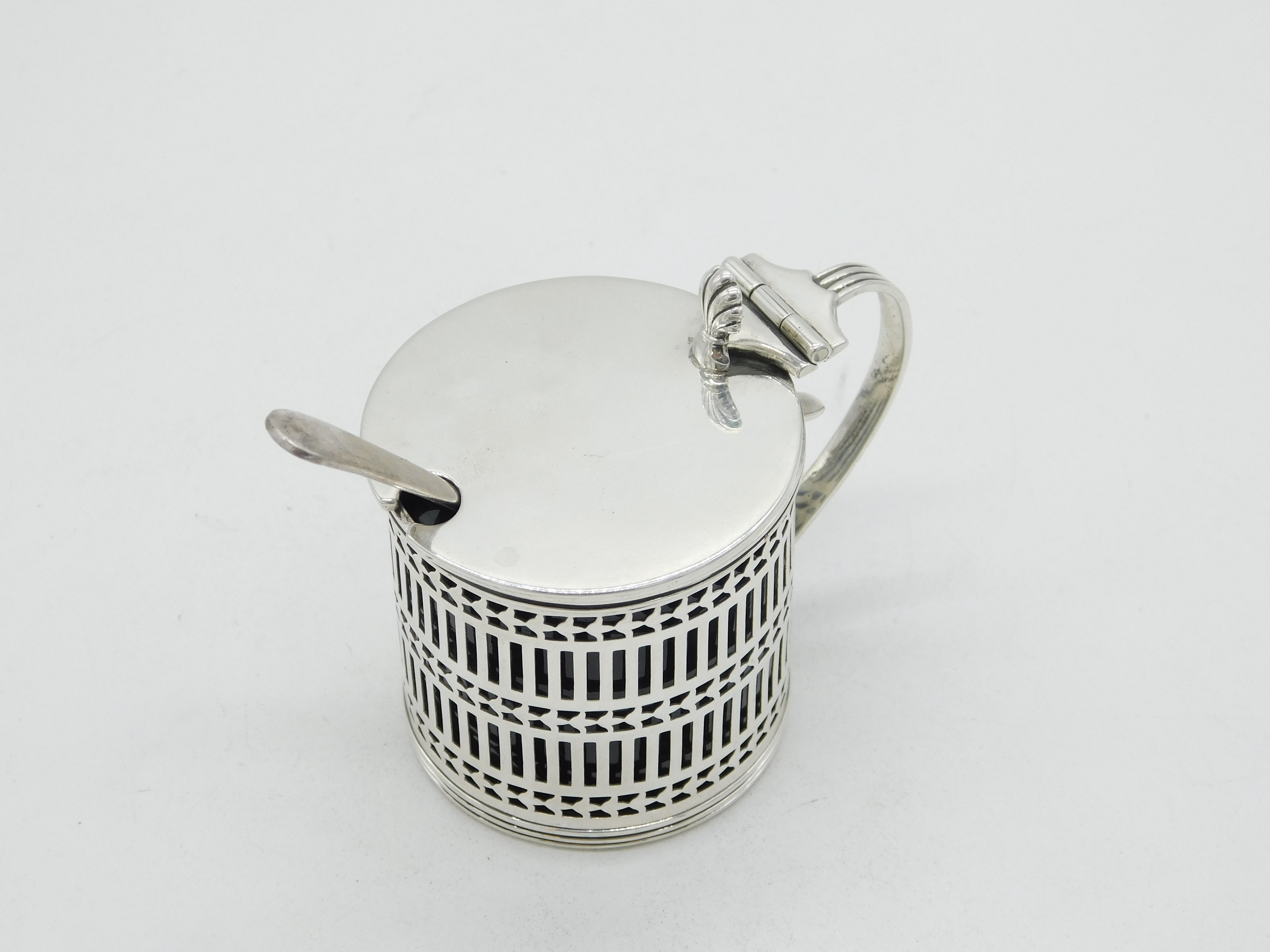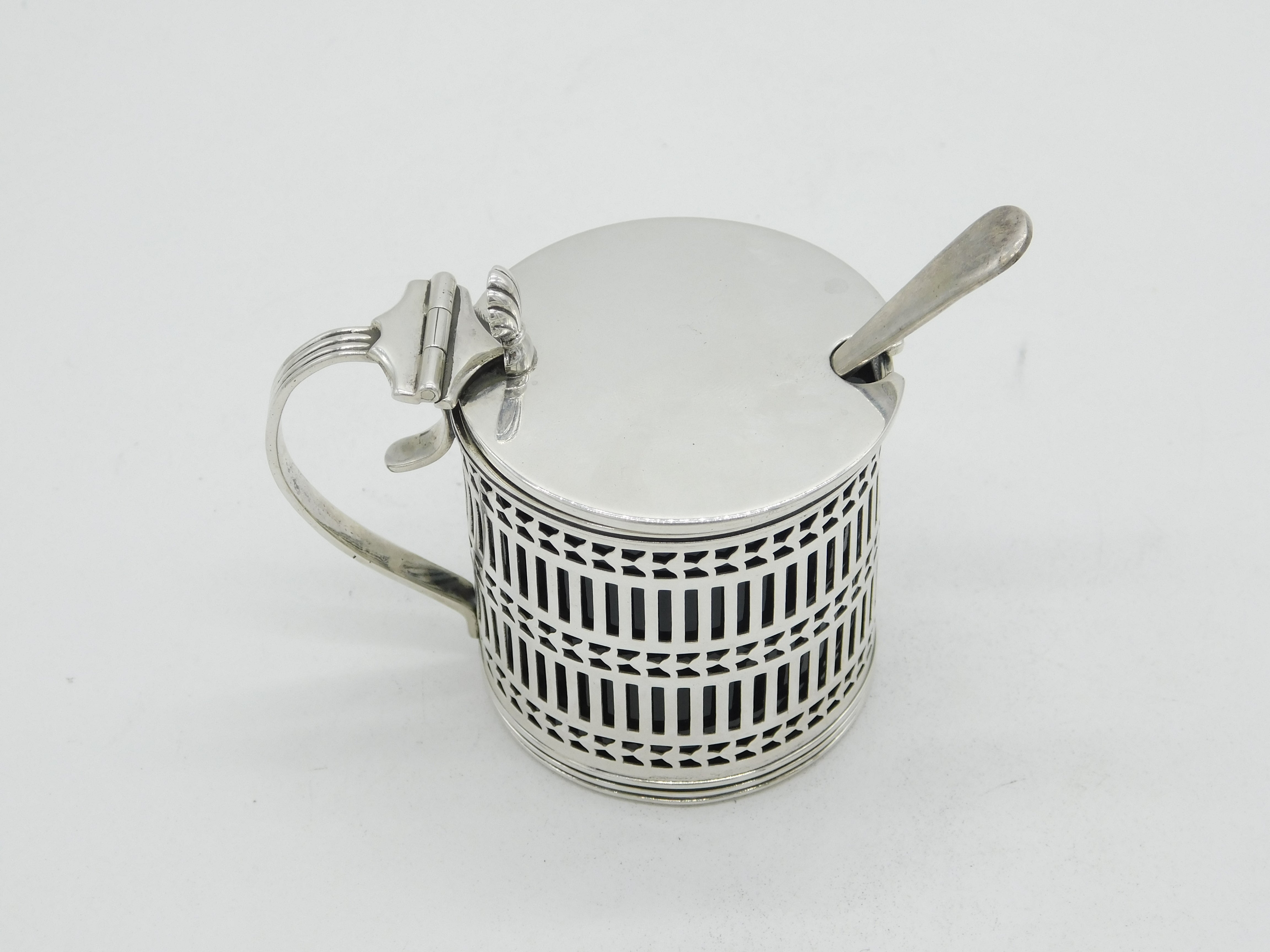 Edwardian Sterling Silver Pierced Mustard Pot Antique 1904 Sheffield