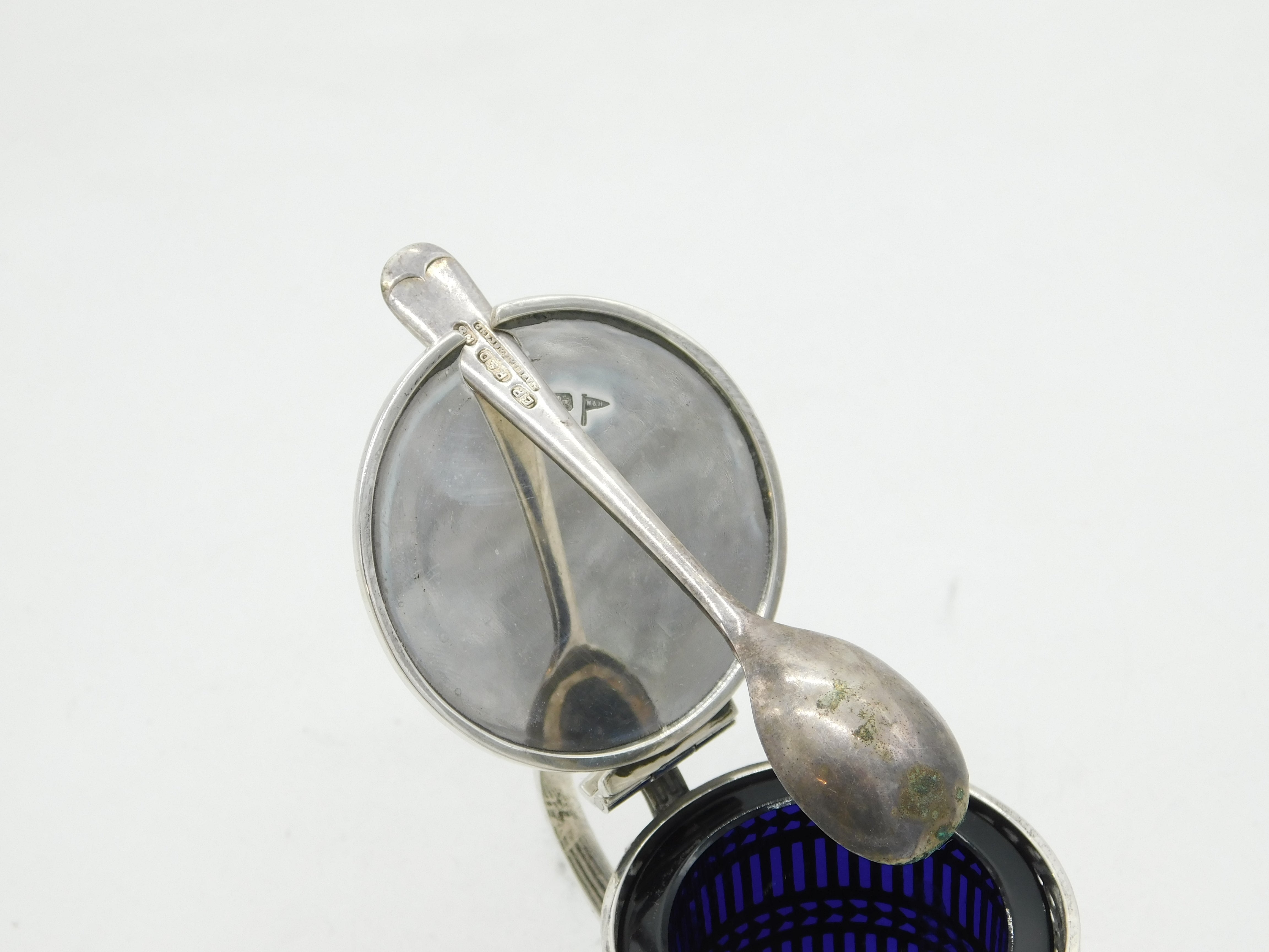 Details: A fantastic and wonderfully designed antique Edwardian pierced sterling silver mustard pot with lovely detailing hallmarked Sheffield 1904 by Walker & Hall, the spoon is silver plated. This is a wonderful item that would make a perfect gift or addition to any collection. We are more than happy to provide XRF reports for items upon request.