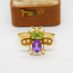 Edwardian Style Sterling Silver Gilt Peridot Amethyst Suffragette Bug Band Ring