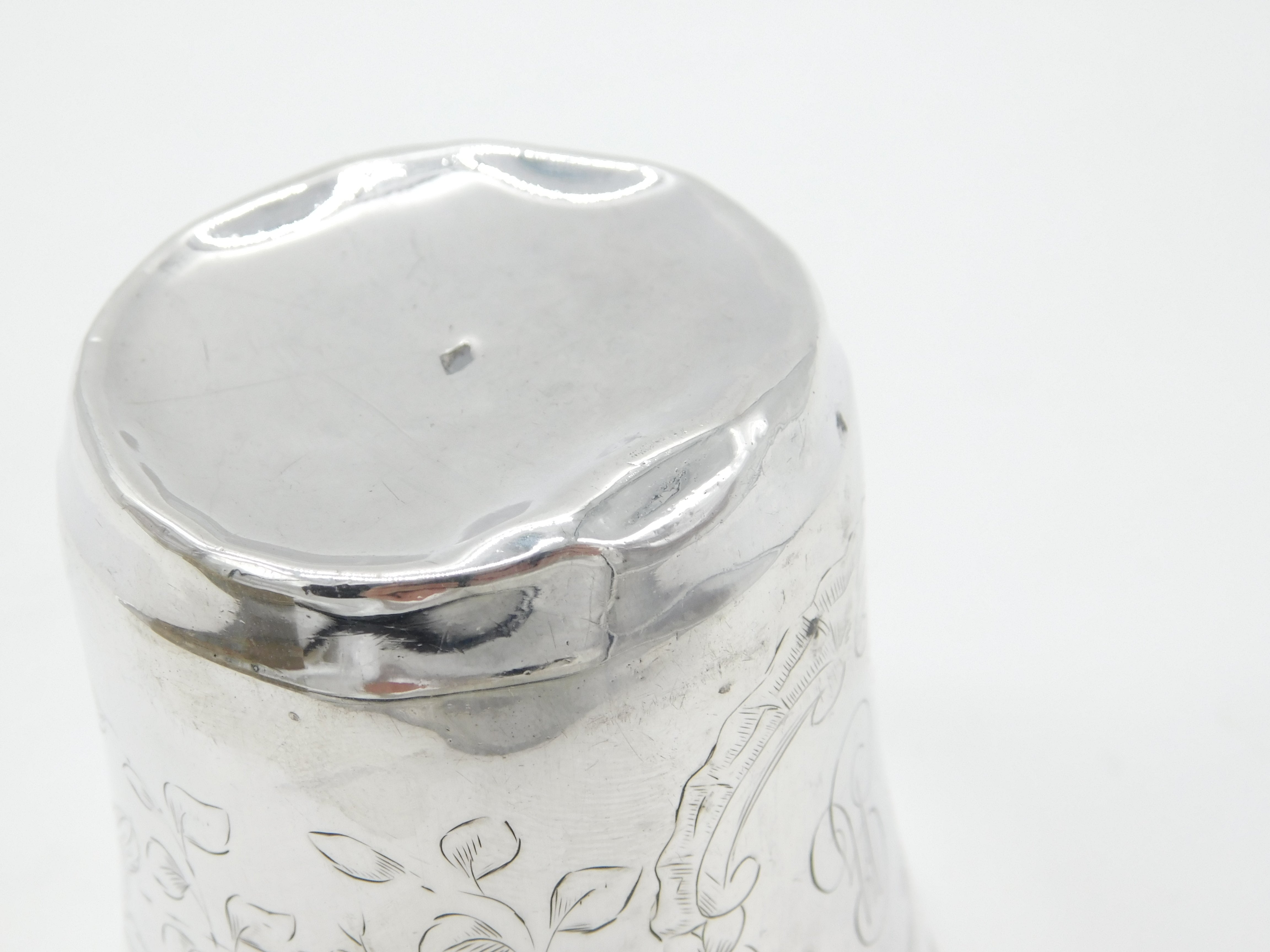French Aesthetic Movement Sterling Silver Flower & Bird Beaker Antique c1880