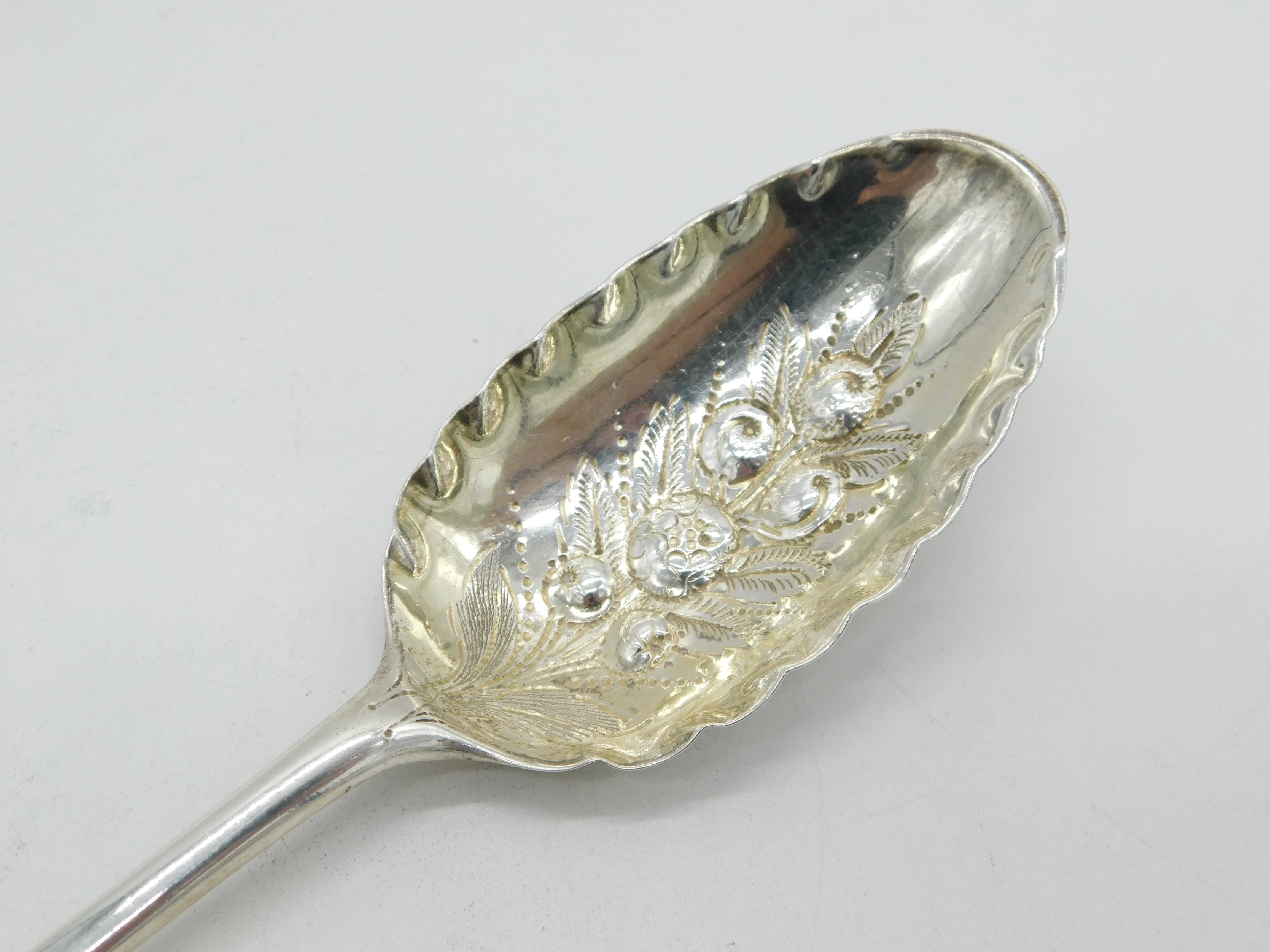 George I Sterling Silver Floral Berry Pattern Dessert Spoon Antique 1723 London