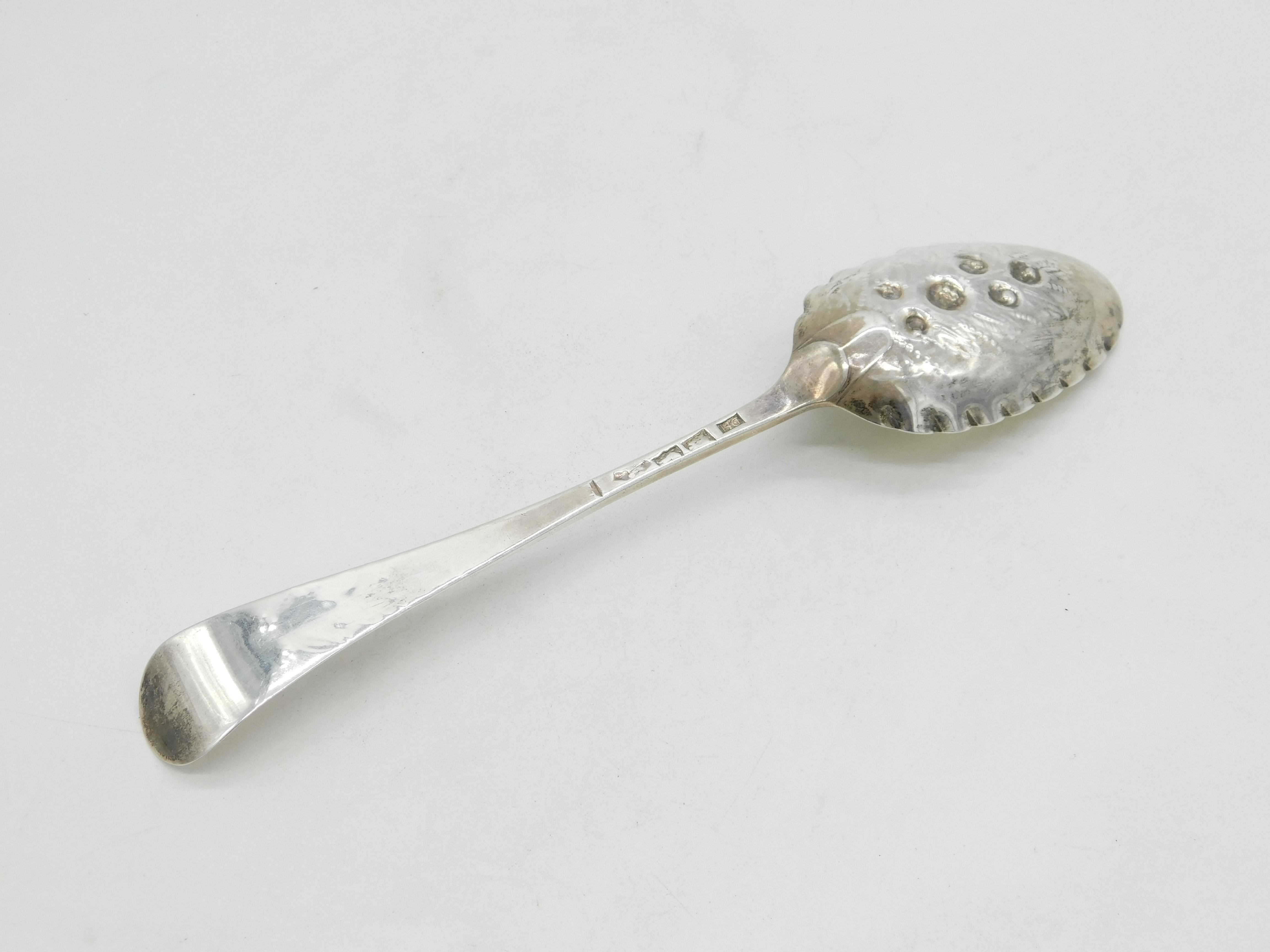 Details: A fantastic and wonderfully designed antique early georgian sterling silver berry pattern dessert spoon hallmarked London 1723 to the reverse, slightly rubbed marks. This is a wonderful item that would make a perfect gift or addition to any collection.
