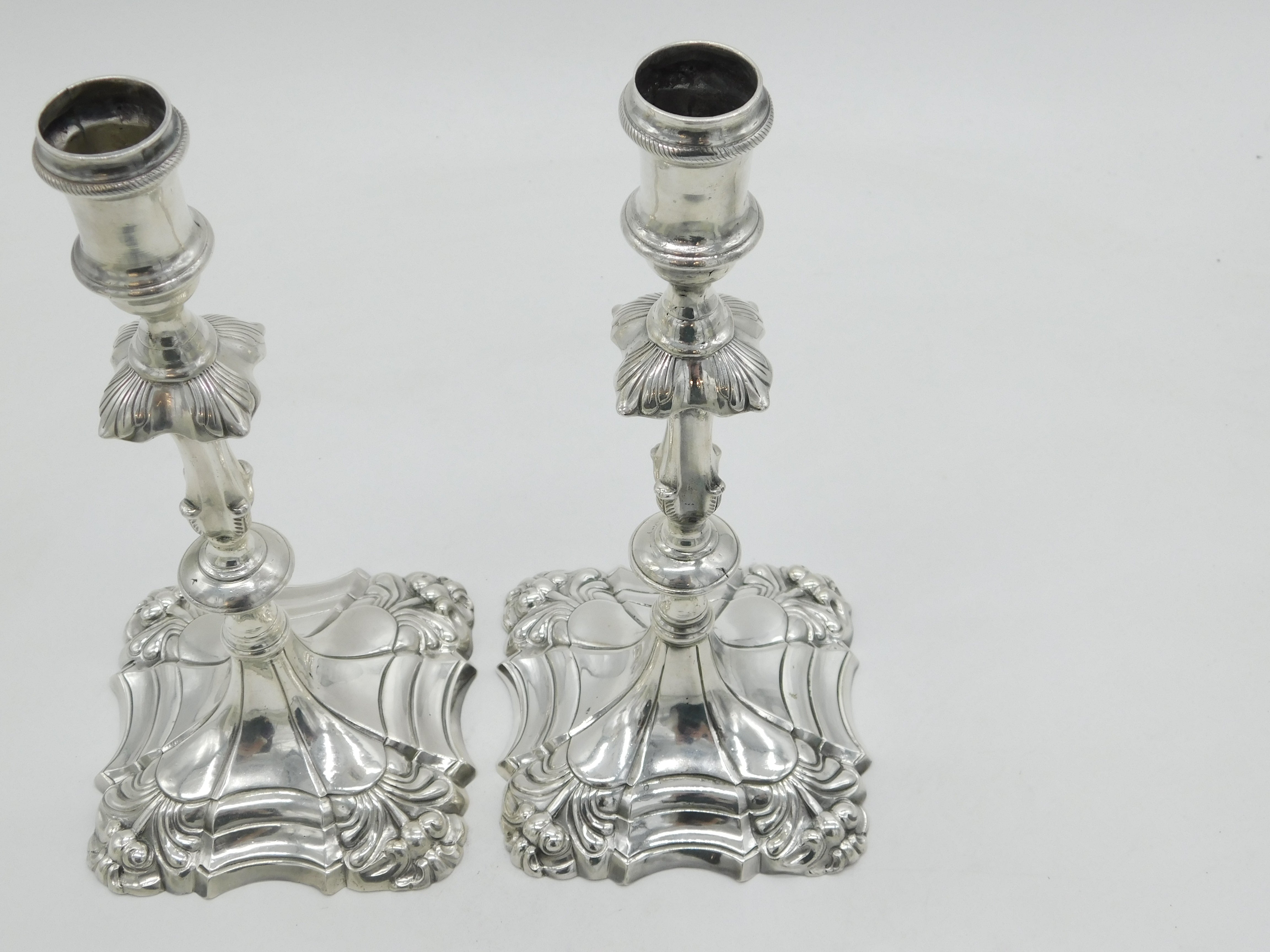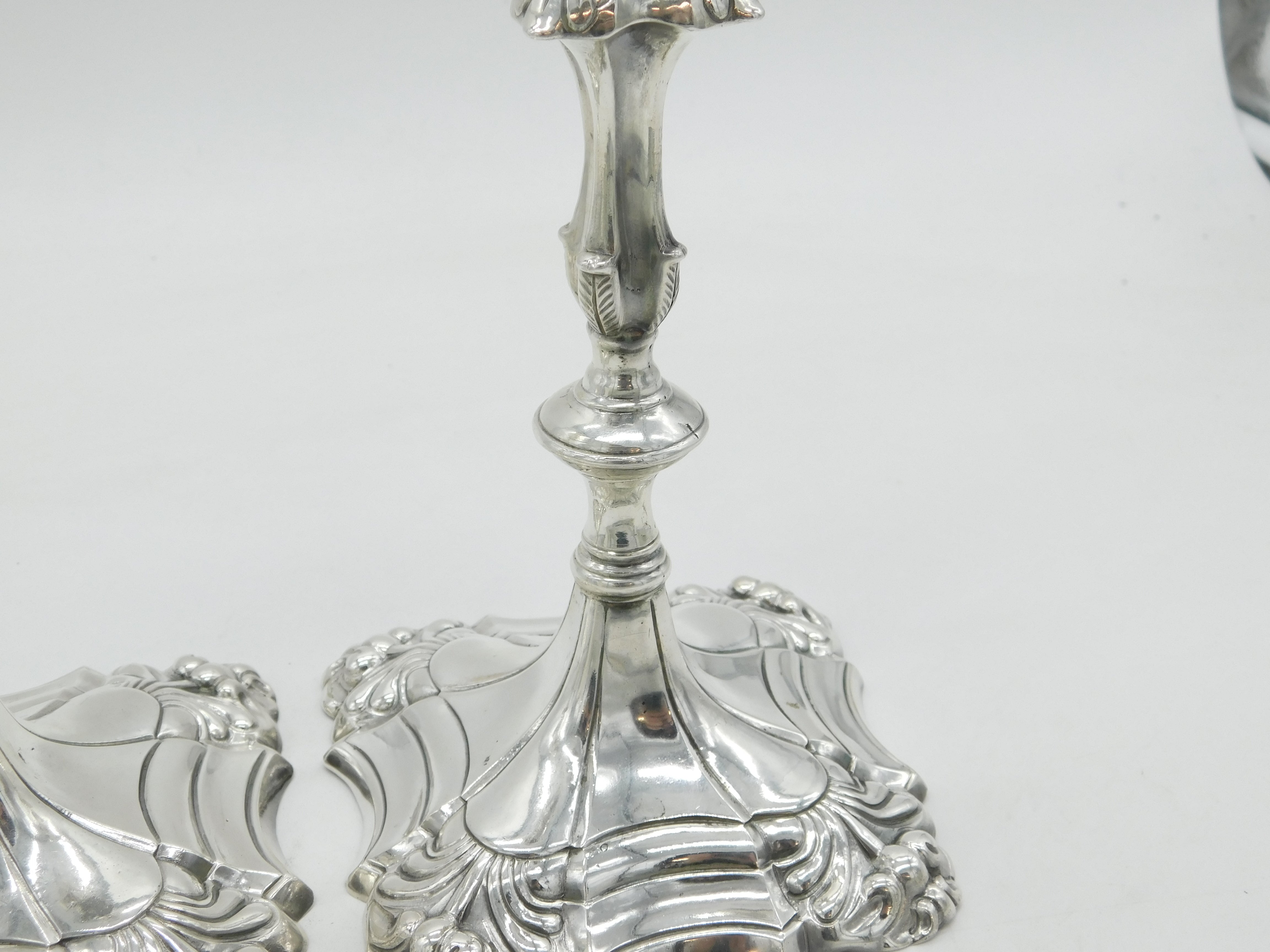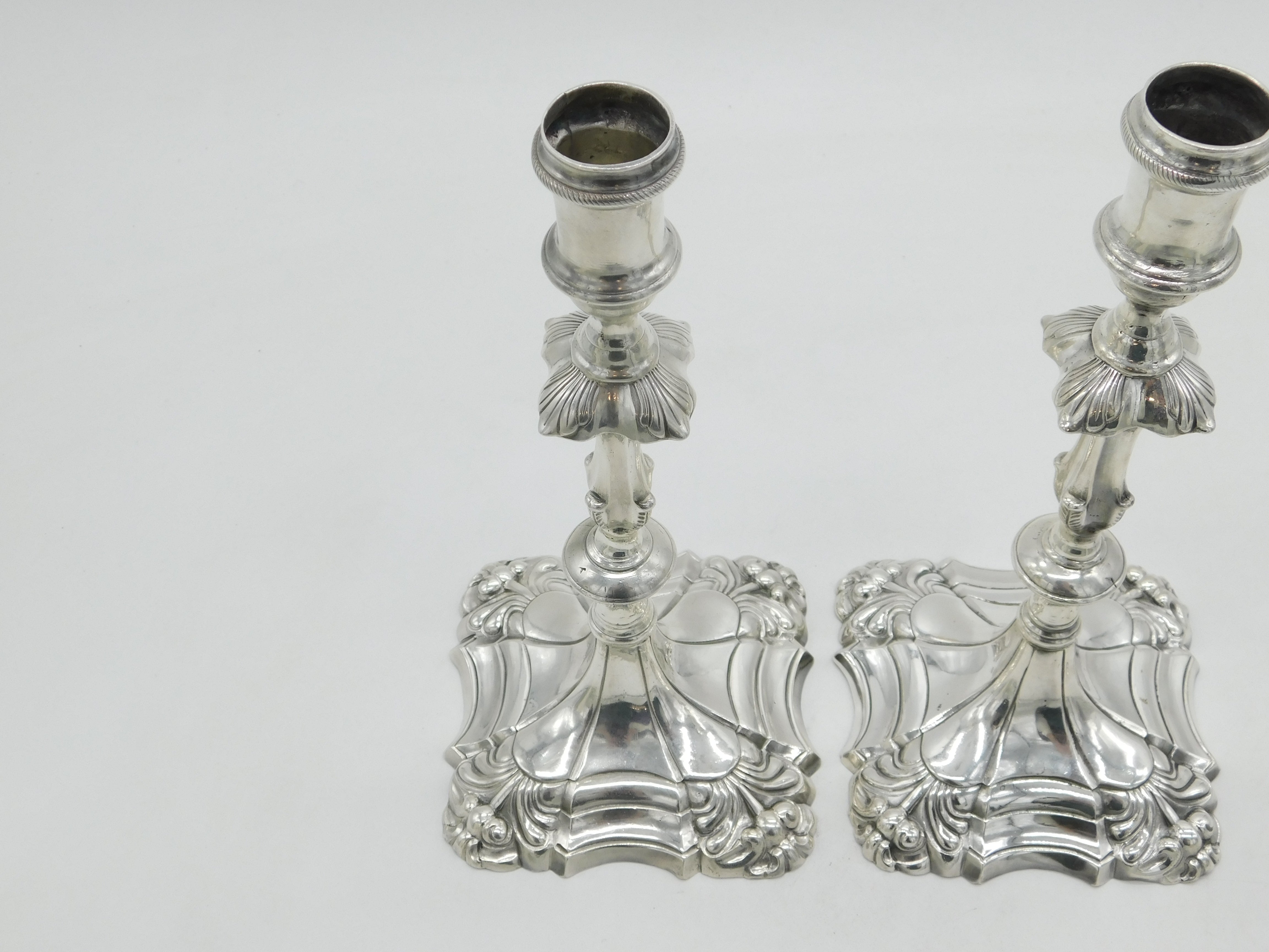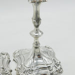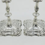 George II Cast Pair of Sterling Silver Candlesticks Antique 1756 London J. Gould