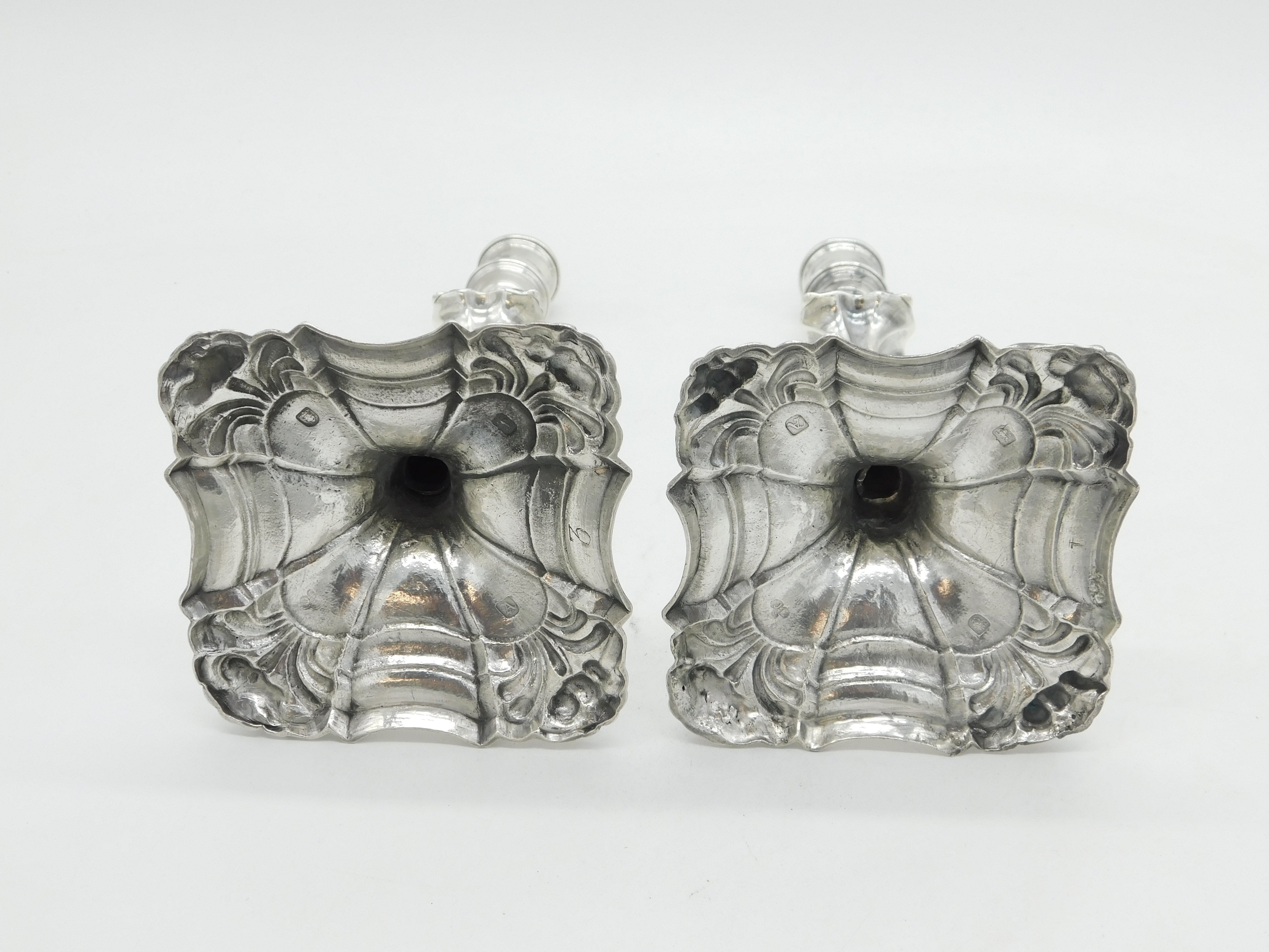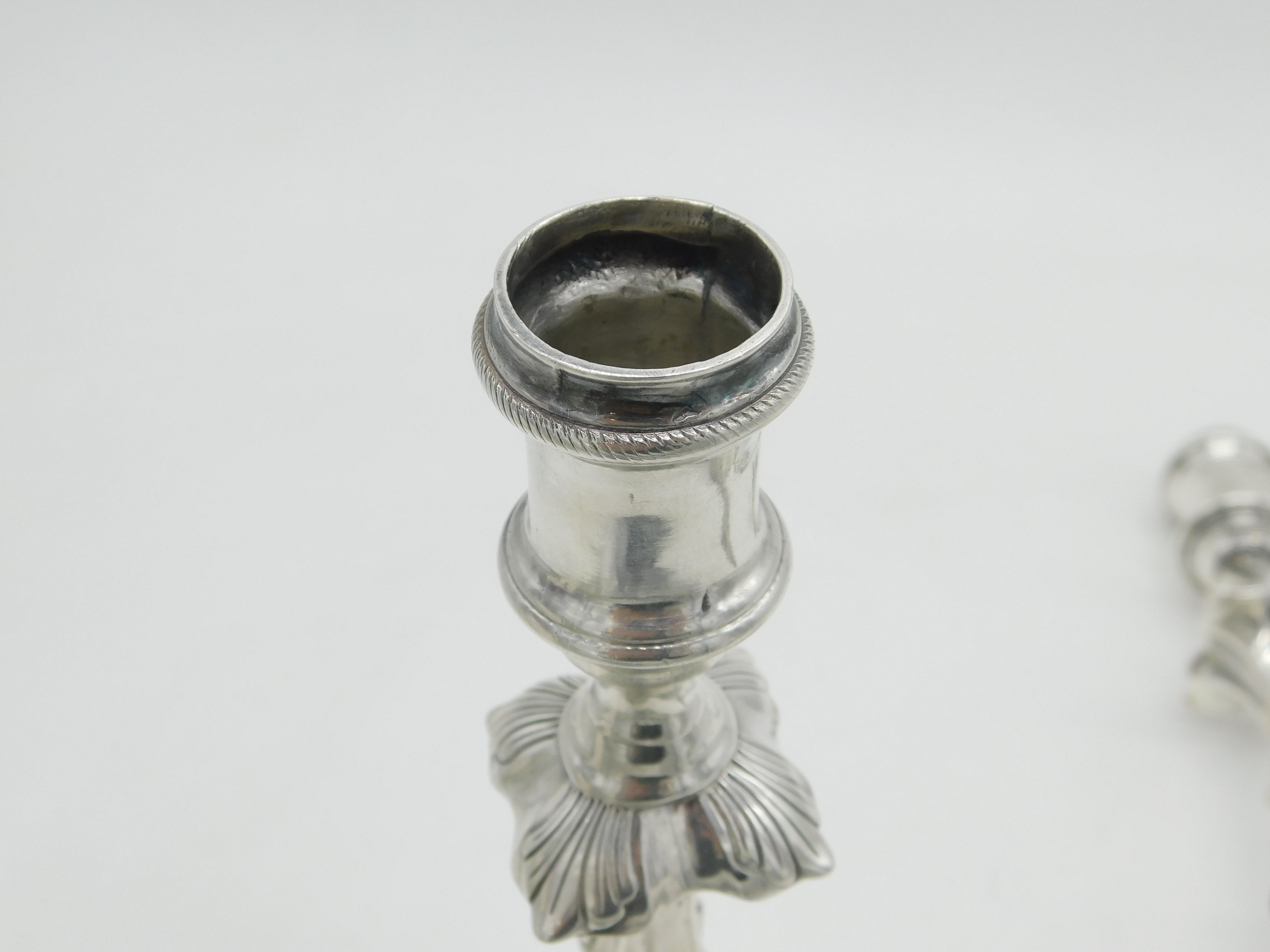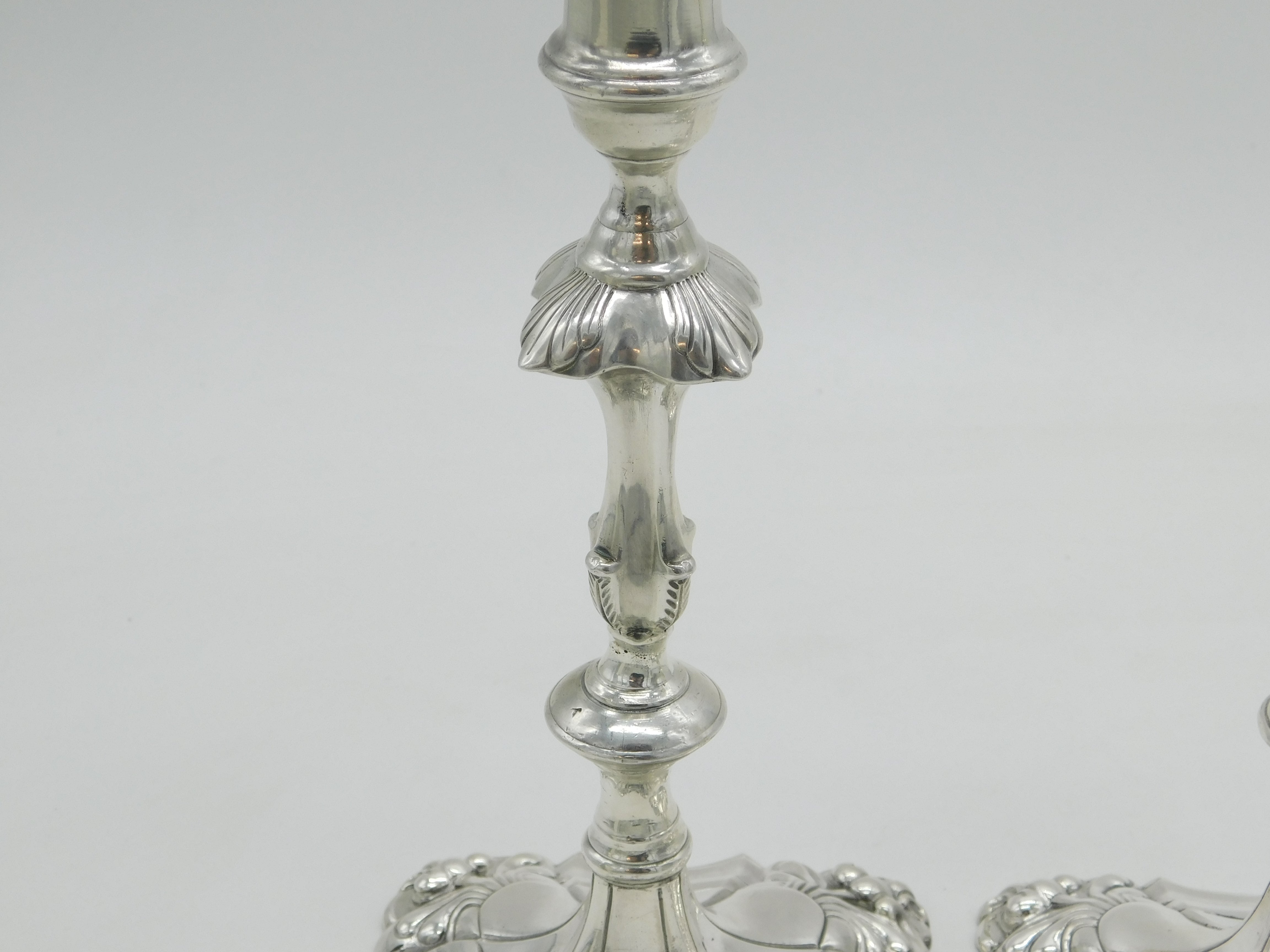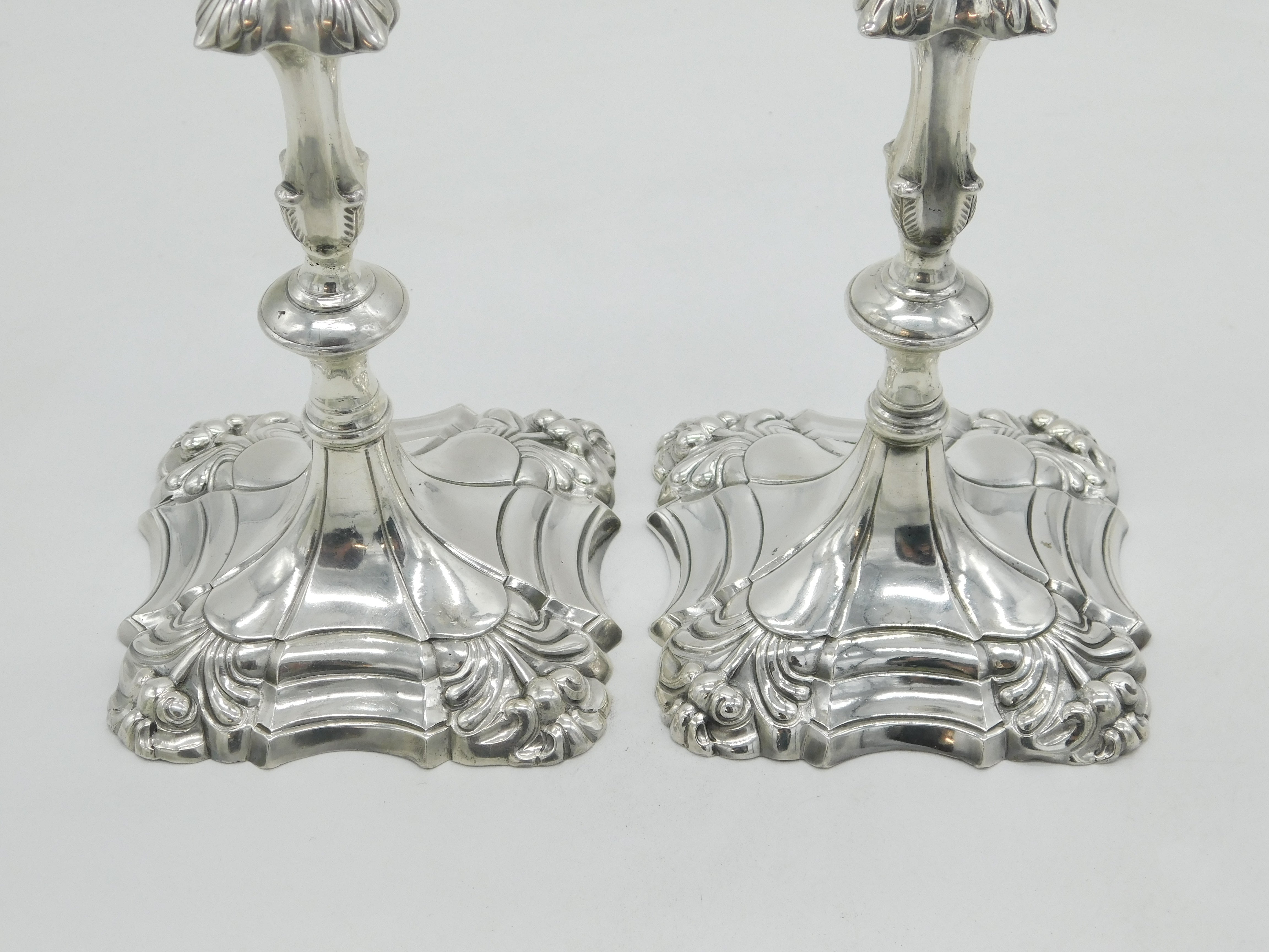 George II Cast Pair of Sterling Silver Candlesticks Antique 1756 London J. Gould