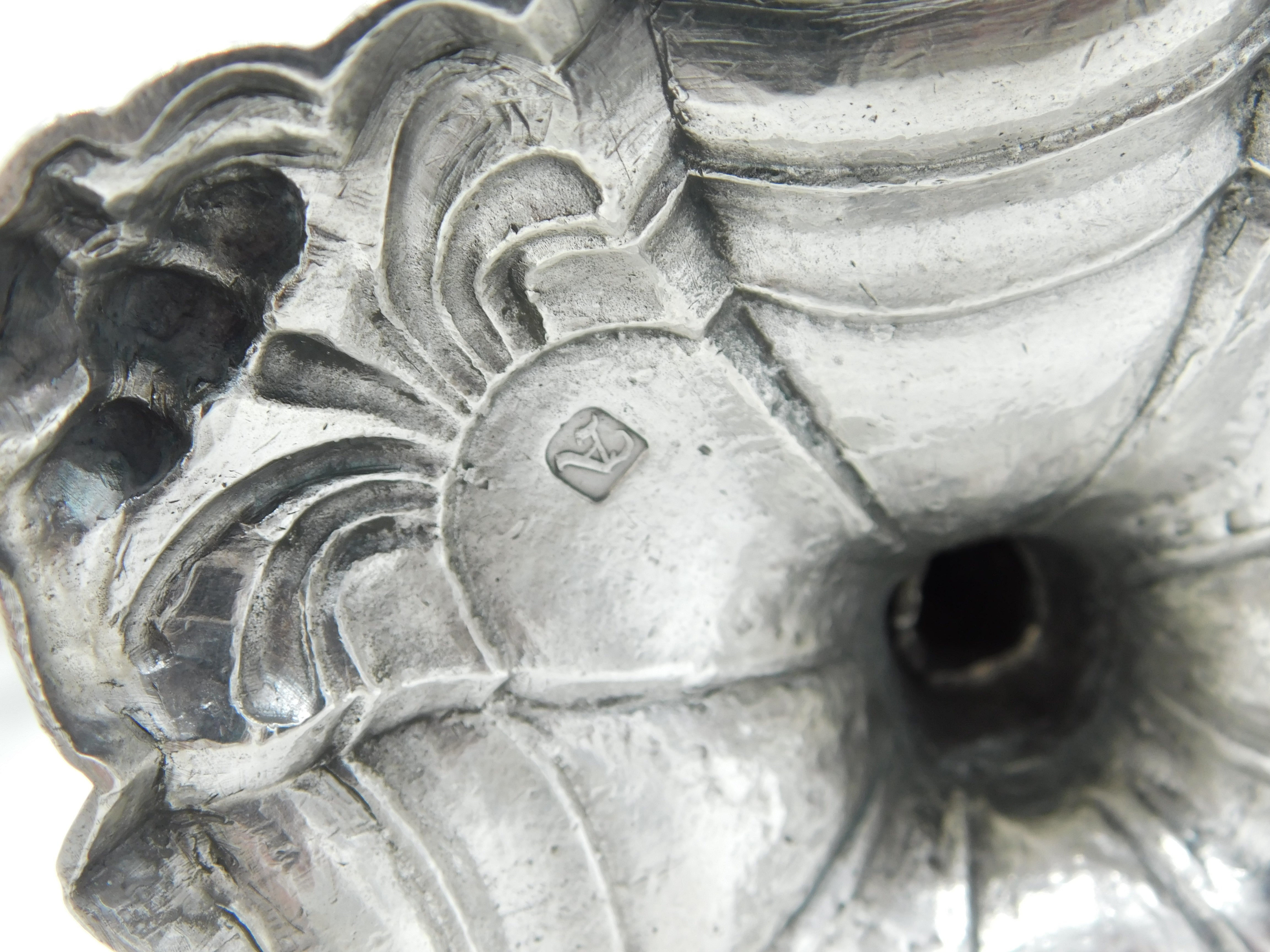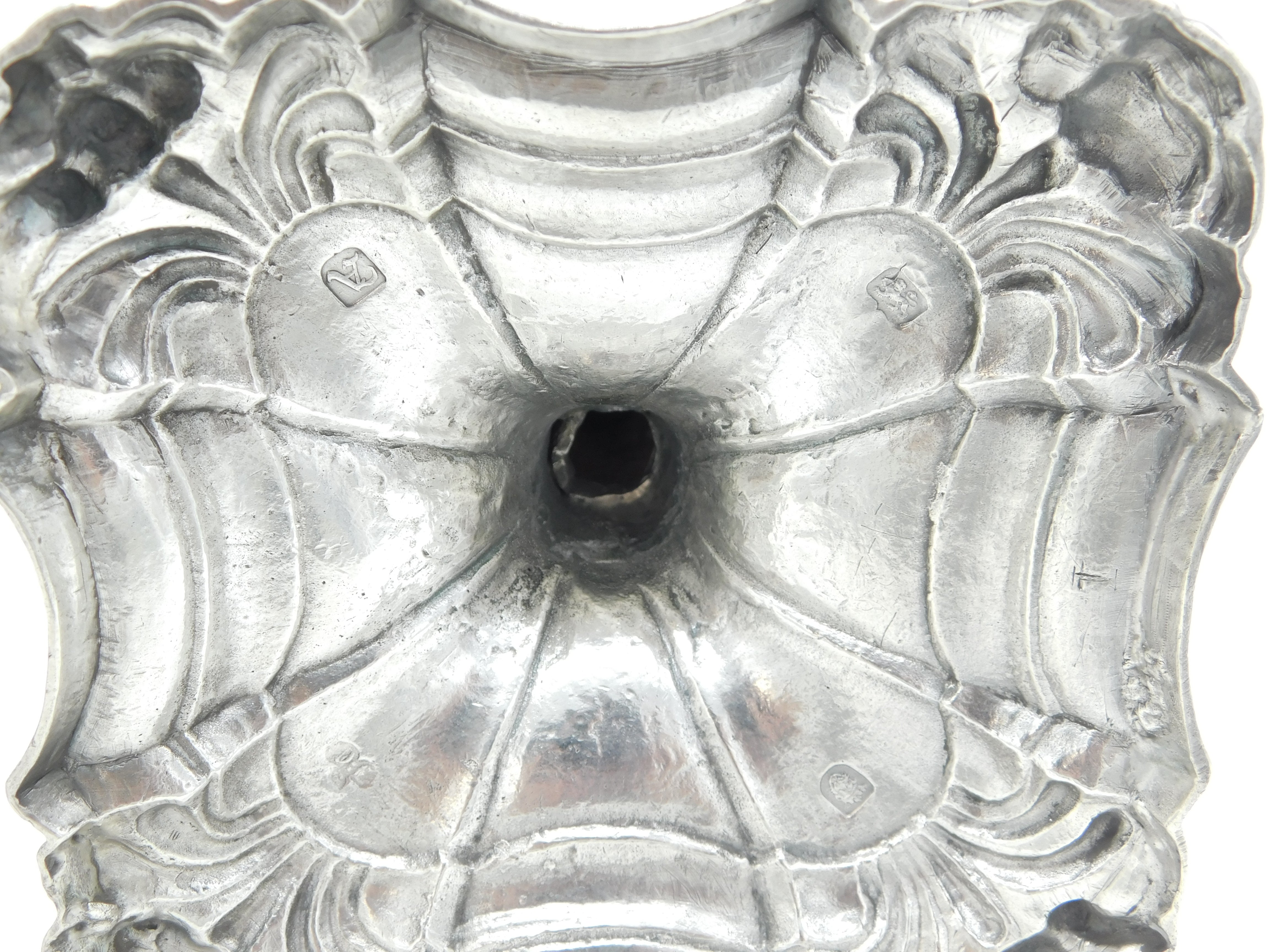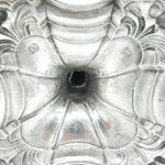Details: A fantastic and wonderfully designed antique early-Georgian pair of cast sterling silver candlesticks with superb floral decoration throughout particularly to the bases, hallmarked clearly to the underside for London 1756 by James Gould. No obvious repairs or damage - missing the original sconces. This is a wonderful item that would make a perfect gift or addition to any collection. We are more than happy to provide XRF reports for items upon request.