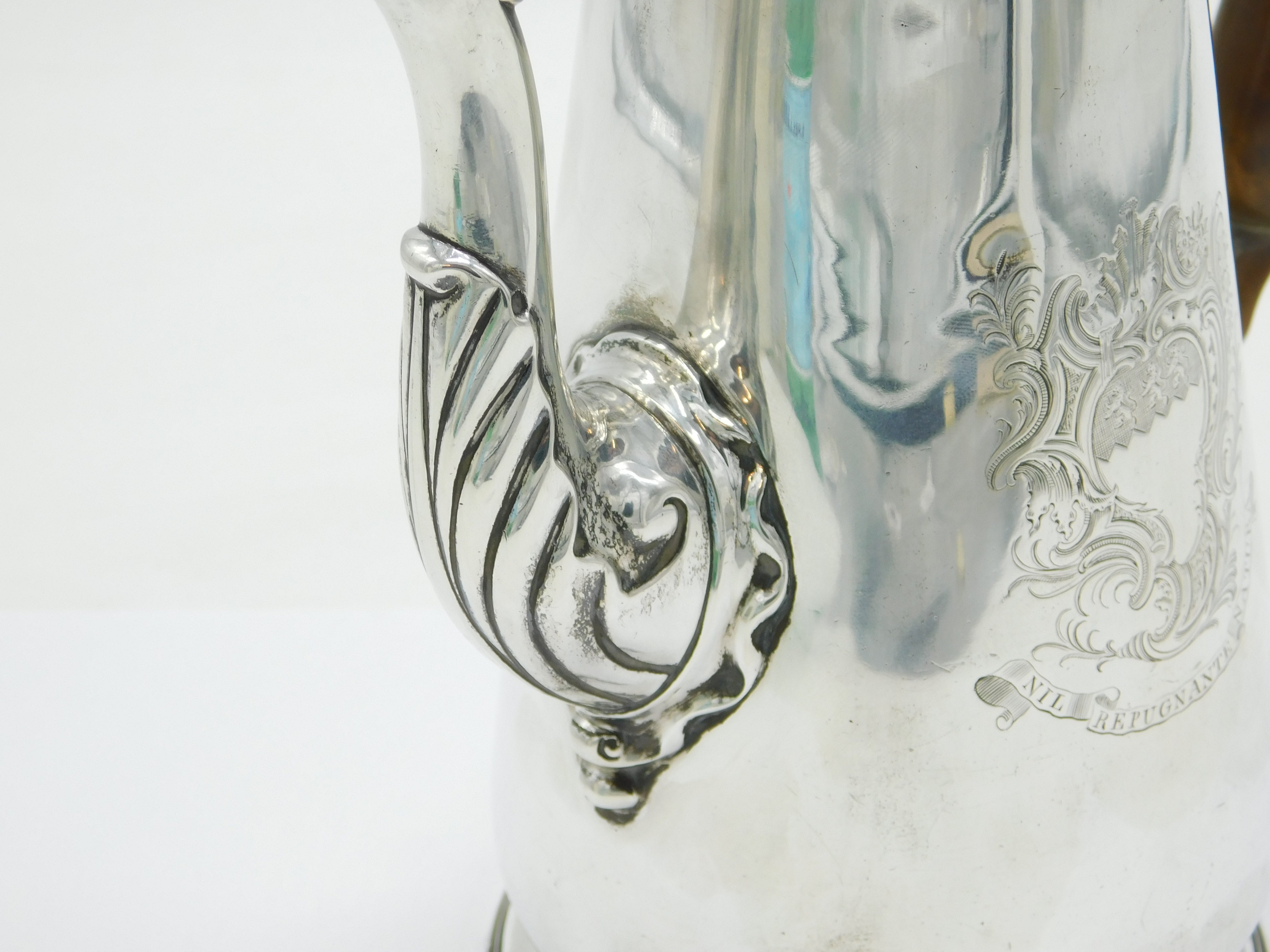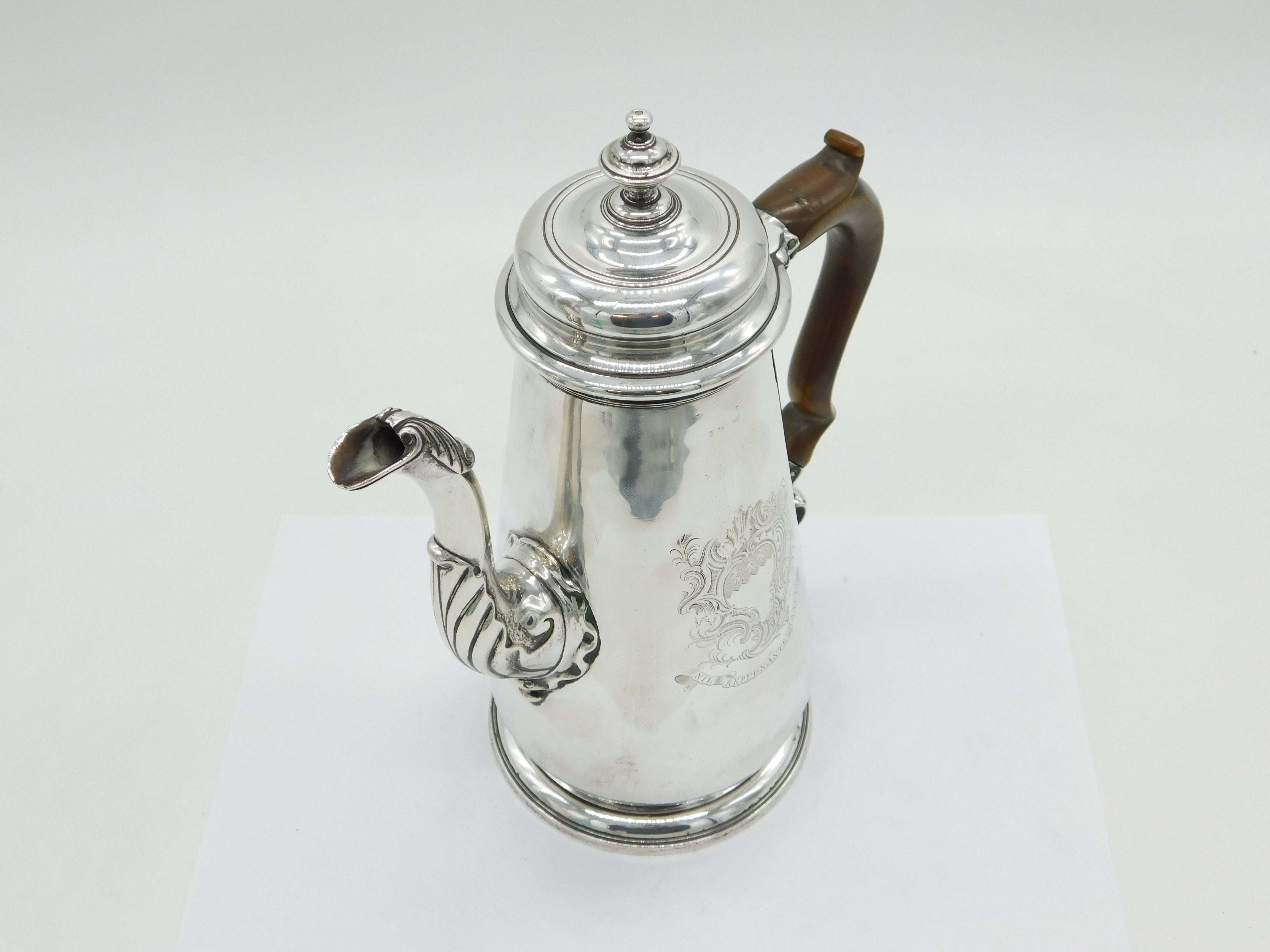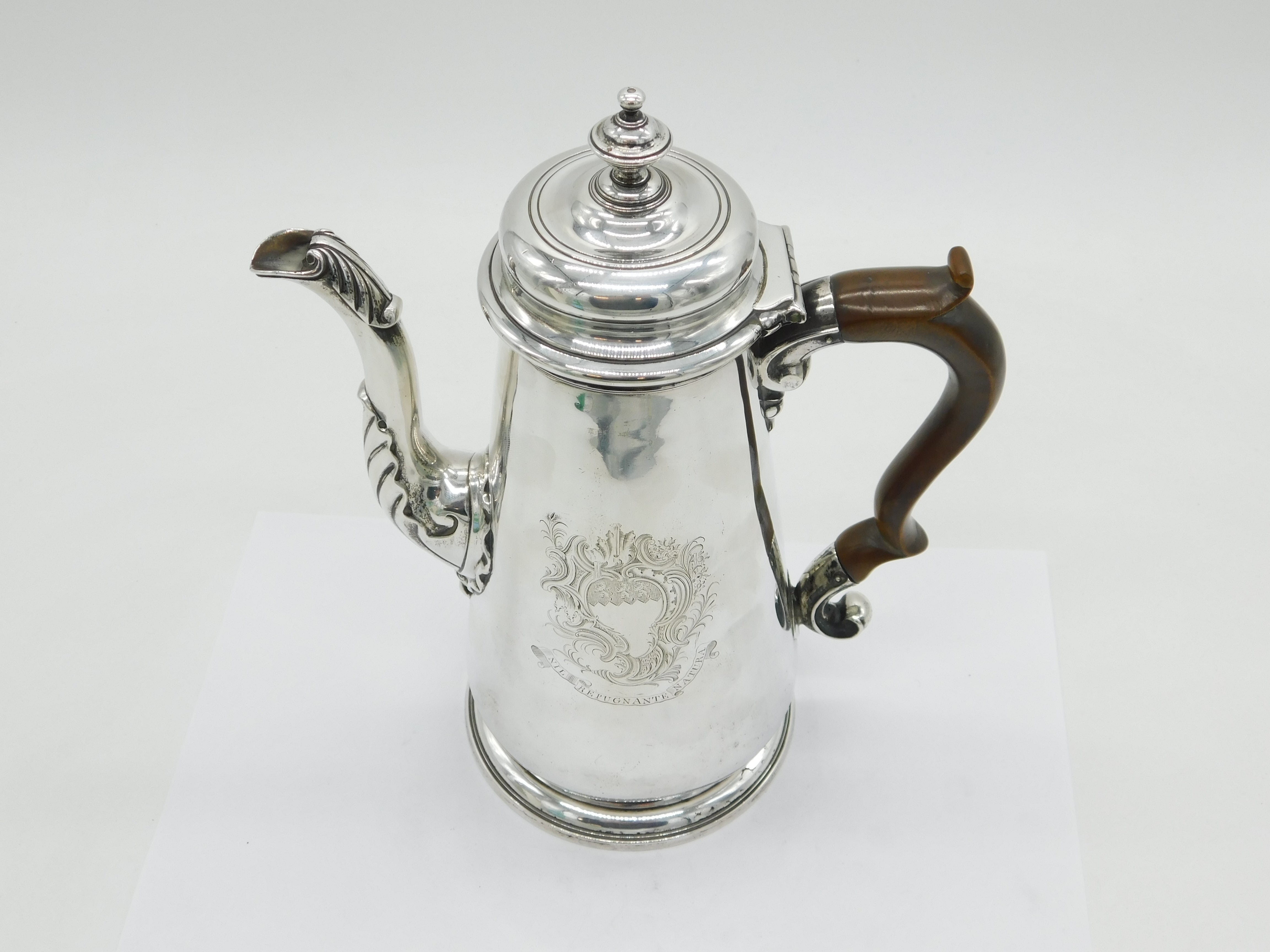 George II Sterling Silver Armorial Crest Coffee Pot Antique 1740 London
