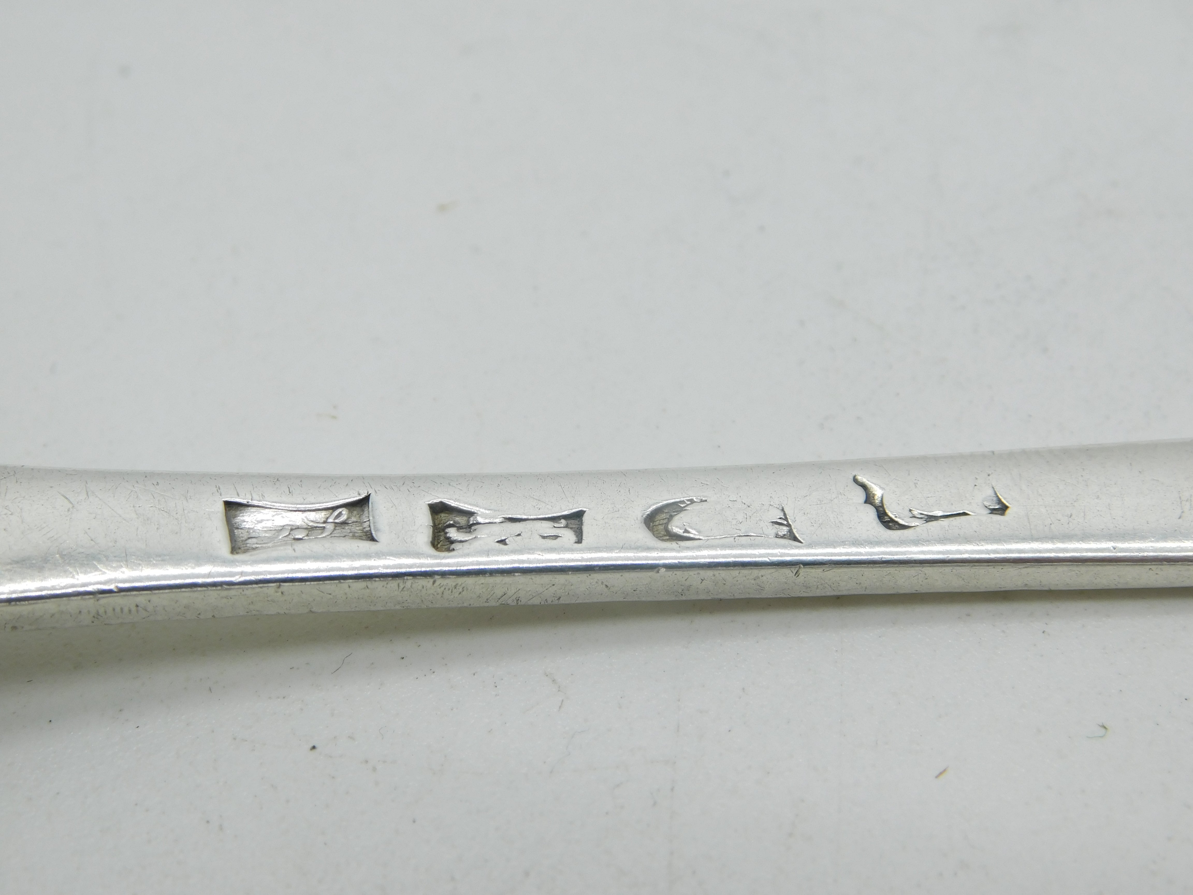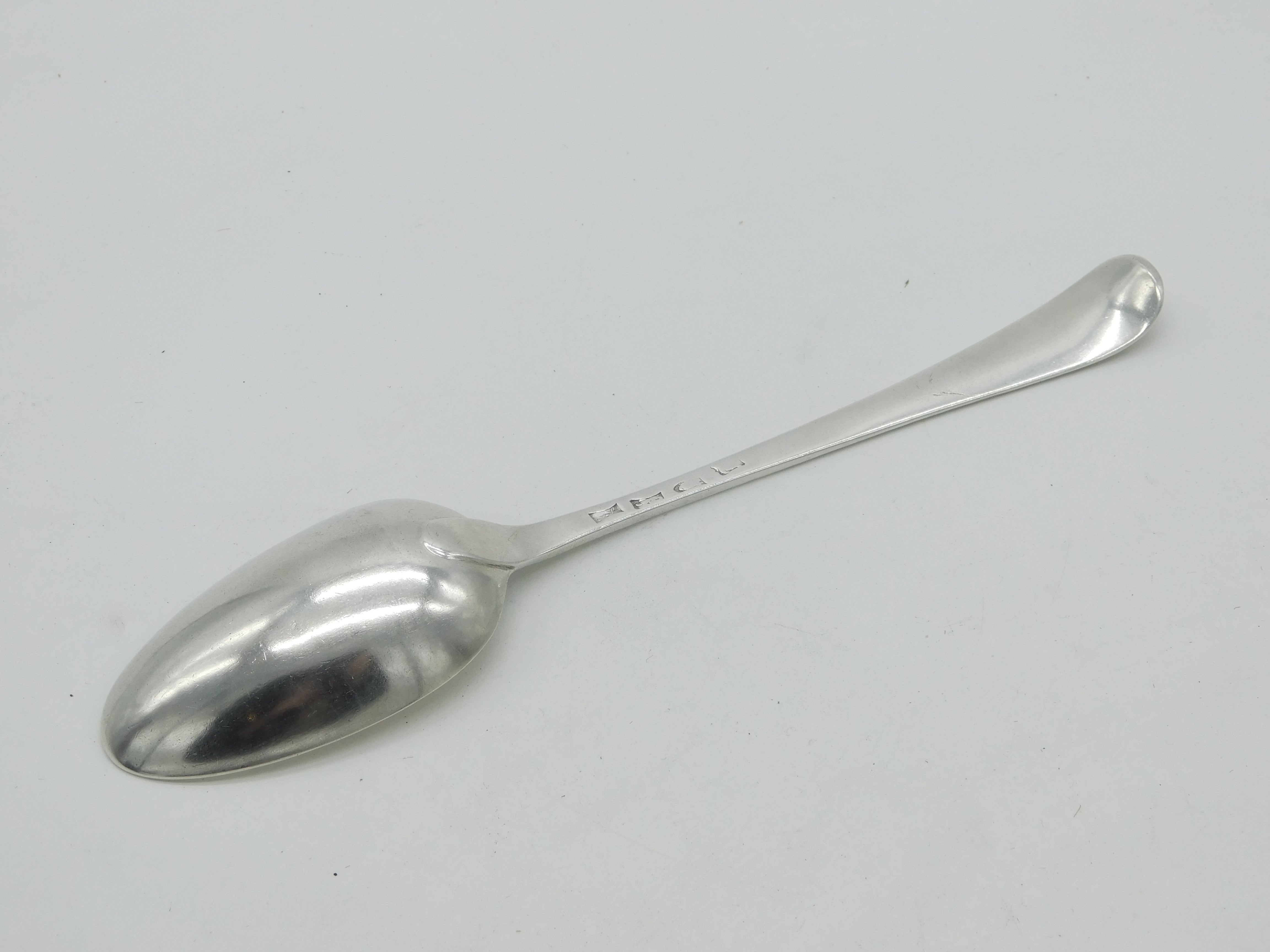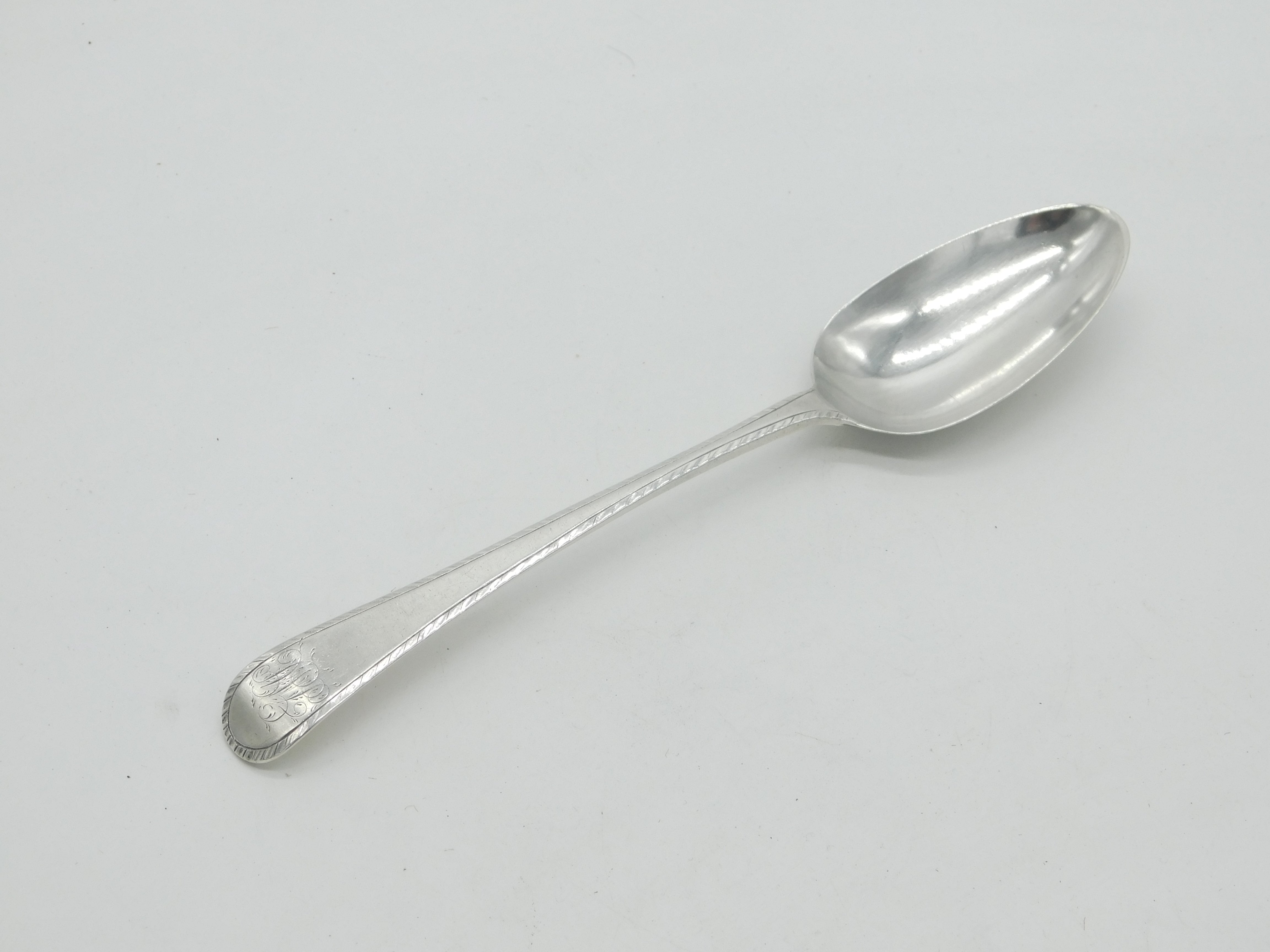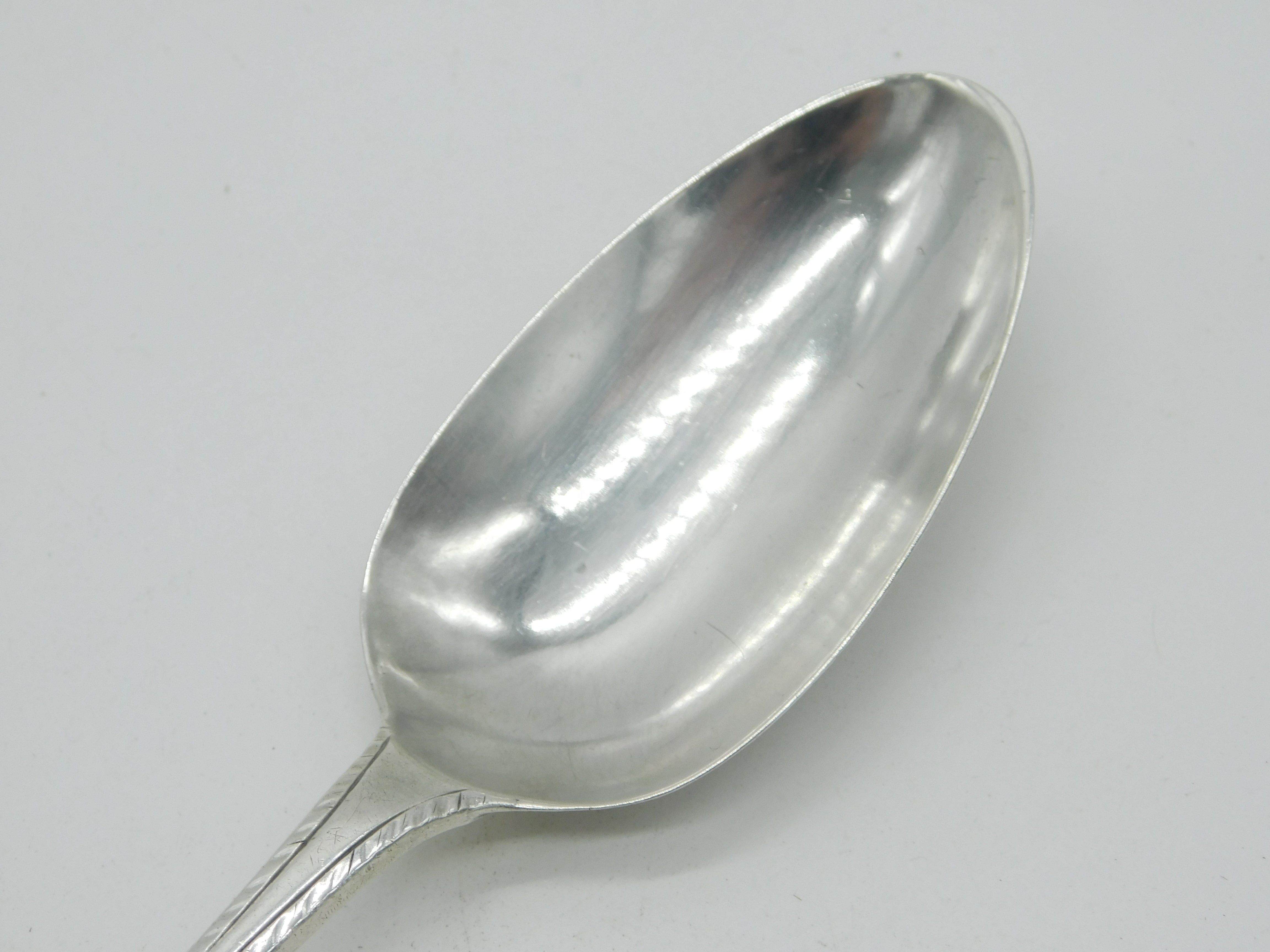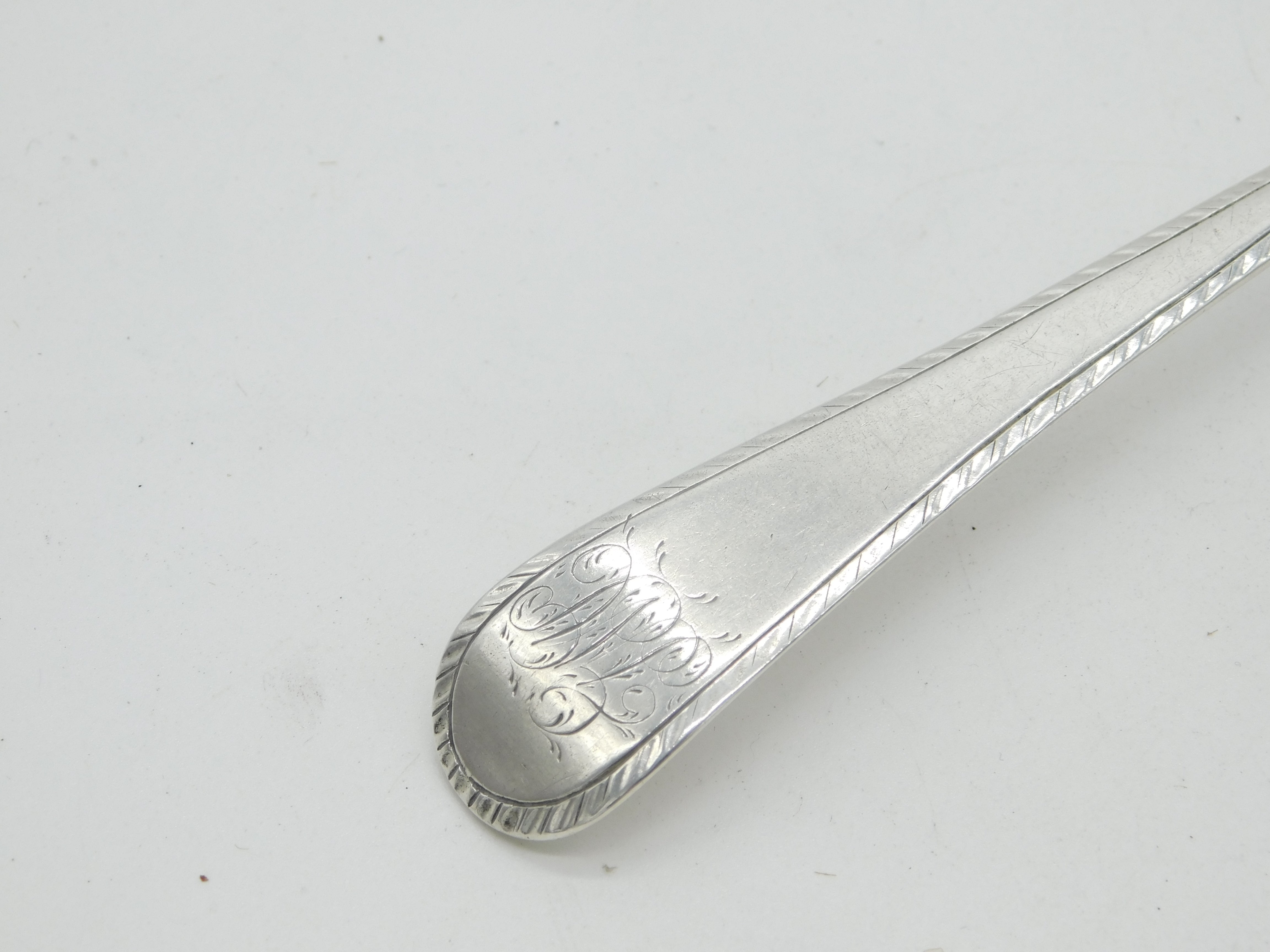 George II Sterling Silver Bright Cut Monogram Serving Spoon Antique 1754 London