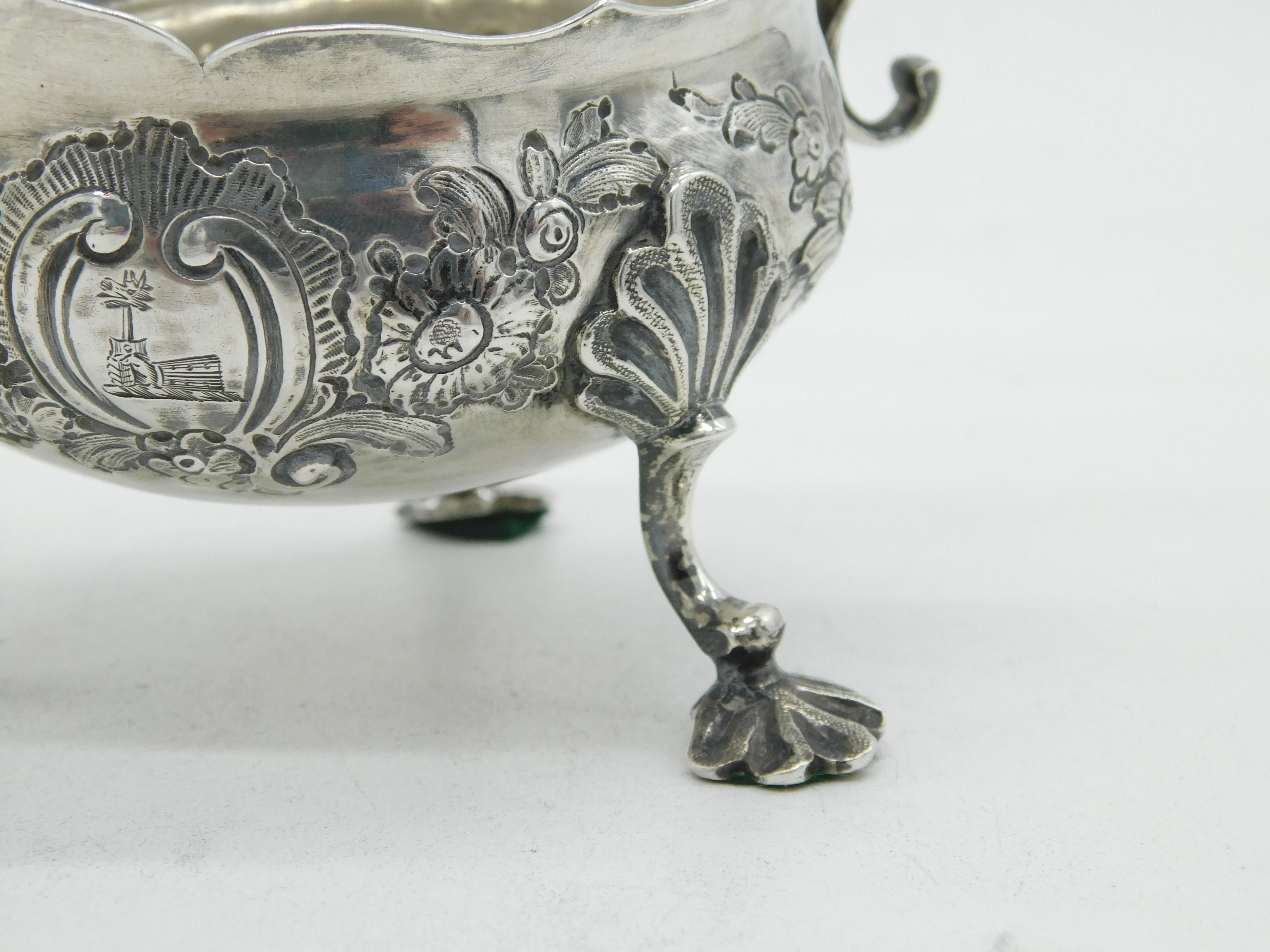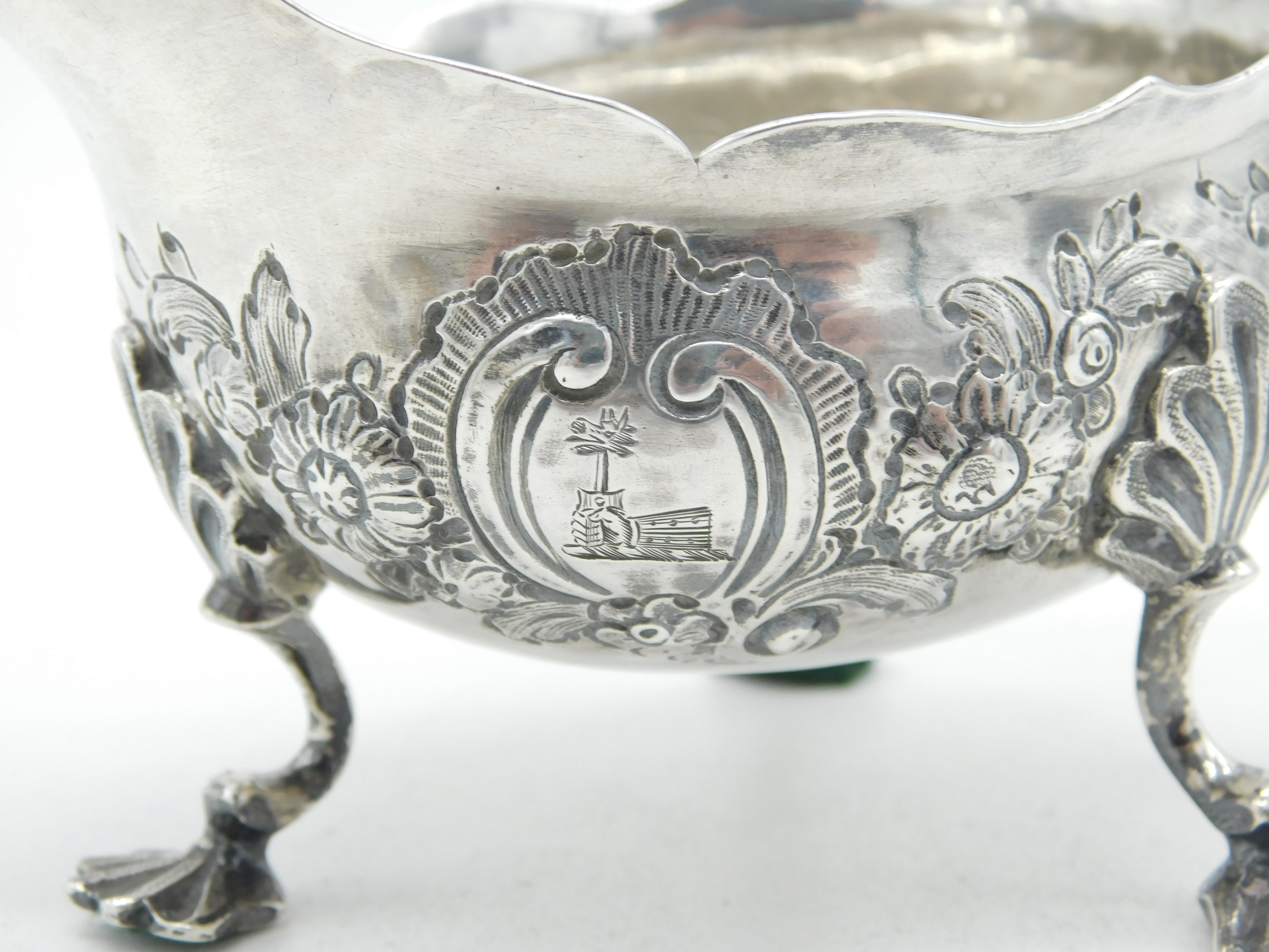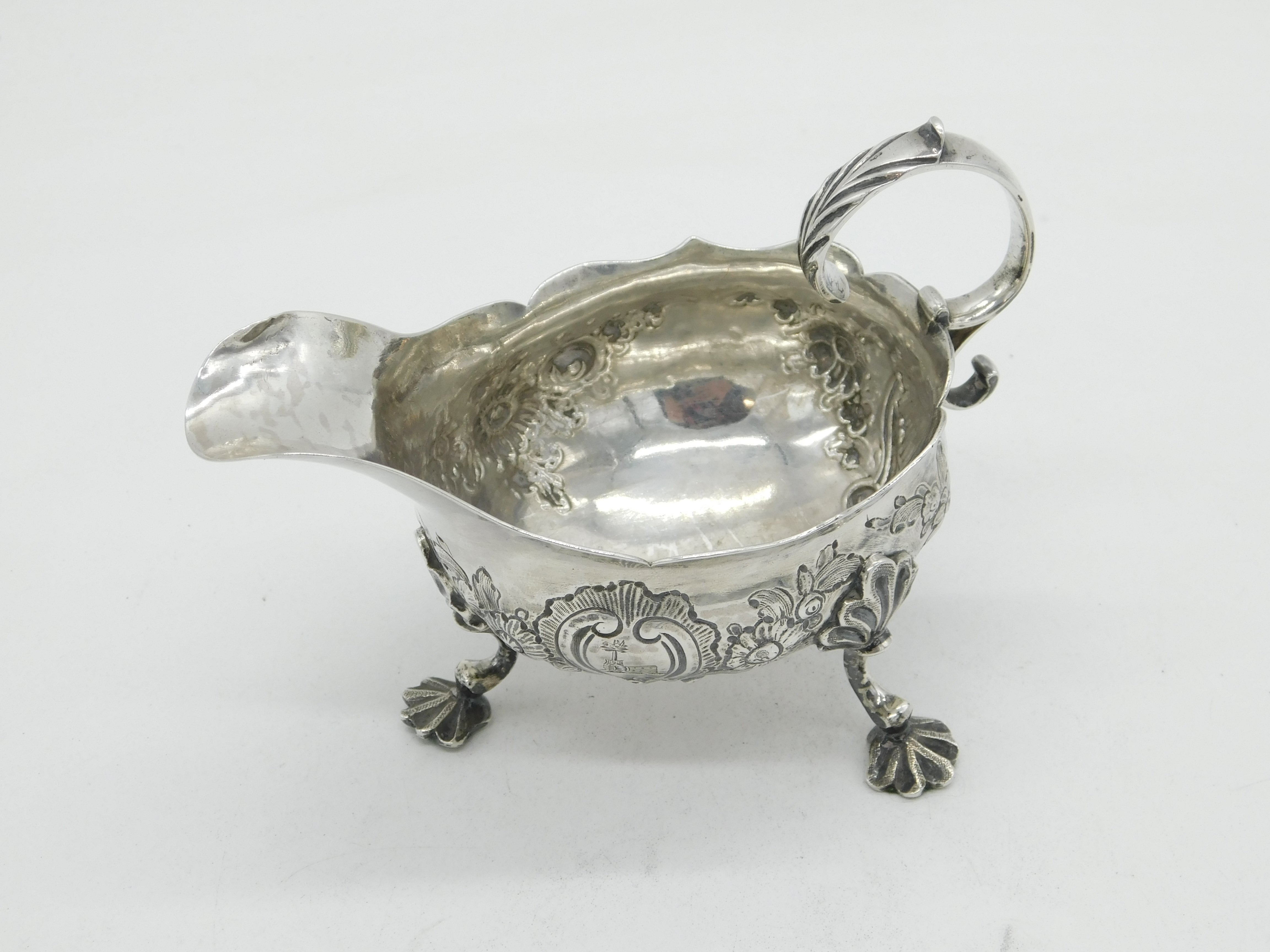 George II Sterling Silver Floral Pattern Sauce Boat Antique 1758 London